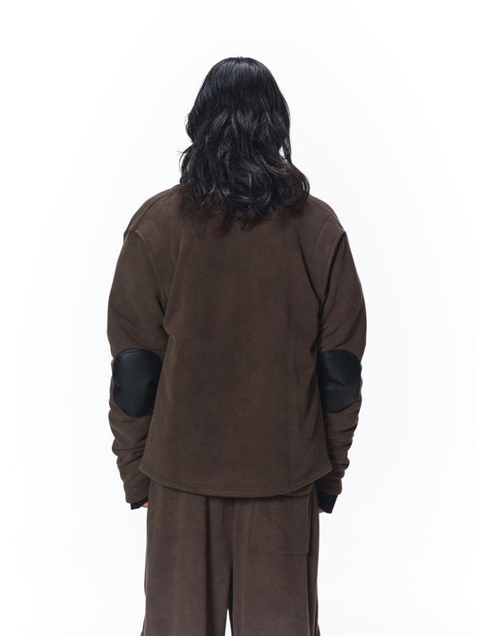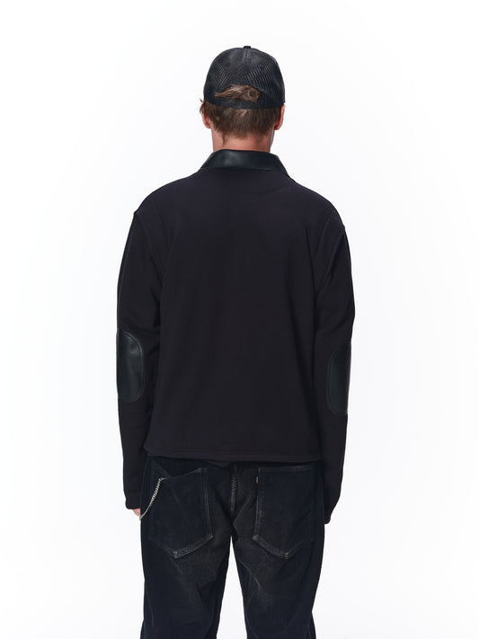JIEDA LEATHER COLLAR SWEAT ZIP JACKET
