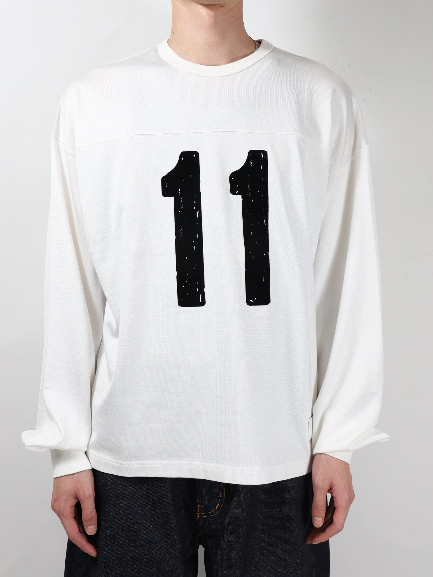 レーヨンコットン素材を使用し、ヴィンテージのフットボールTシャツを思わせる表情に仕上げた。程よい厚みとしなやかな落ち感が特徴で、着込むほどに身体に馴染み、風合いが増していく。経年変化による味わい深い表情の変化も楽しめる。