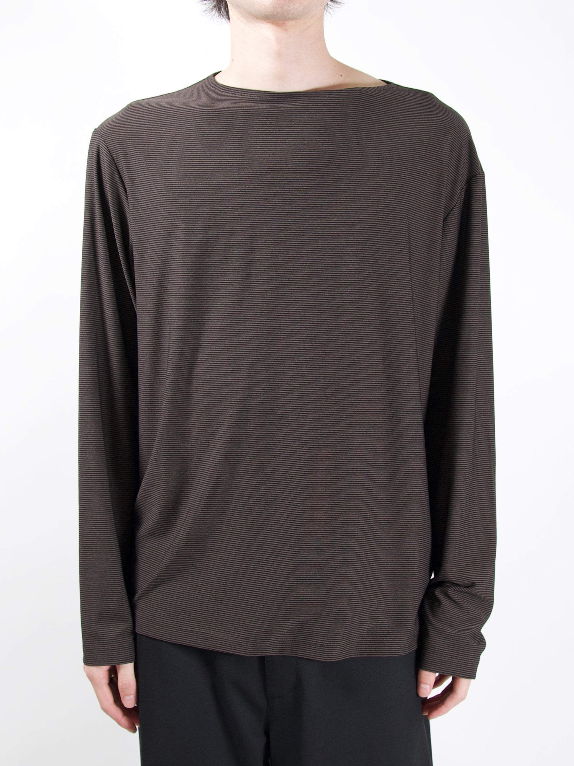 AMOMENTO STRIPE BOAT NECK LONG SLEEVE
