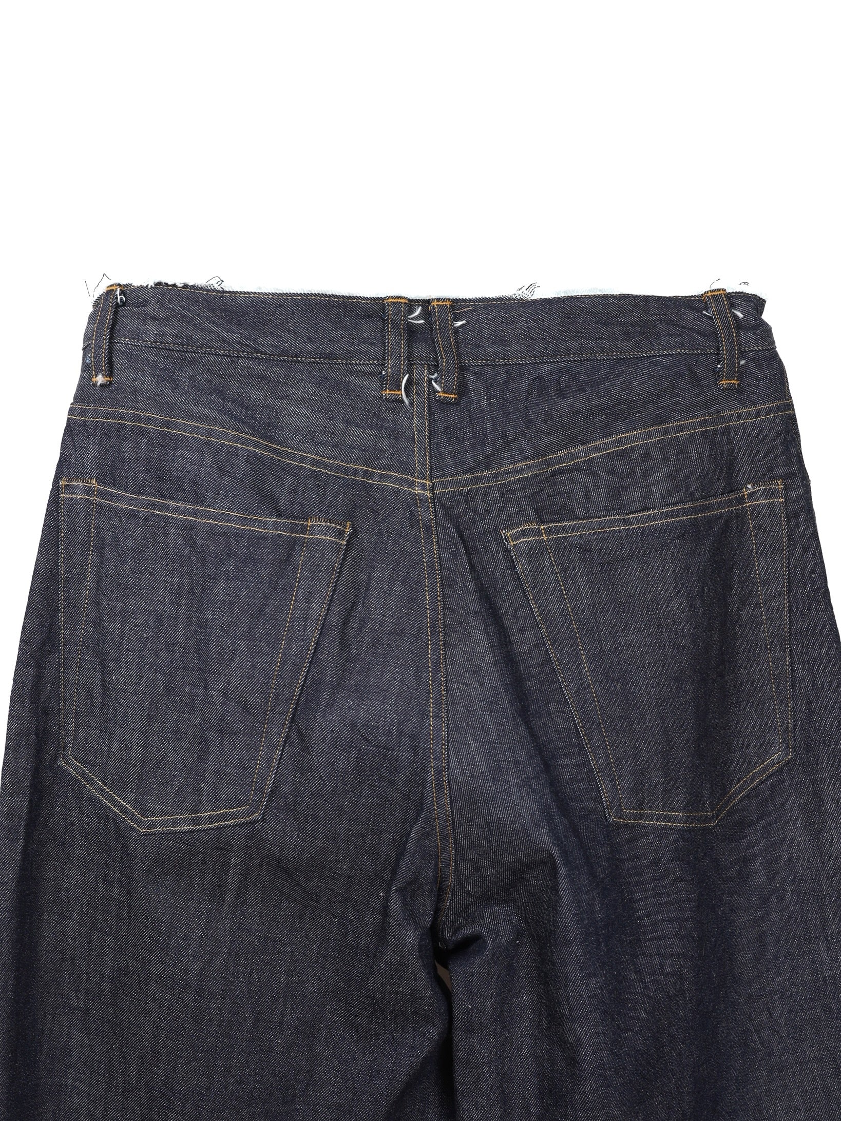 ヒップからストレートに落ちる潔いカッティングは、デニムとスラックスの間の様な佇まいを意識しています。