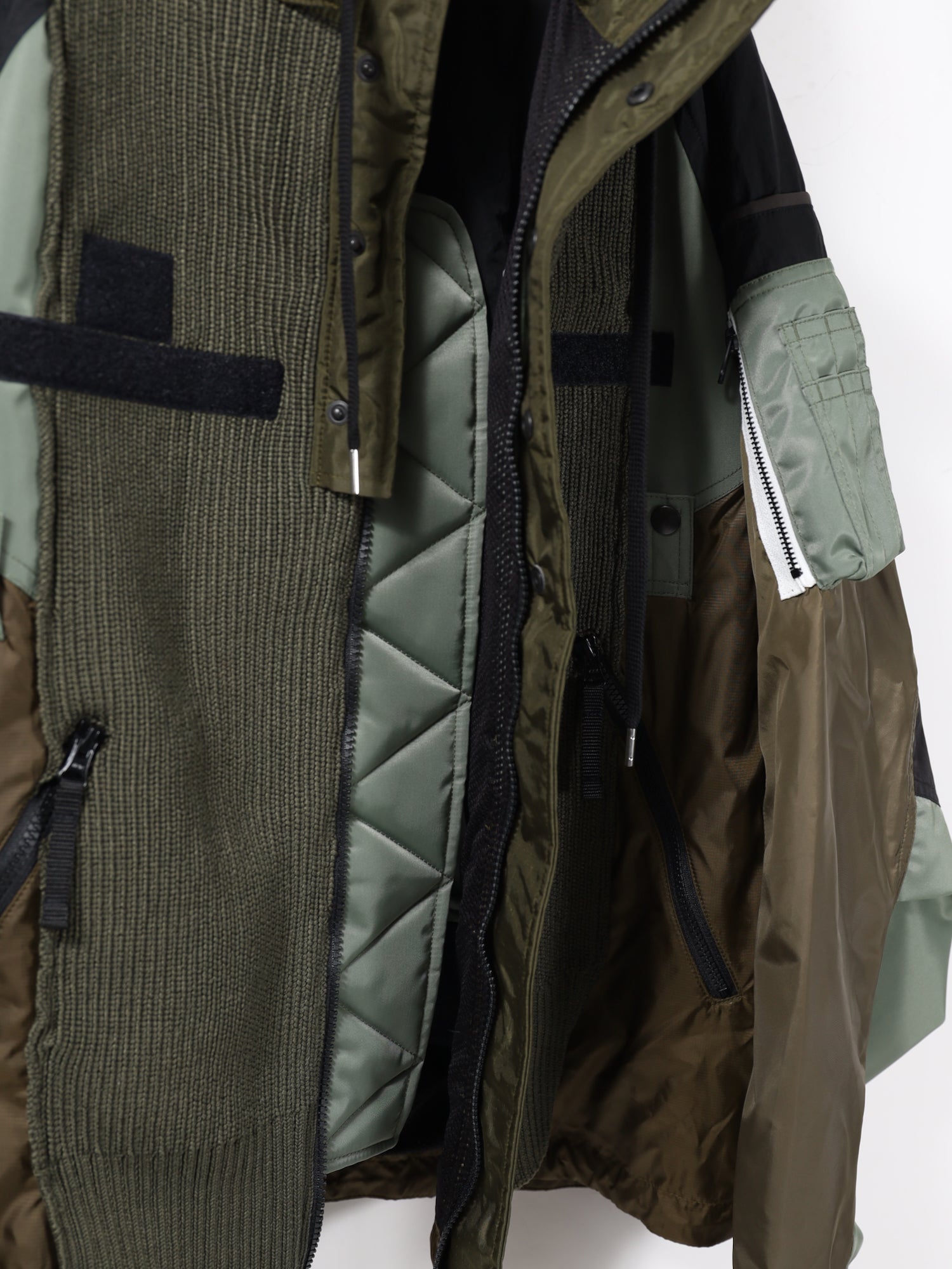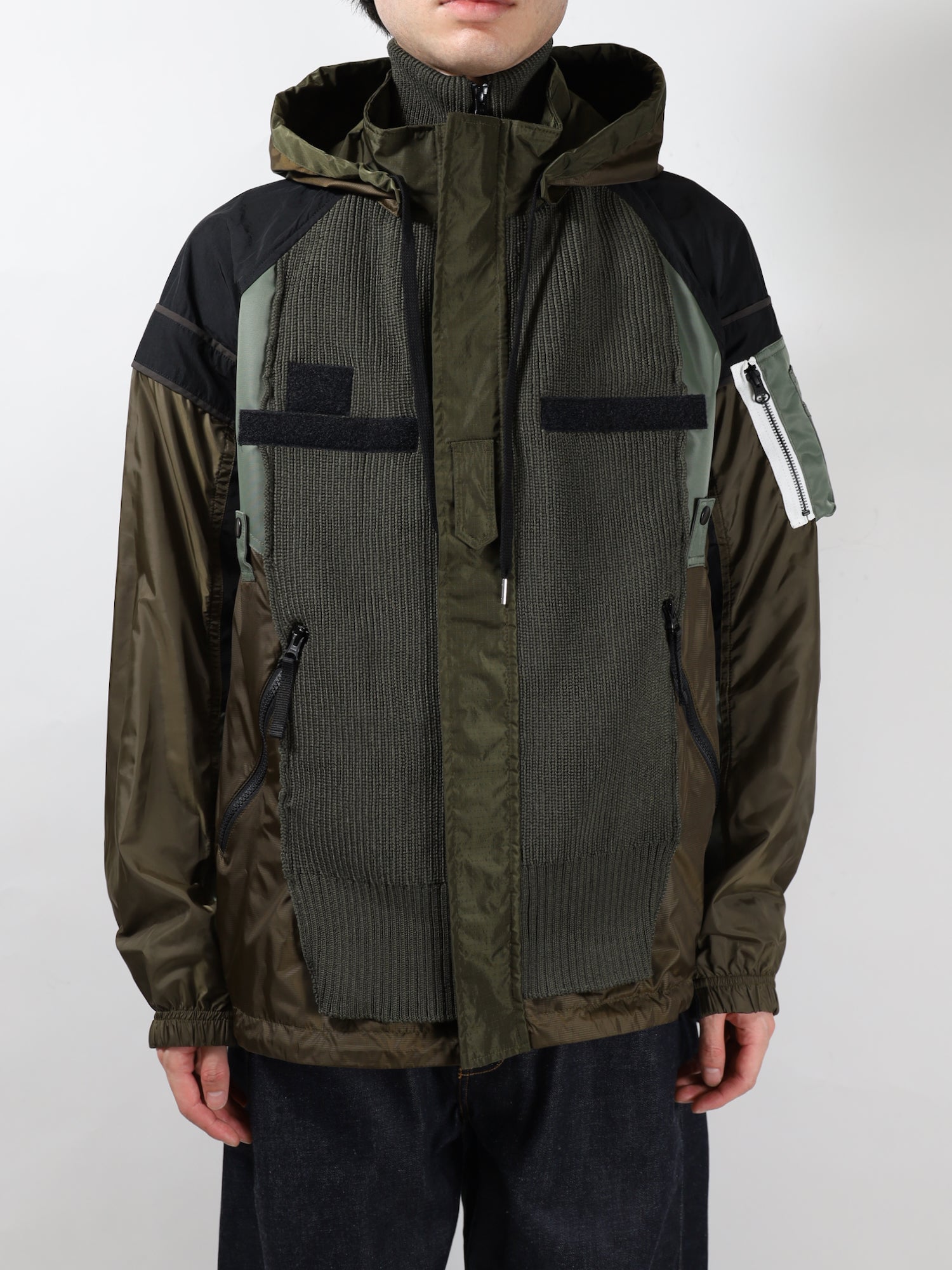 【MA-1】【ECWCS GEN3】【U.S.ARMY IPFU】【ECWCS GORE-TEX PARK】【Coach JKT】【Driver's knit】の 合計6種類のアイテムを複雑にドッキングしたその名の通り、カオスブルゾン。