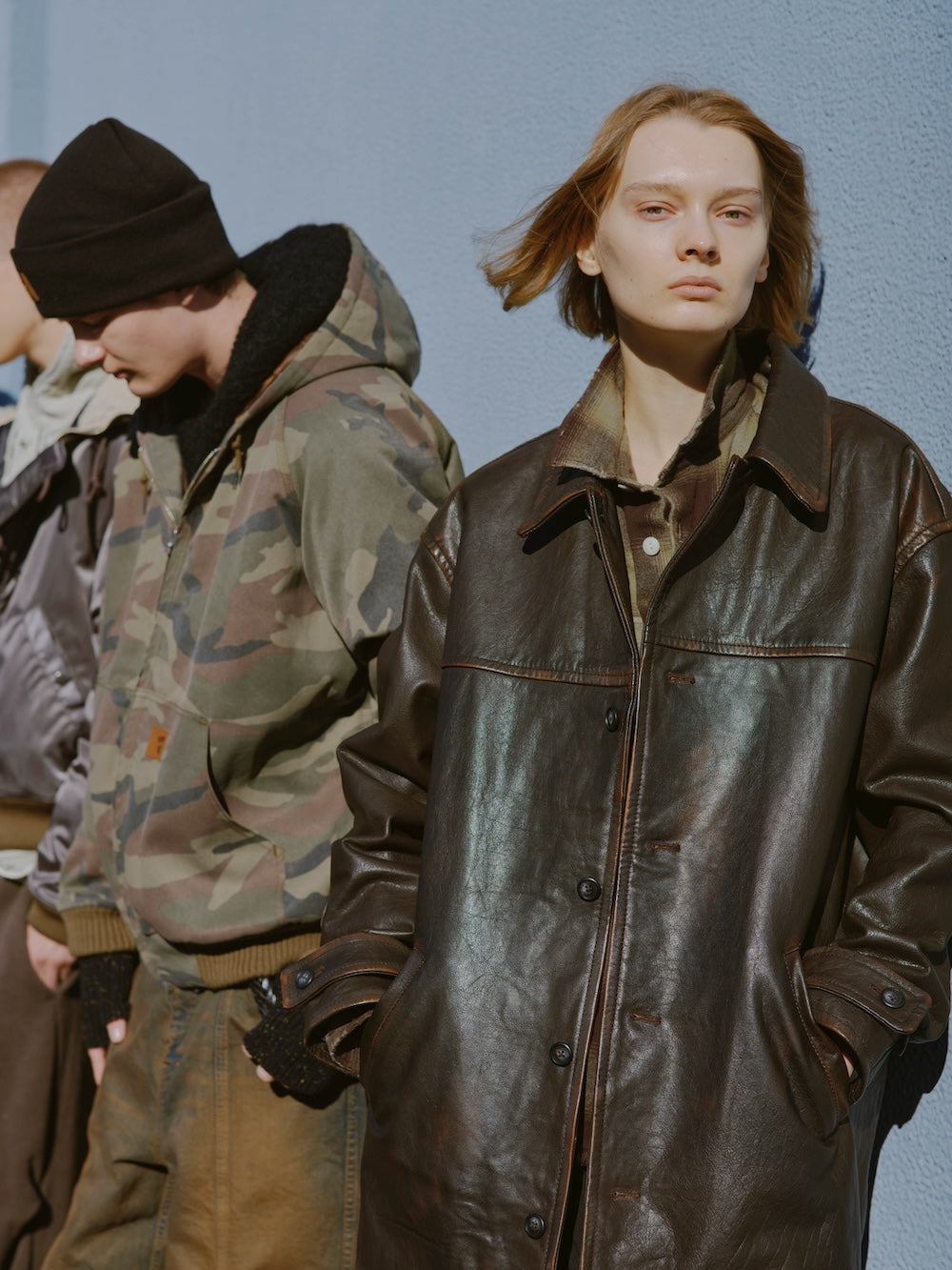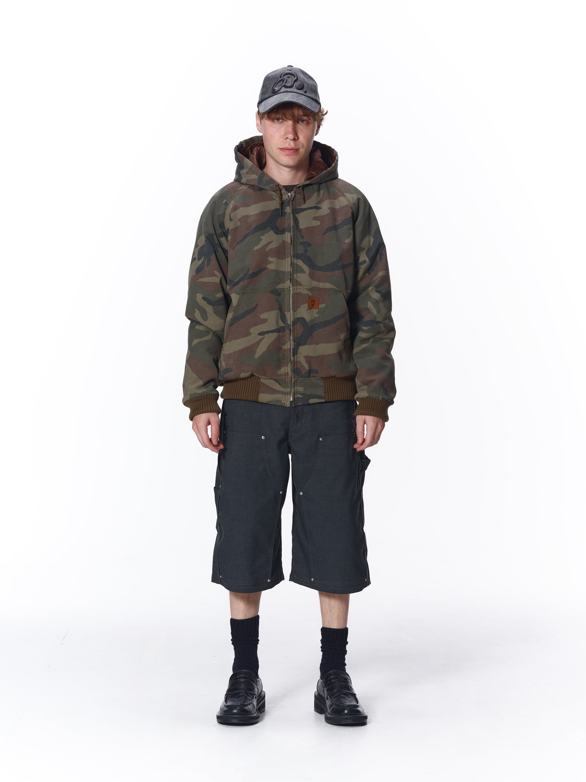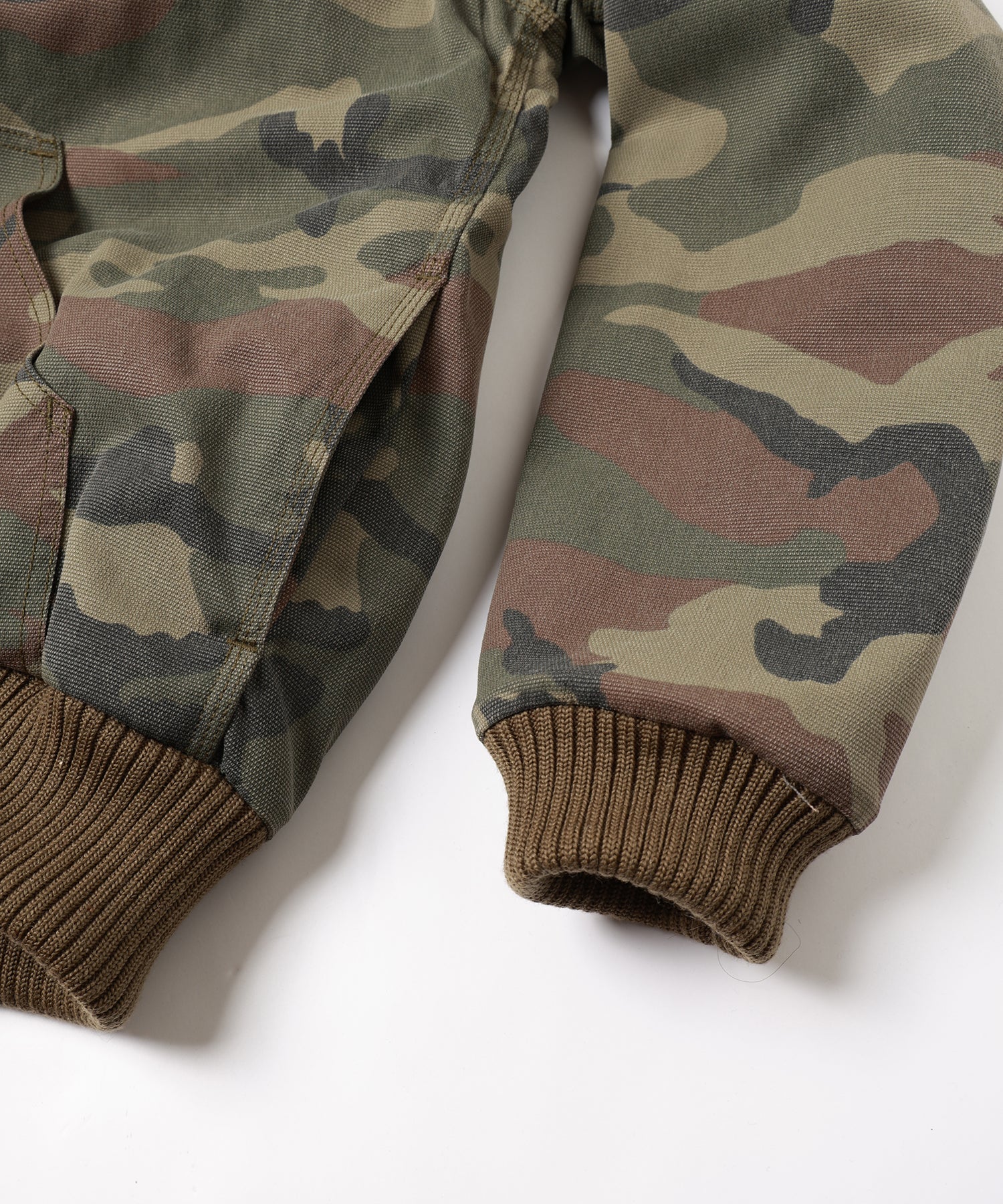 カモ柄の生地に顔料染めを施し、ヴィンテージのような風合いに仕上げた1着。