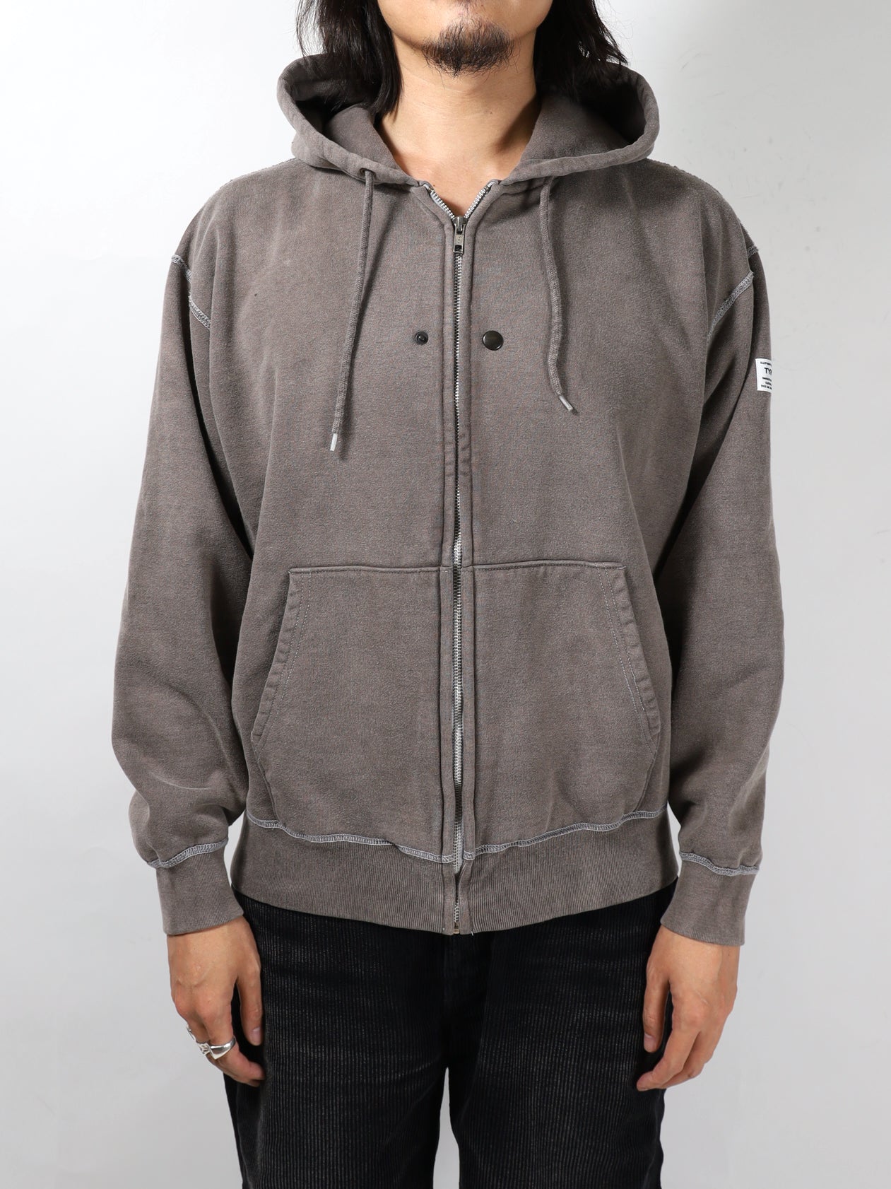 ゆったりとした身幅に短めの着丈のボックスシルエットの裏起毛ジップフーディー。