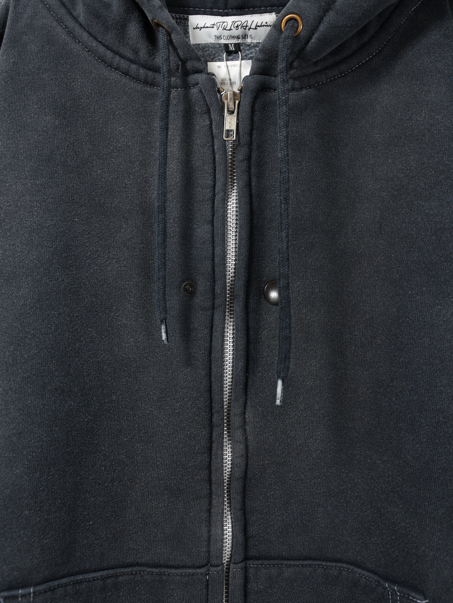 ゆったりとした身幅に短めの着丈のボックスシルエットの裏起毛ジップフーディー。