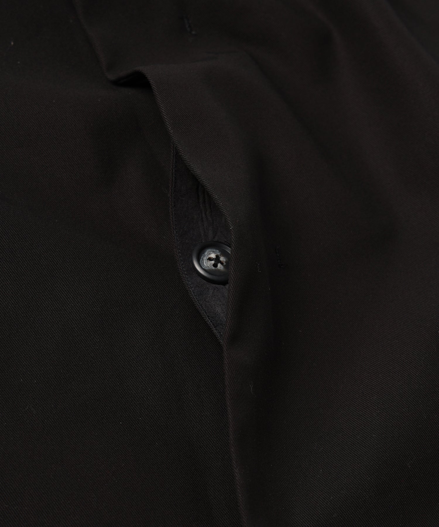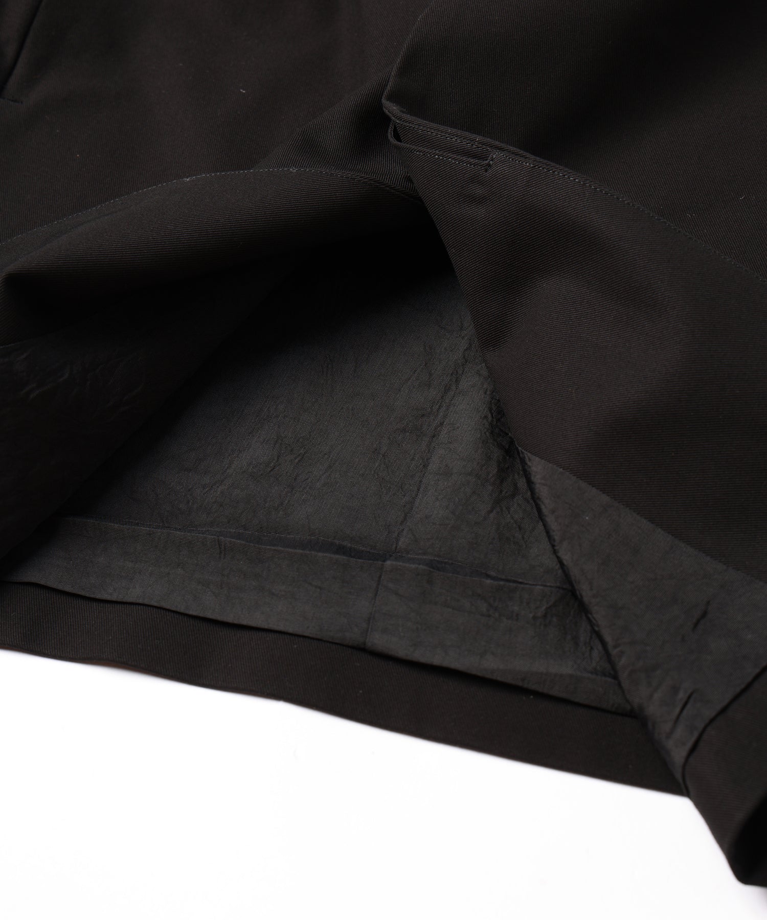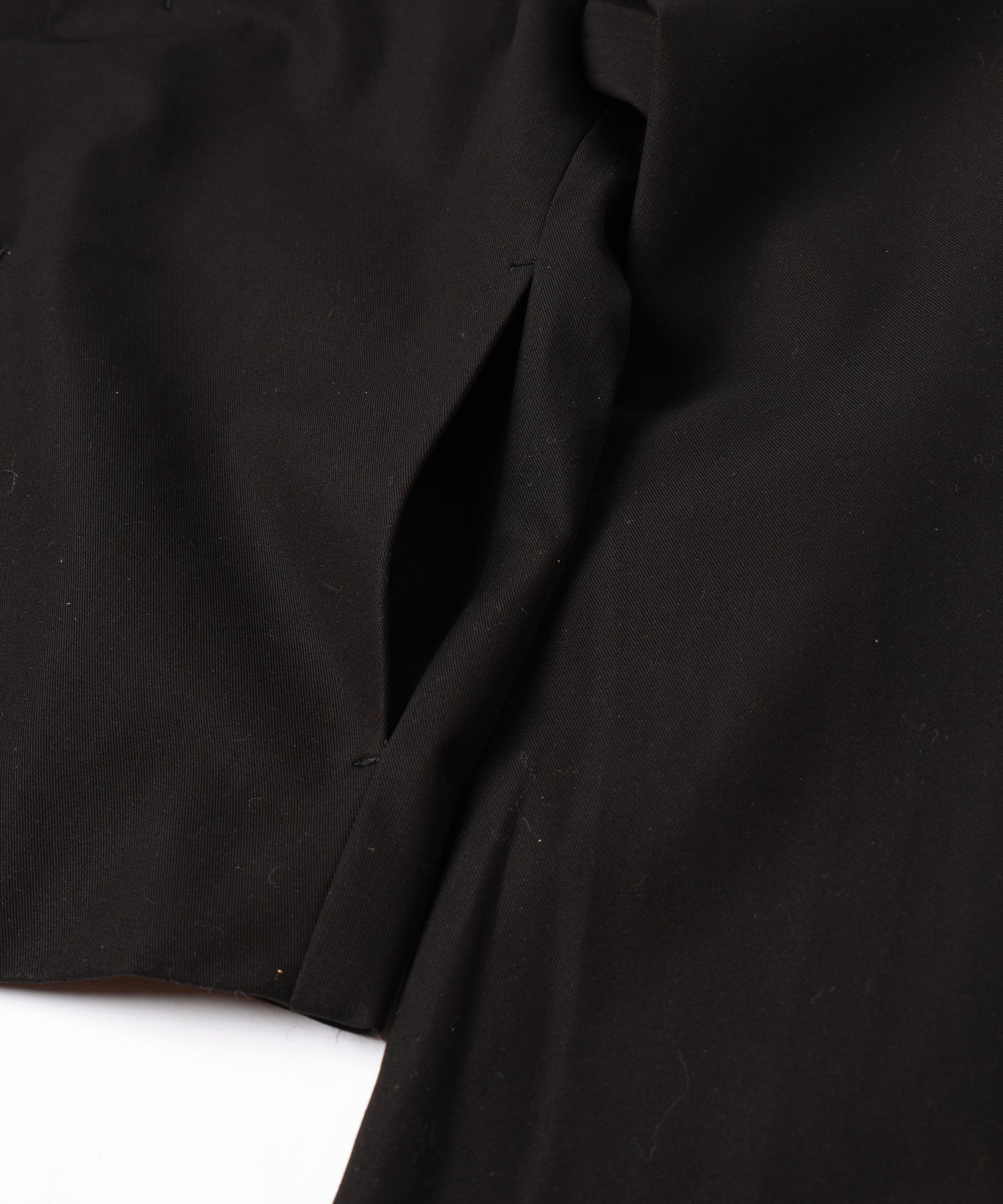 比翼仕立ての前あき、サイドシームポケットのミニマルなデザインとなっており、