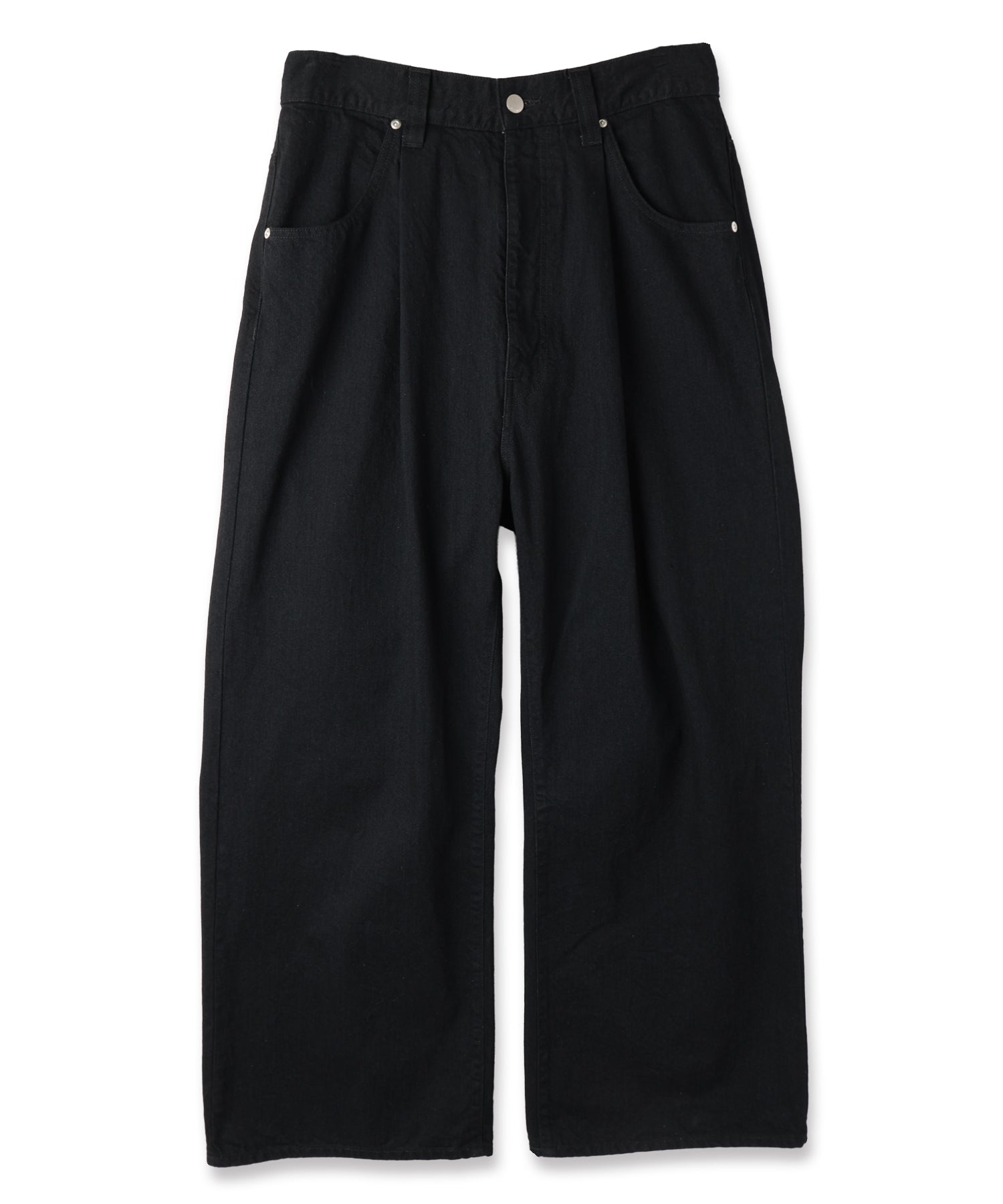 ワンタックを配したストレートシルエットのワイドパンツとなっており、股上を深めに設定し、腰回りをスッキリさせることでミニマルなデザインながらも、シルエットにこだわった1着となっております。