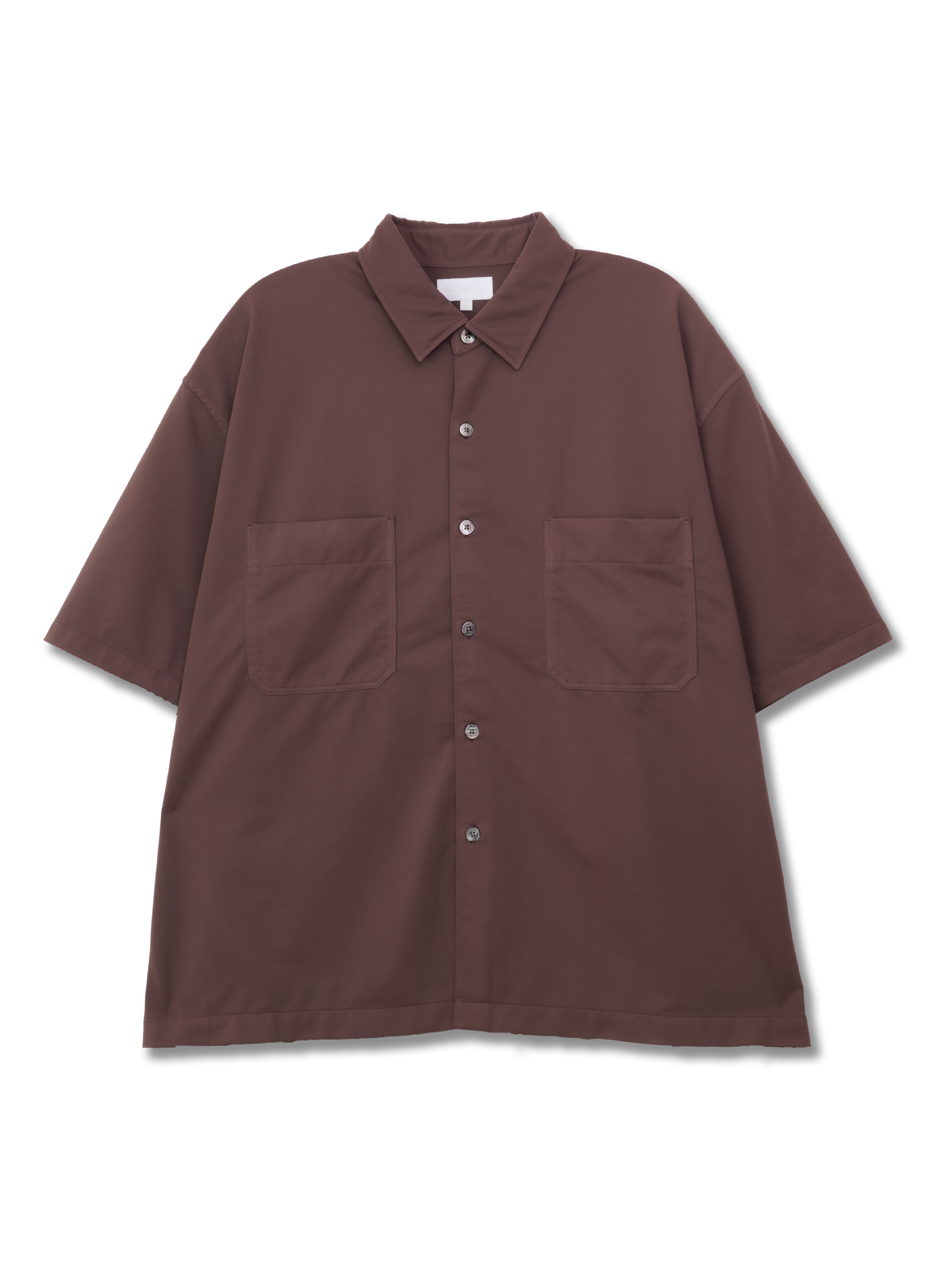 素材のハリ感、光沢感、そして塩梅の良いシルエット、生地が生み出すドレッシー感とパターンを融合させた、唯一無二のシャツ。新素材のナイロンは、50D 高捲縮ナイロン糸を 100%使い。表面感のある素材を、すべて特殊洗いをかけ、縮めることでより凹凸感とシャリ感を生み出しております。