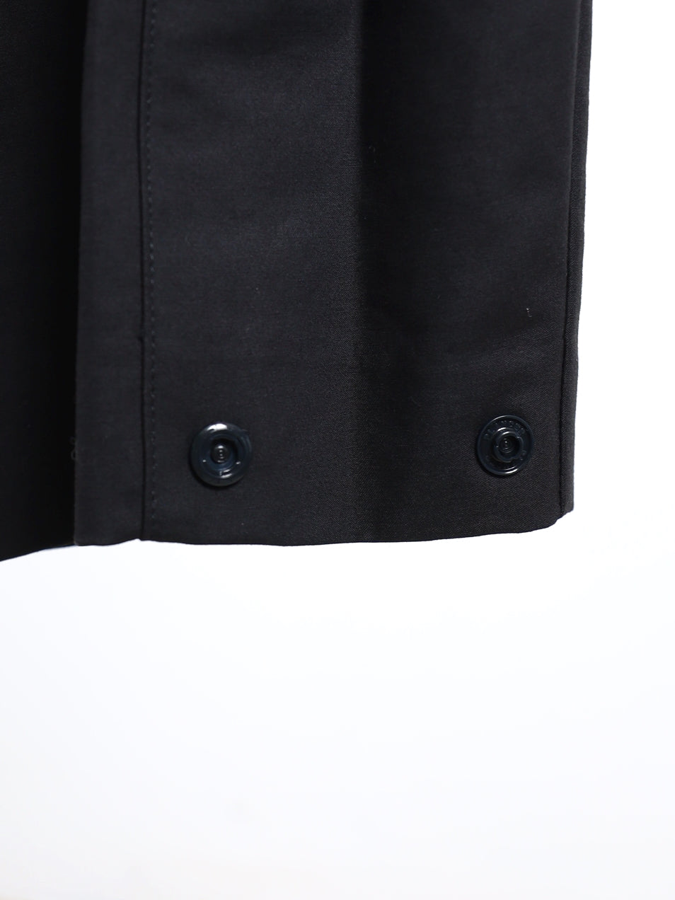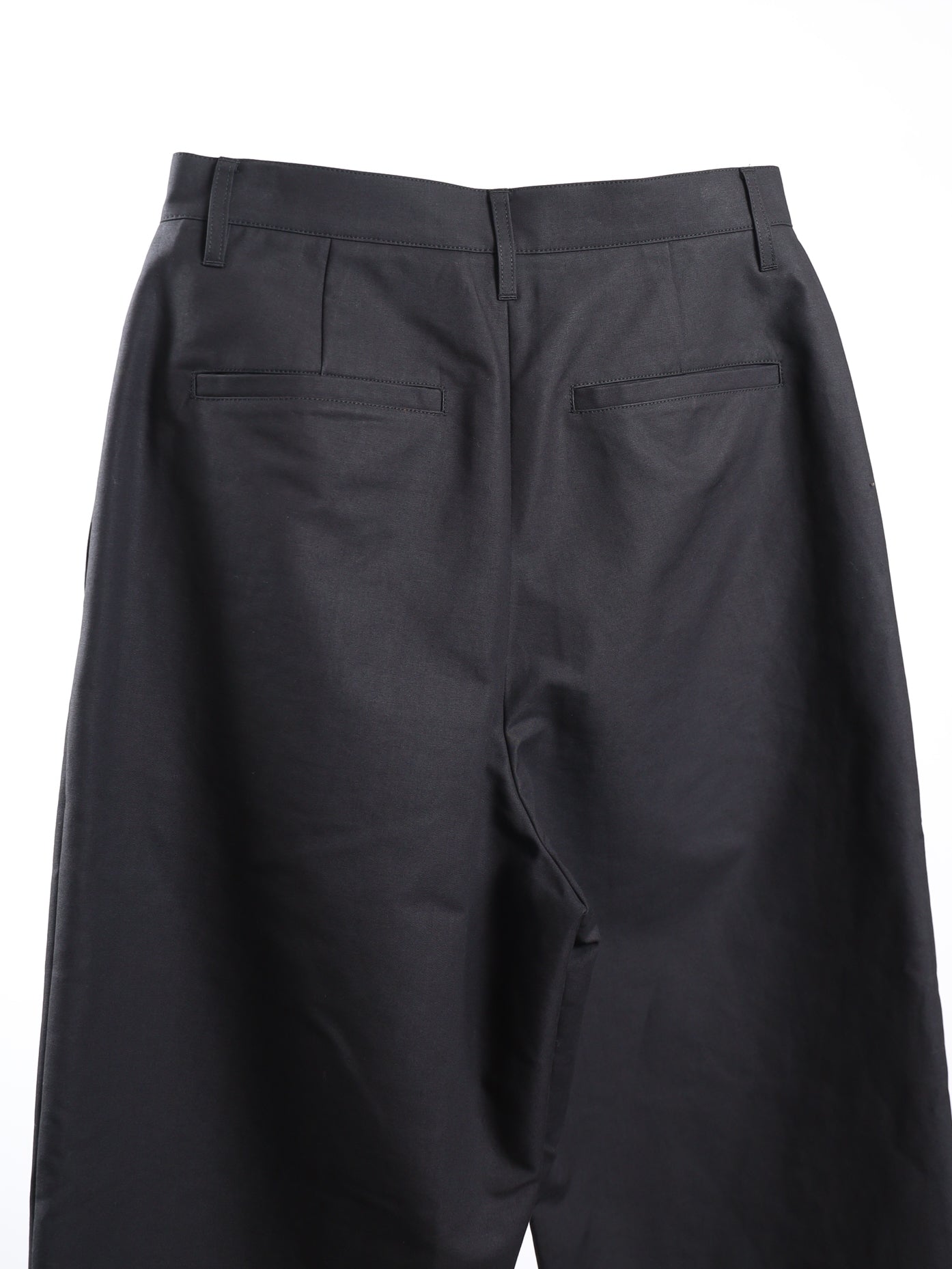 しっかりとしたコットン素材で作られており、季節に関係なくシーズンレスに活用できます。ハイウエストデザインにスナップボタンを加え、裾の幅を調整でき、両サイドの深いタックディテールで構造的なシルエットを完成させました。背面のポケットとサイドシームラインのハーフウェルトポケットで実用性を高め、構造的なシルエットと軽い着用感が特徴です。