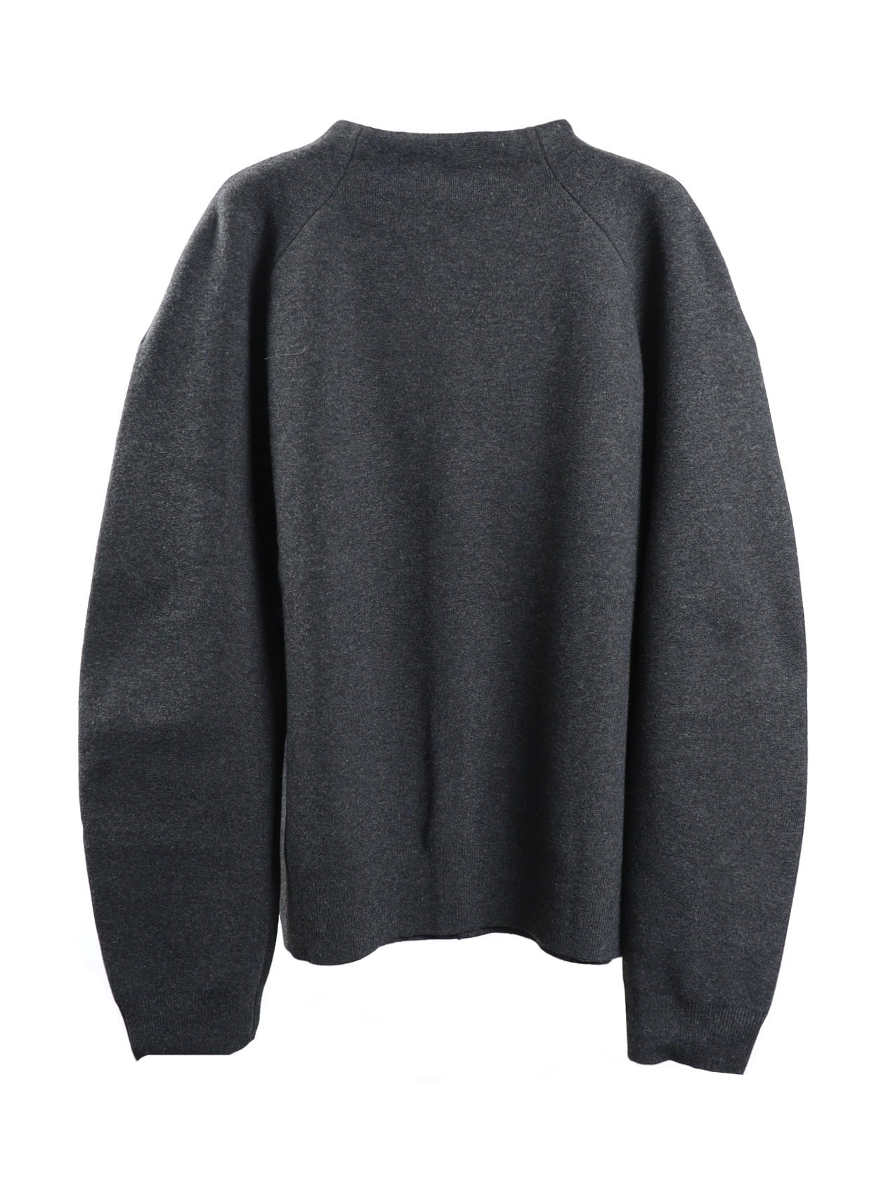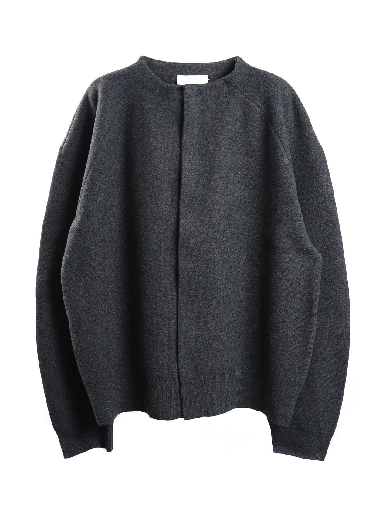 カーブしたシルエットの袖が際立つカーディガン。袖のラインを立体的な曲線形に編み、自然なボリューム感を強調しました。