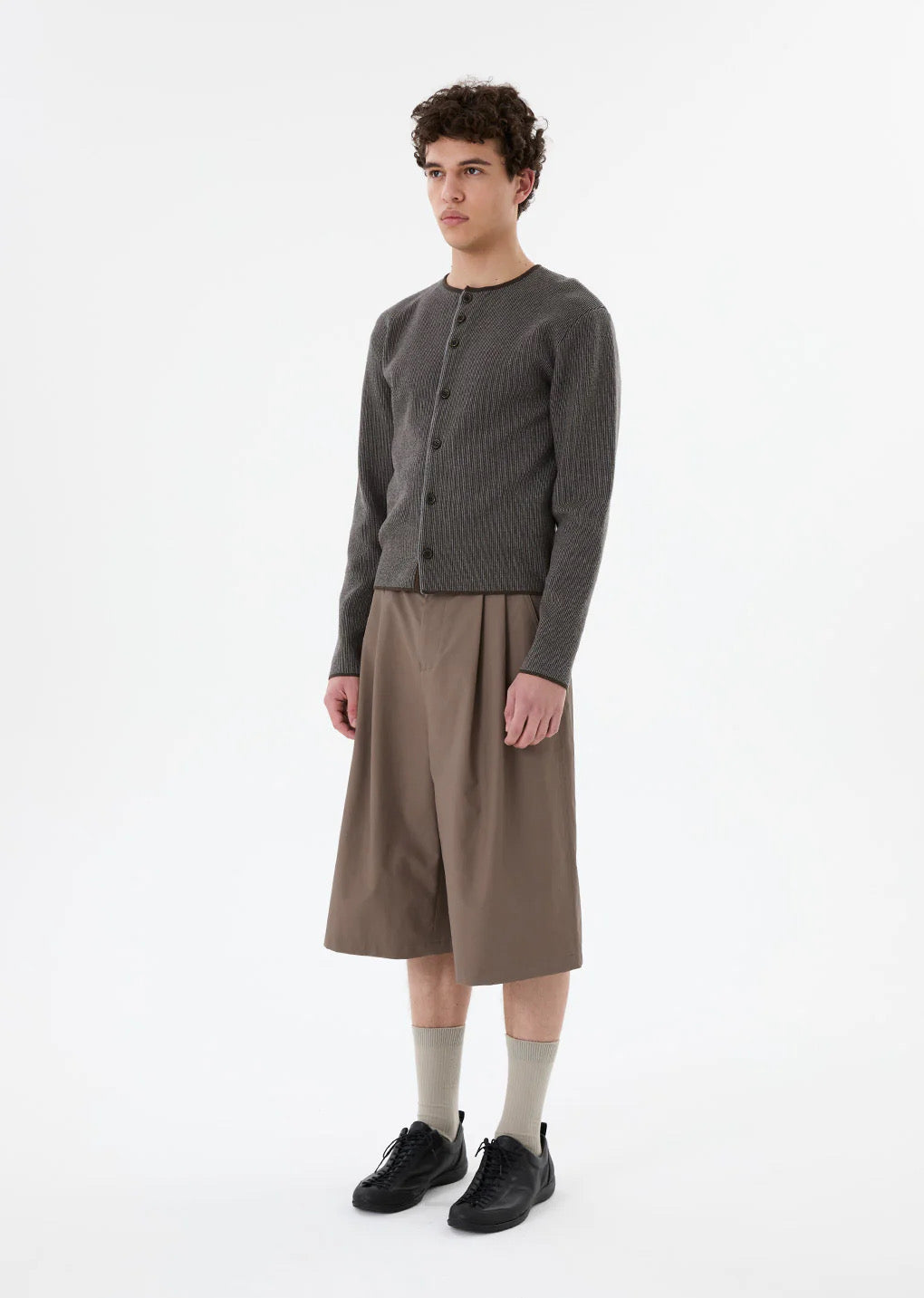 また、ミニマルなデザインが魅力のリブ編みカーディガンとなっており、細やかなリブ編みが縦のラインを強調し、スッキリとしたシルエットとなっております。
