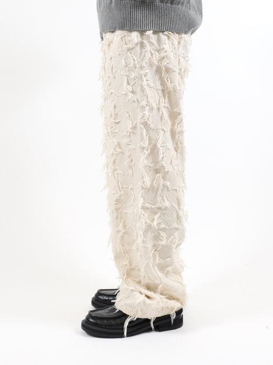 ストレートシルエットで、ウール混紡ツイルながらも上品な質感を持ち合わせており、