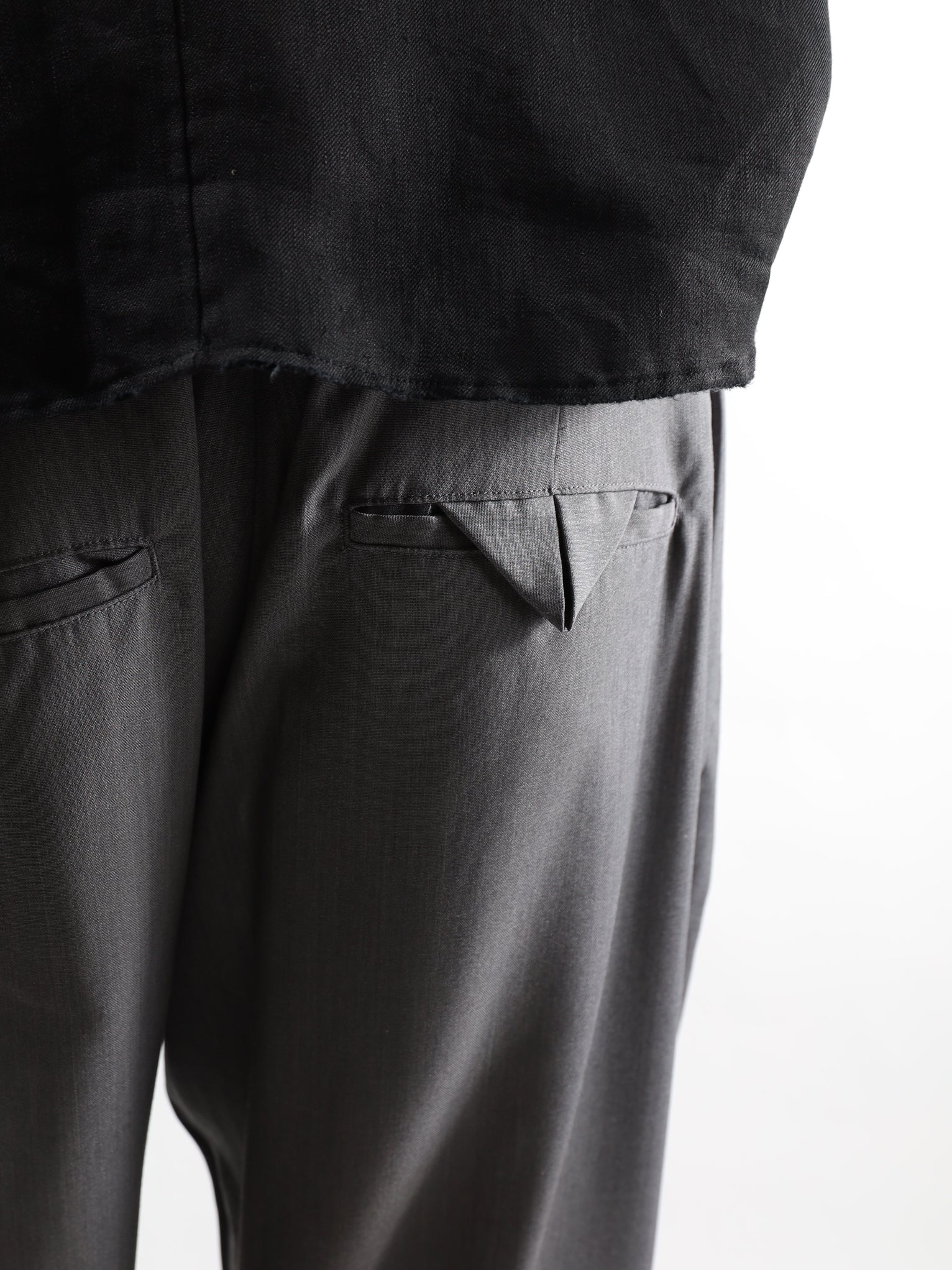 ウールをベースに三素材をブレンドすることで、品が良く洗練とした艶が流れ、夏季でも涼し気に履いて頂ける素材で仕立てております。