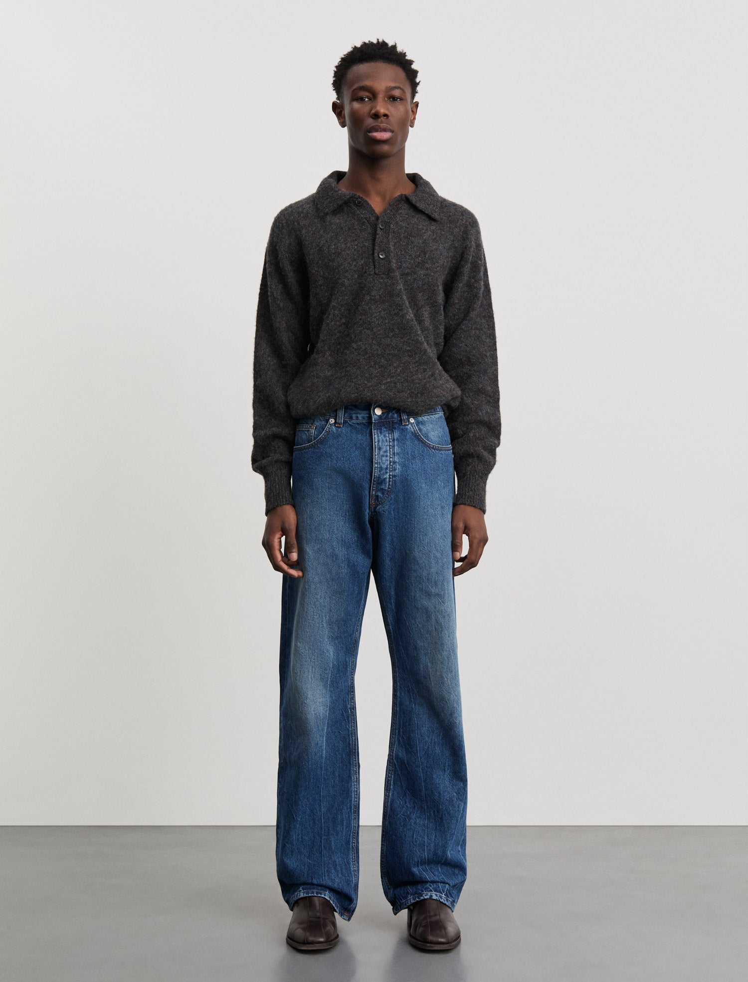 100%オーガニックコットン(GOTS認証)セルビッジデニムを使用。クラシックな5ポケットジーンズをベースに、膝下からフレアにフィットするシルエットに仕上げ、軽いマーブルウォッシュ加工でカジュアルな風合いに仕上げています。