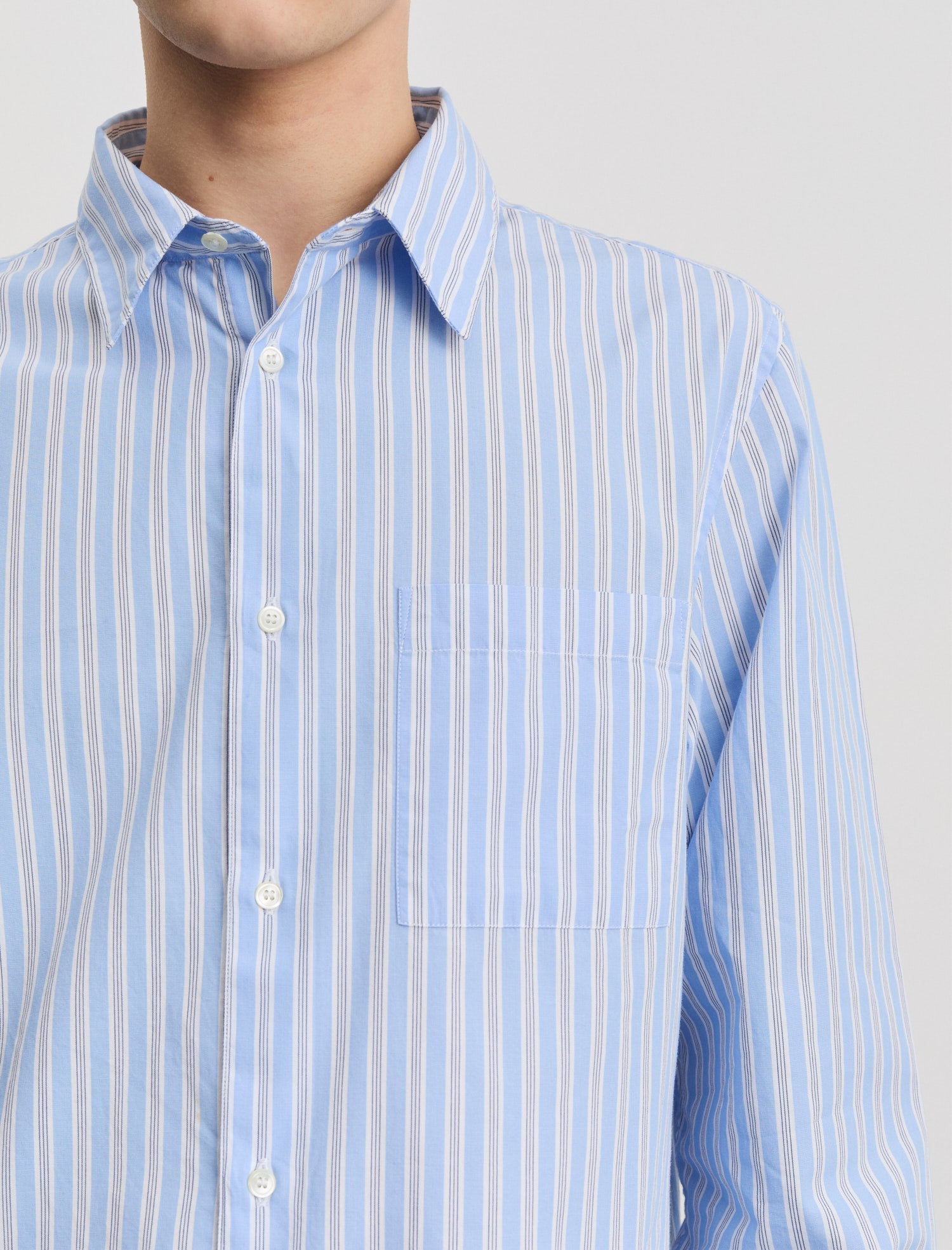 オーガニックコットンポプリン(GOTS認証)の上品な素材とカジュアルな着こなしを融合させたレギュラーフィット。