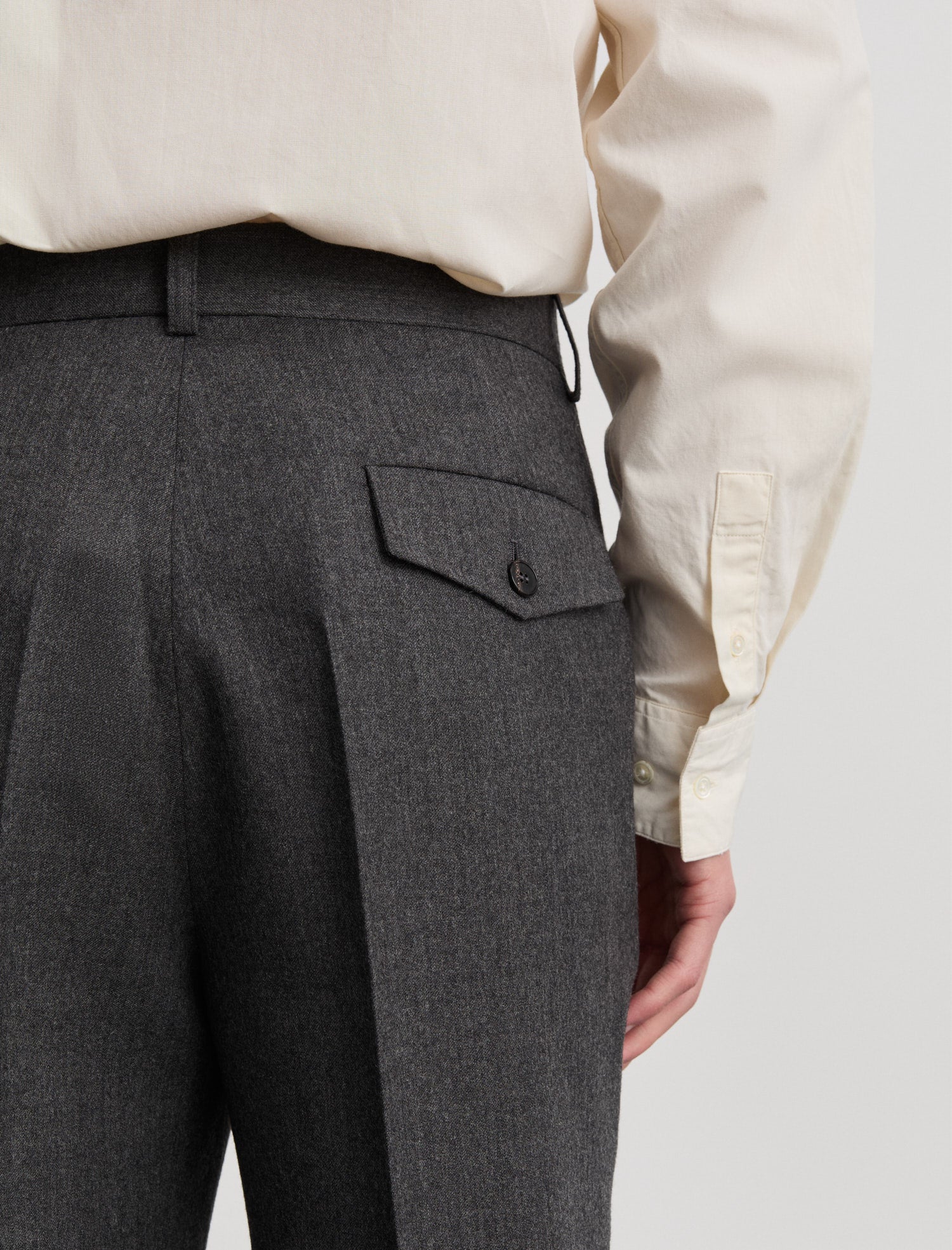 Another Suit Pants 1.0では、不要なノイズをすべて削ぎ落とし、上質なウールツイル素材で耐久性を高め、一年中快適に着用できるパンツに仕上げました。