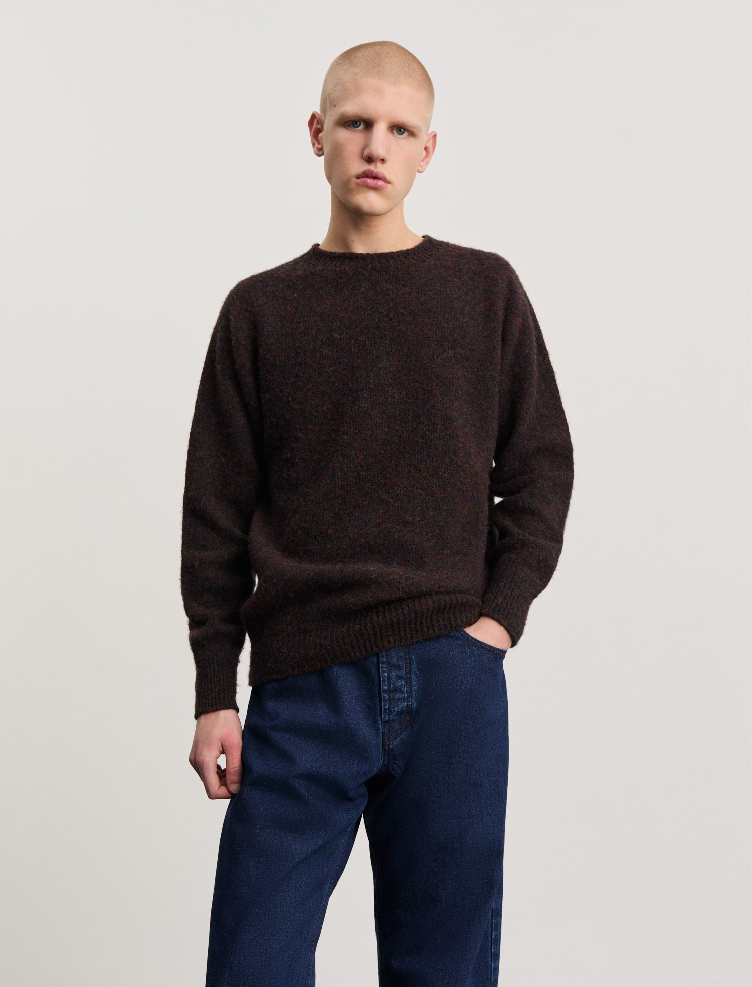 必要最低限の要素に絞り、最適なカットから着想を得ました。スコットランドの熟練ニッターと共同で、柔らかく肌触りの良い起毛加工を施したクルーネックセーターを製作しました。シームレス構造で、裾と袖口はリブ編み。急な日差しにも対応できる通気性を備えながら、寒い季節には保温性も備えています。