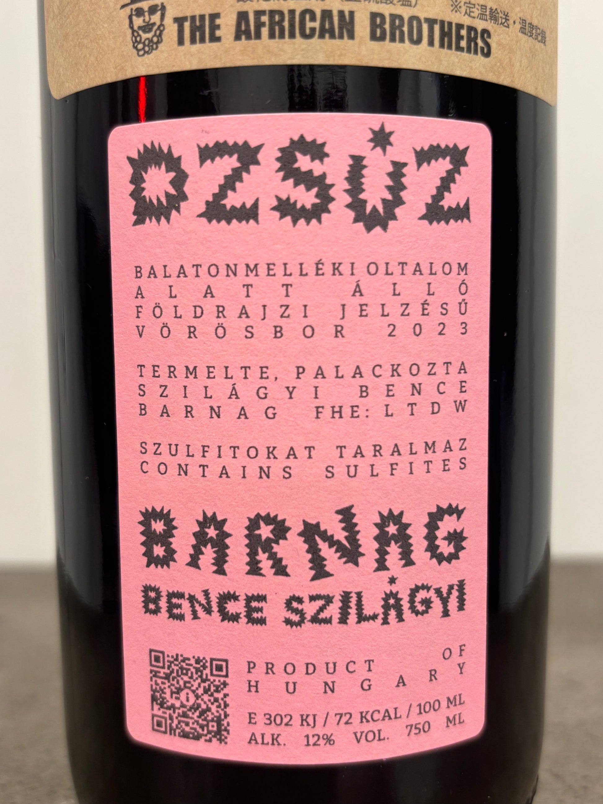 コンセプトはいつも同じで、飲みやすさを第一に考えた、フレッシュで軽くて美味しい赤ワインです。キュヴェの50%は冷涼な気候のモノスロー地区で若いケークフランコシュ(ブラウフレンキッシュ)の早摘みで収穫された物で作られ、ほとんどが全房で発酵。一部はダイレクトプレスで、ステンレスタンクと木樽に入れます。アスゾフォ地区の温暖なぶどう畑で育ったカベルネは全房でより長い期間マセレーションをし、木樽で熟成させます。ブレンドし、ノンフィルターで瓶詰め。