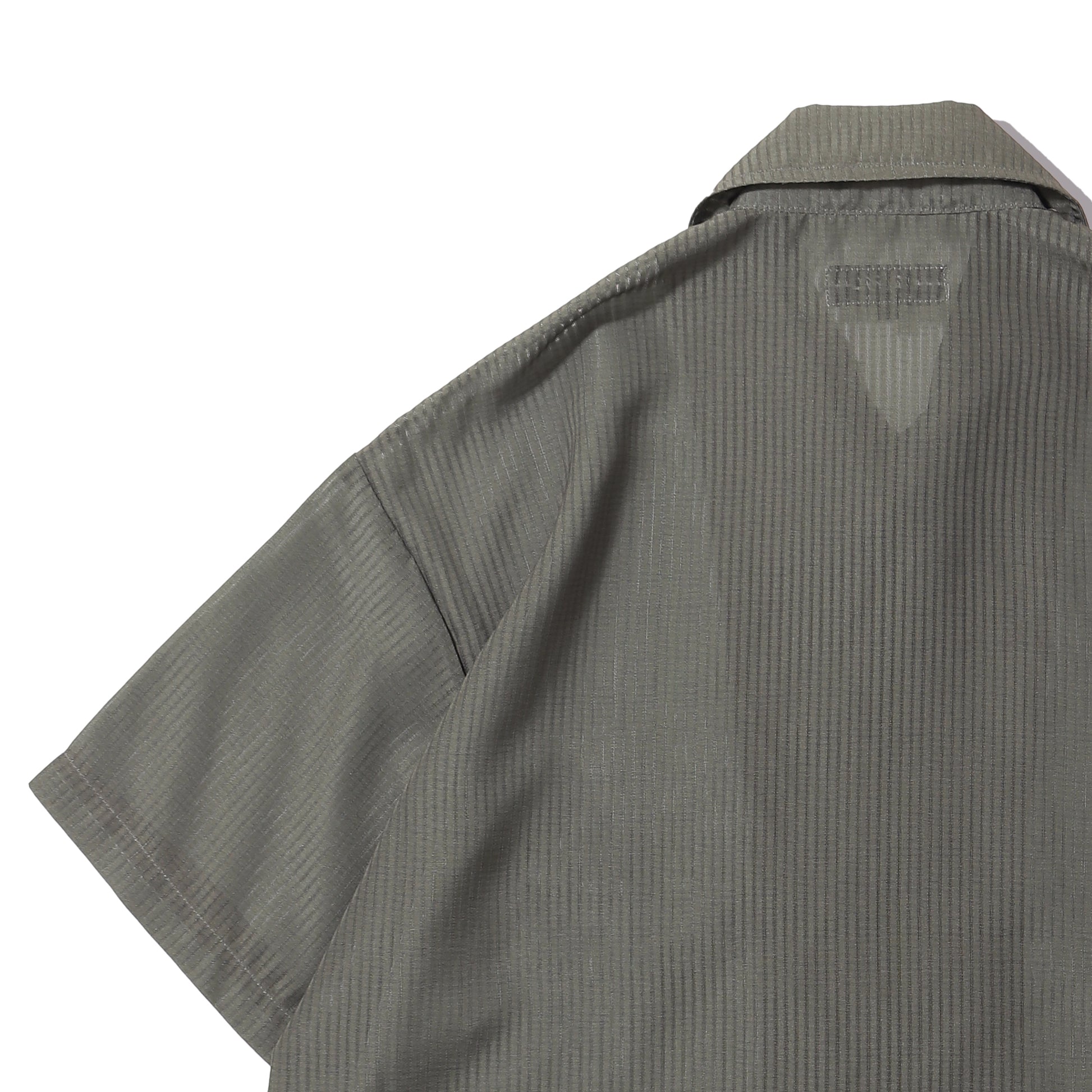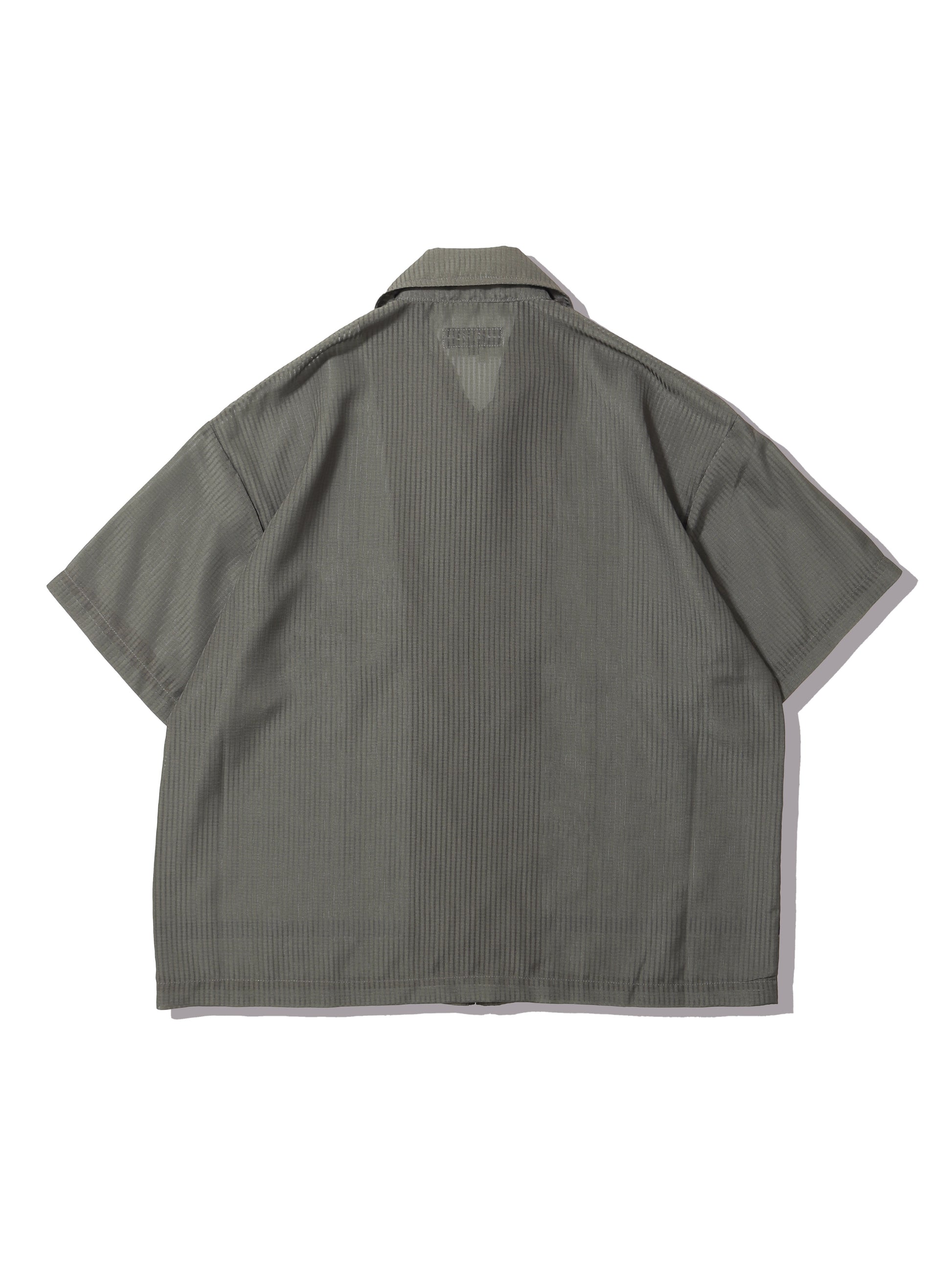 素材には非常に軽やかでシャリ感があり、小さな穴が無数に開いているからみ織りの生地を使用。 ファスナー引手にはレザーのドローコードを配置。
