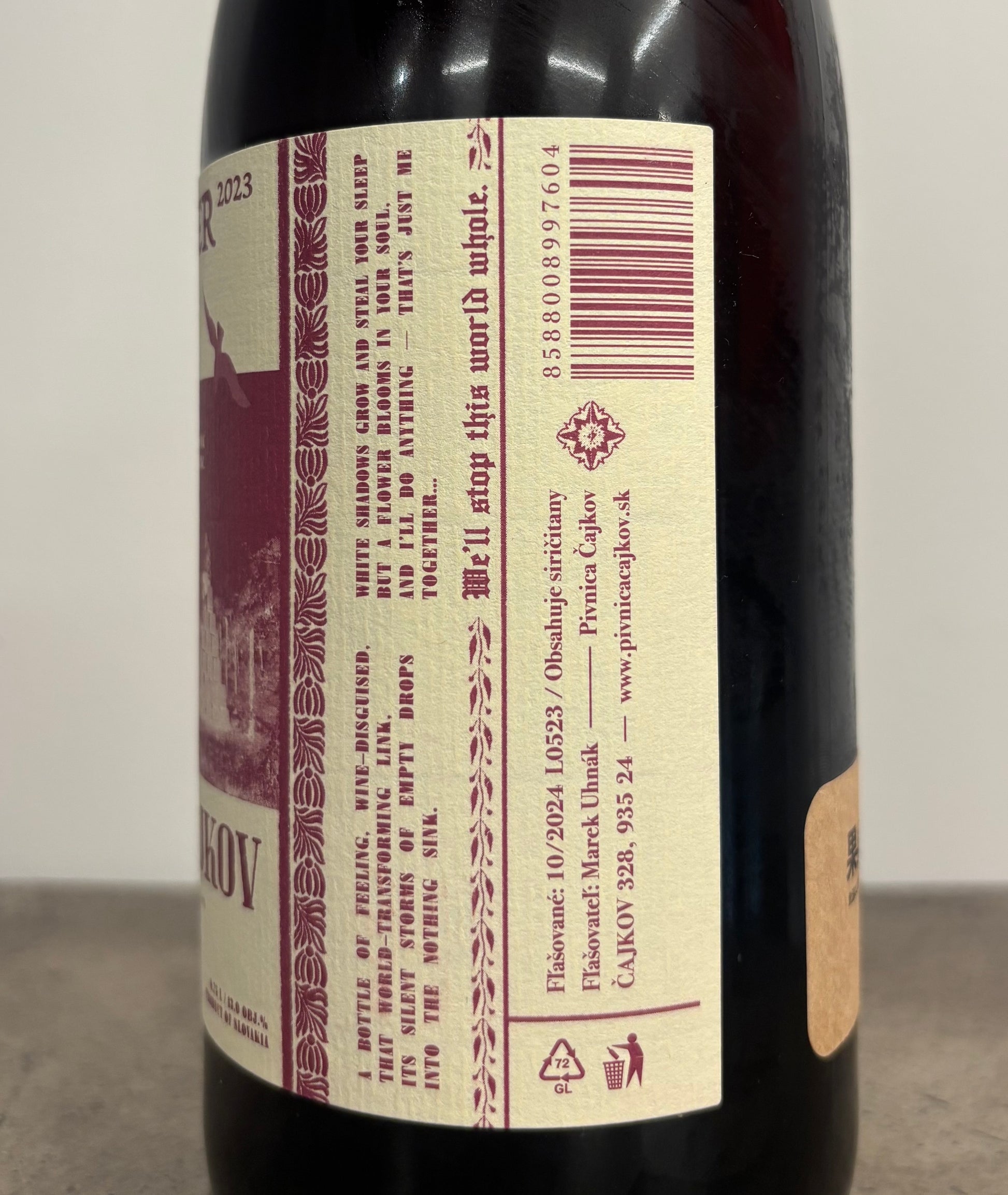 樹齢13年の赤い流岩土壌のチャイコフ地区のスタラ・オラ畑(南スロバキア)のピノグリを使用。手摘みで収穫。選果後、除硬、破砕し、1回目の収穫(9月上旬)はオープンタンクで6日間スキンファーメント後、古樽にて発酵熟成。2回目の収穫(9月第3週)は、発酵が終わるまでスキンファーメント後、古樽にて樽熟成。3回目の収穫(10月中旬)は、1ヶ月ほどスキンファーメント後、古樽にて樽熟成。12カ月間熱成後、ブレンド。さらに6週間、タンク内で休ませ、ノンフィルターにて瓶詰め。ぶどうの収穫時期による仕込み方を変えるスタイル。通常は25%1回目)、50%2回目)、25%3回目)。