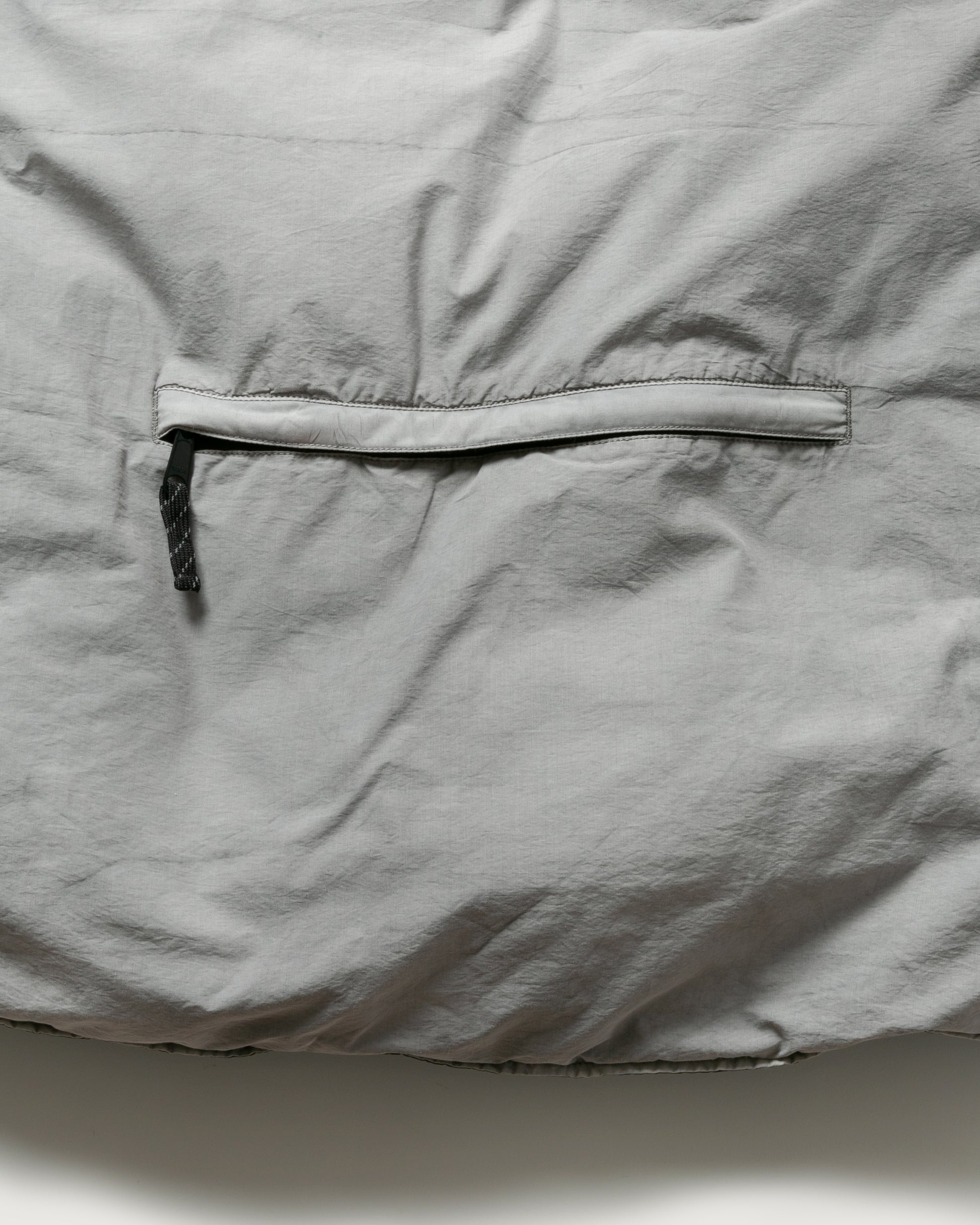 また後身頃に、大きめのゲームポケットを配しアクセントにしています。表地には綿ナイロン素材を使用し、中綿にはダウン80% ·フェザー20%を採用。