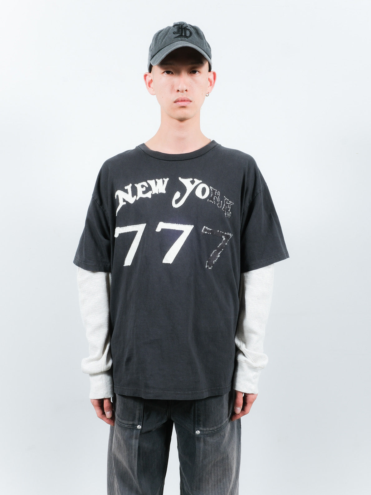 フロントに「NEW YORK 777」刺繍を施したショートスリーブTシャツ。