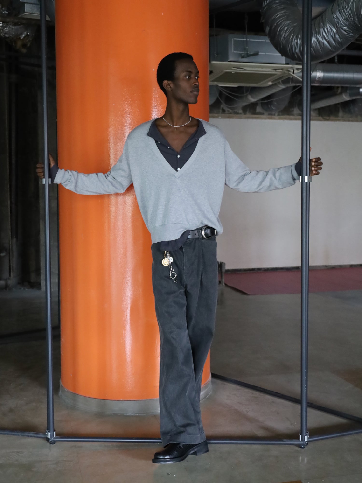 ドロップショルダーで身頃には程よくゆとりをもたせ、首元がすっきり見えるよう深めのVネックに設計し、イージーな着用感ながらもエレガントな雰囲気に仕上げております。
