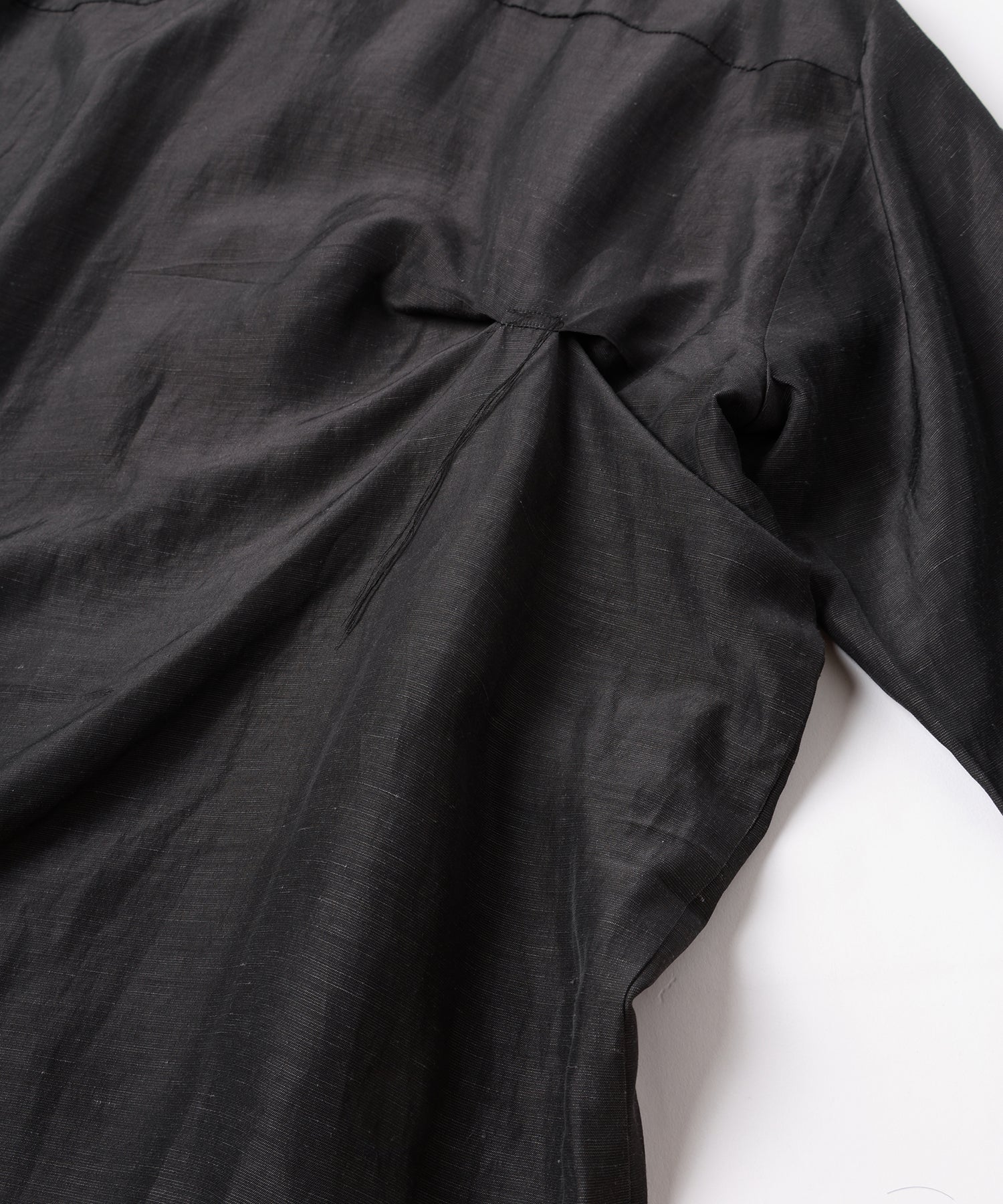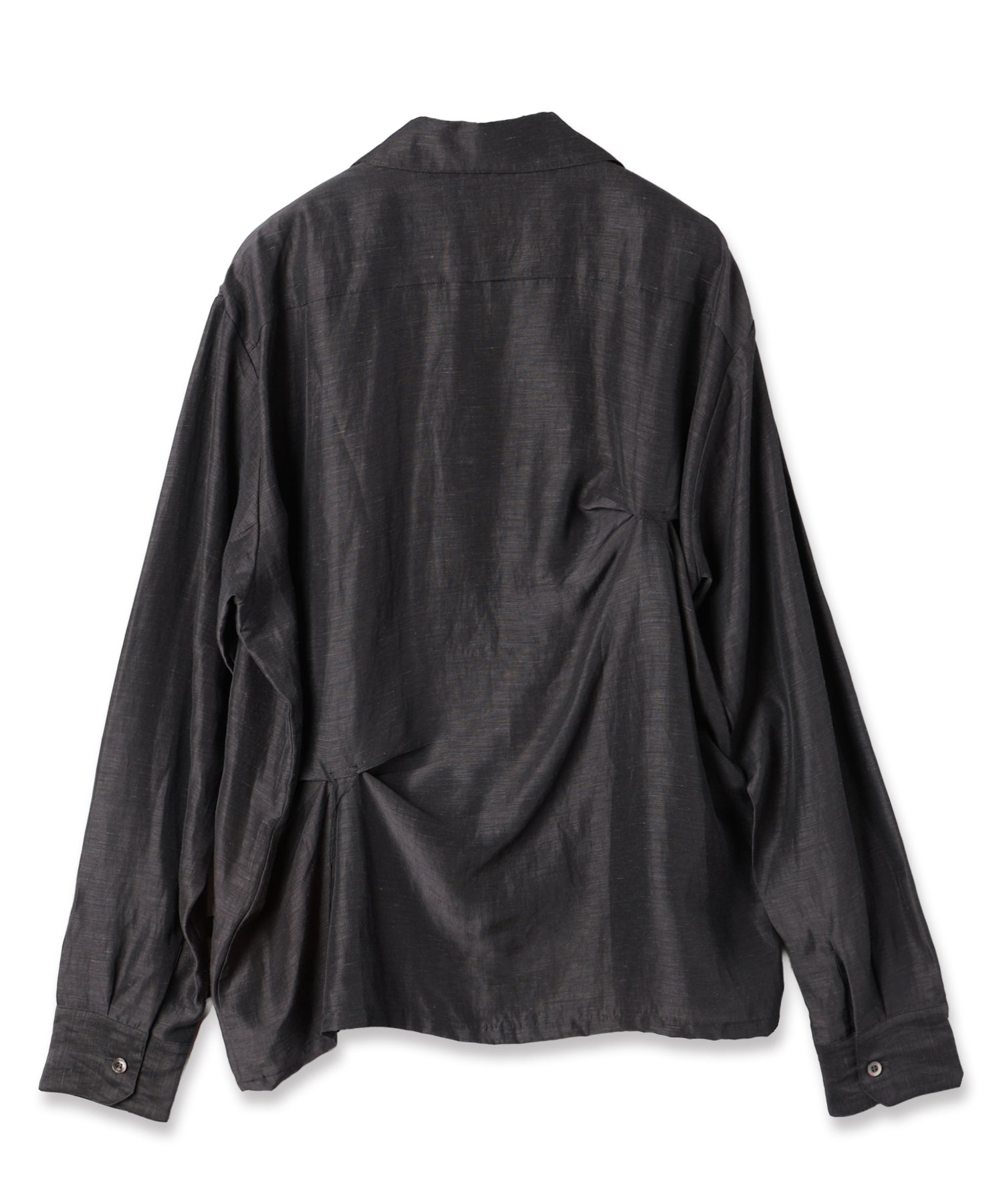 フロントとバックのハンドステッチがアシンメトリーデザインとなっており、ドレープ感のあるシャツとなっております。