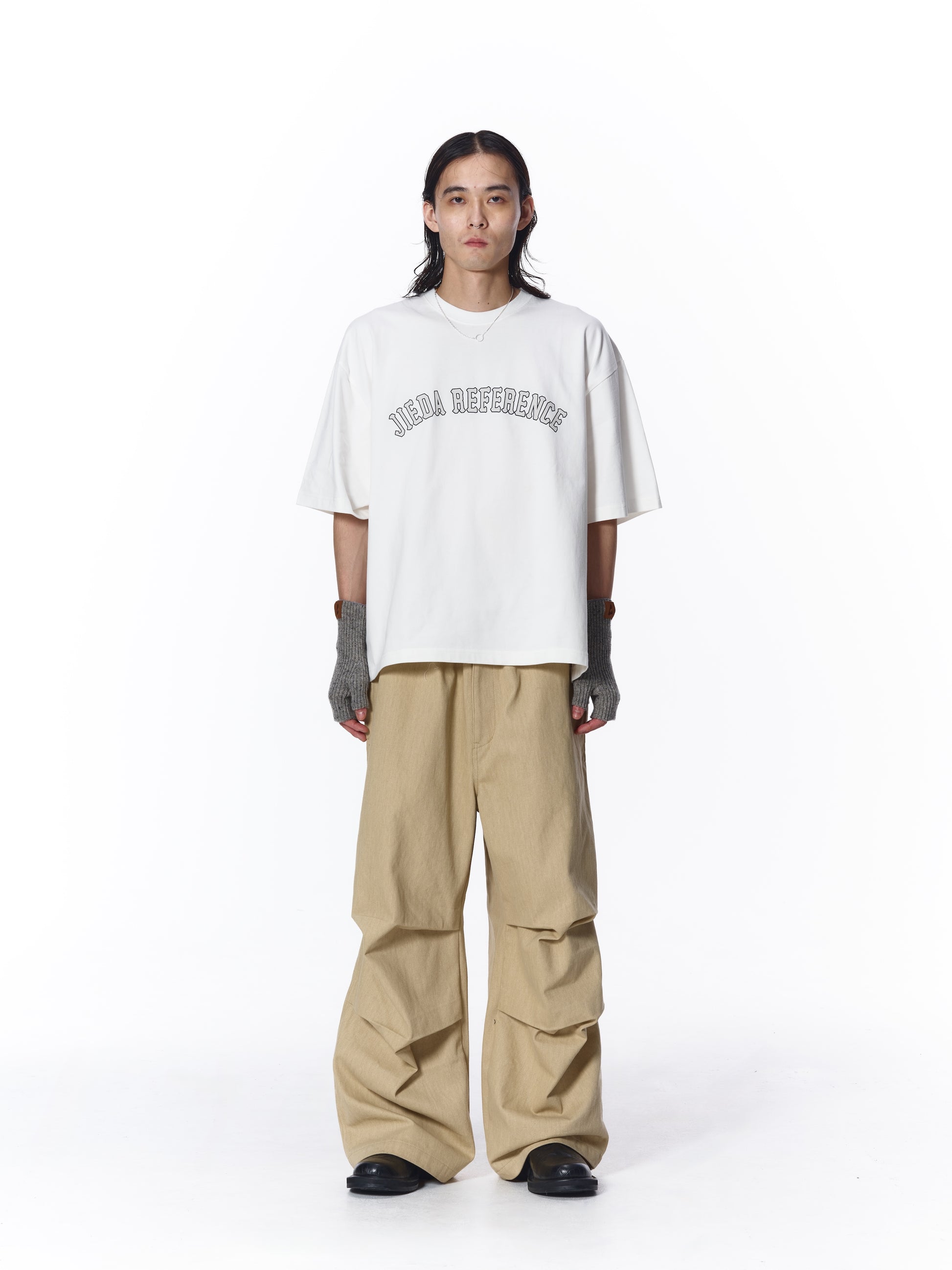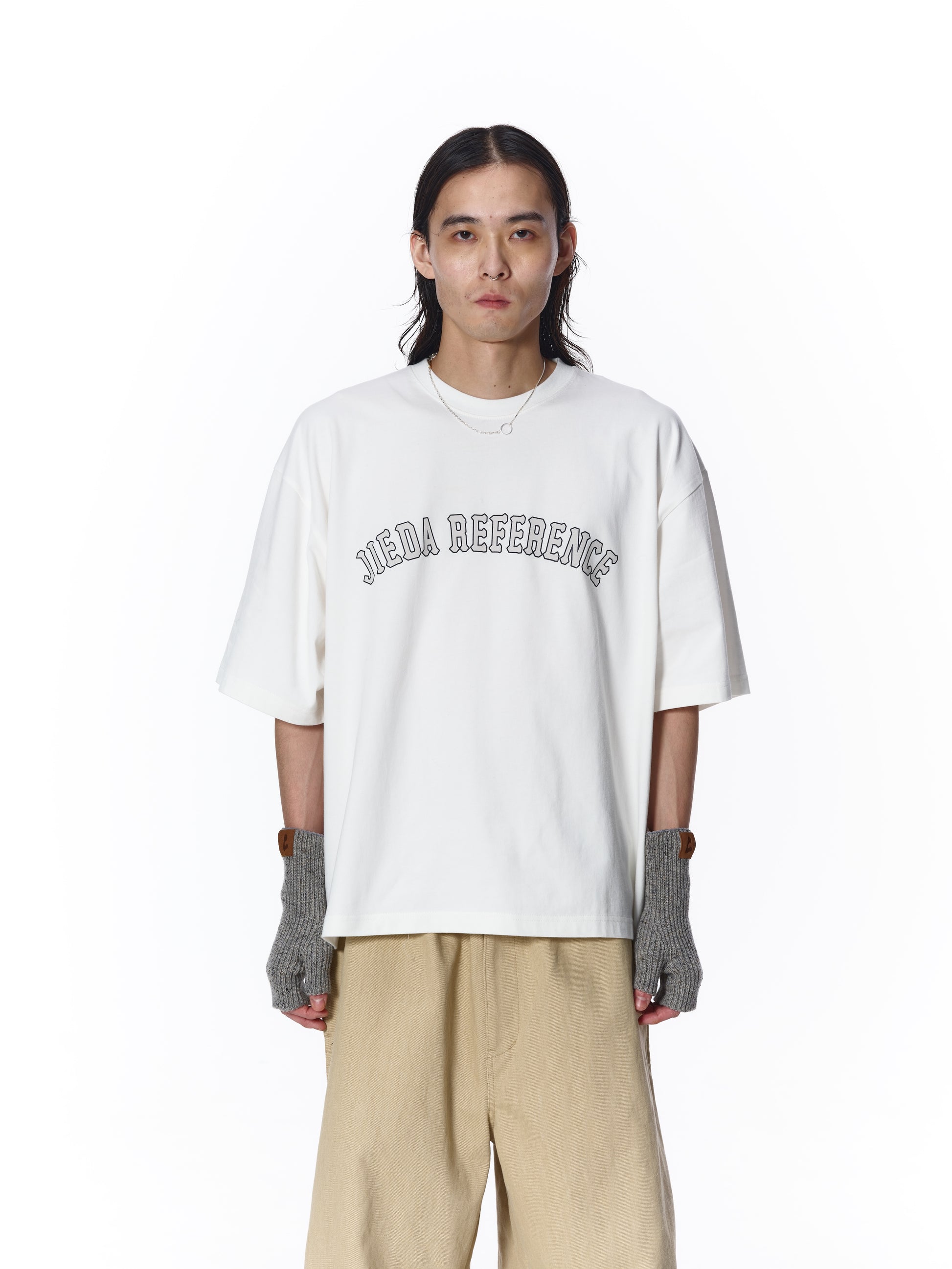 フロントに「REFERENCE」プリントを配したJIEDA定番シルエットのオーバサイズTシャツ。