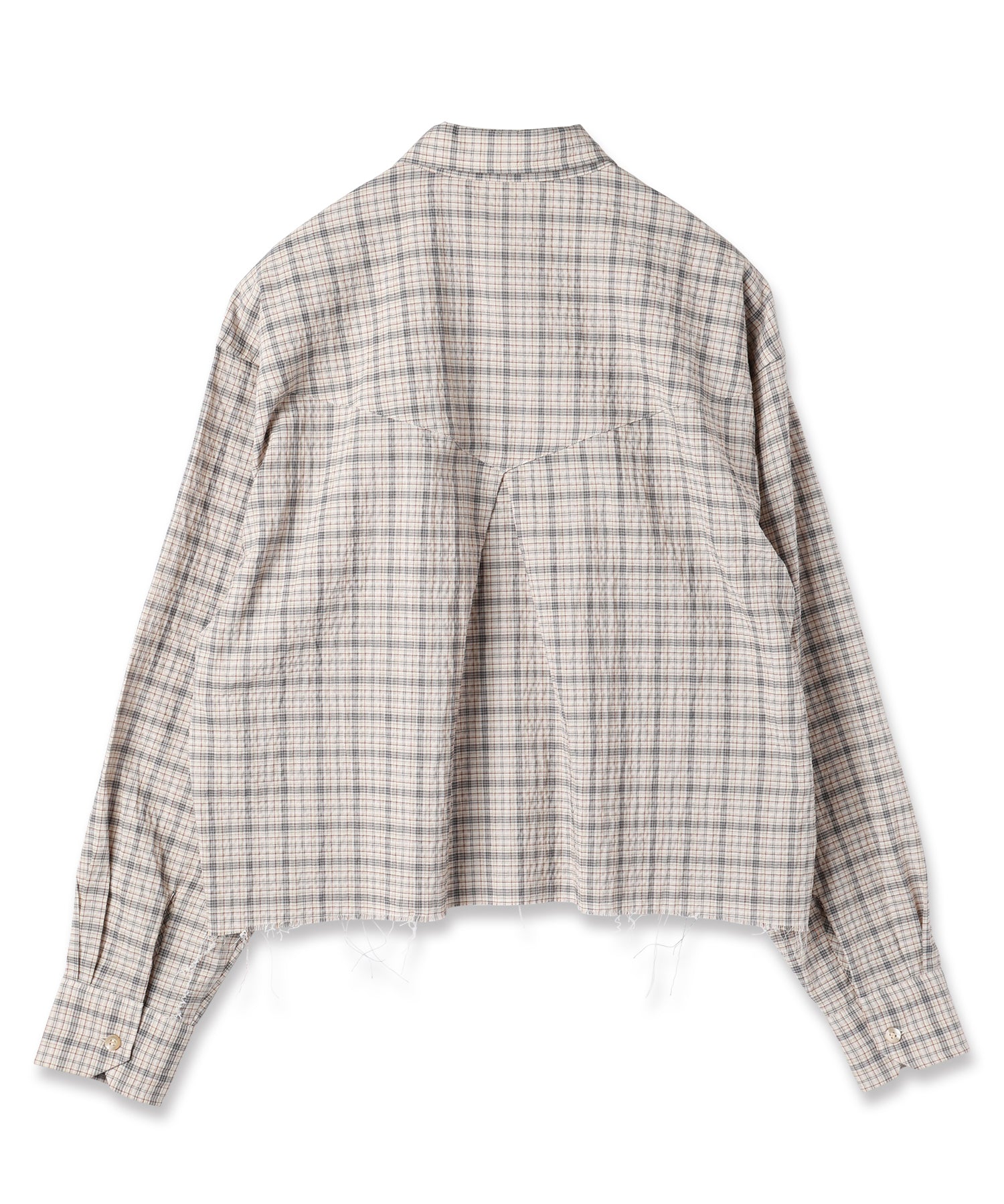 ショート丈のボックスシルエットとなっており、裾は断ち切りの仕様となっております。