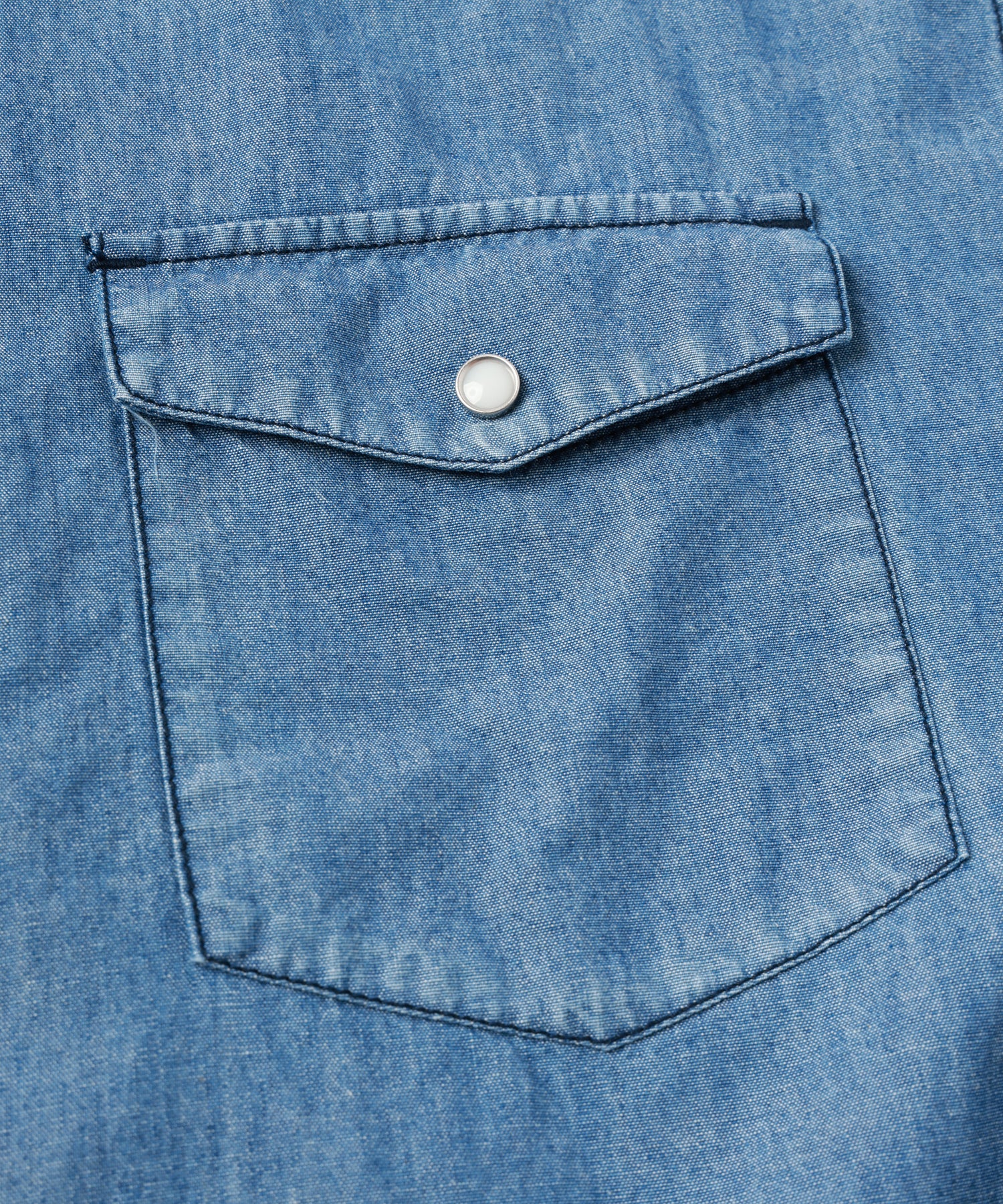 生地には中肉厚のシャンブレー素材を採用。生地に洗いを施すことで、コントラストを出し、シームのあたり感などより立体感のあるシャツに仕上がっております。