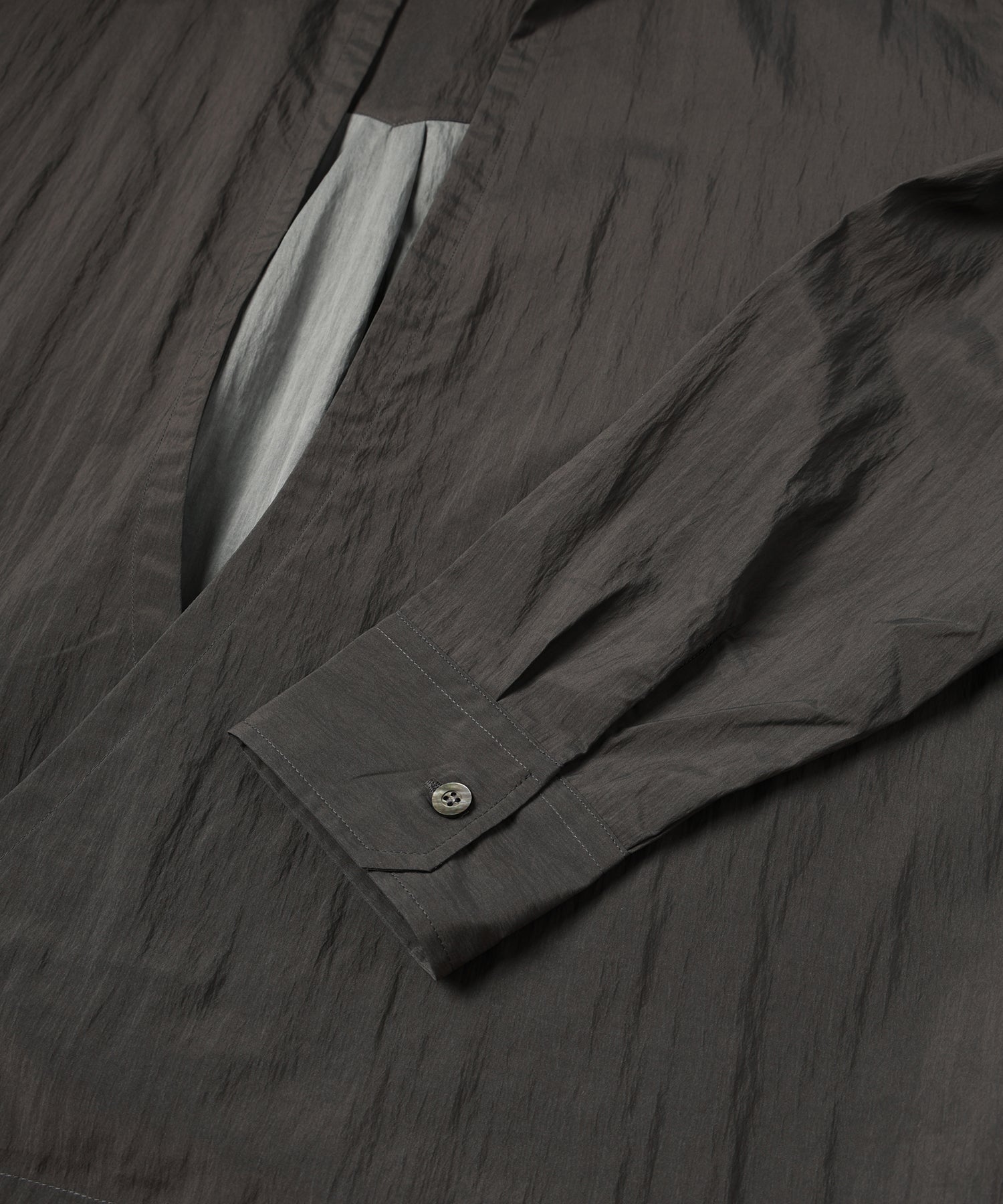 オリジナルの顔料コーティング生地を使用したスキッパーシャツ。