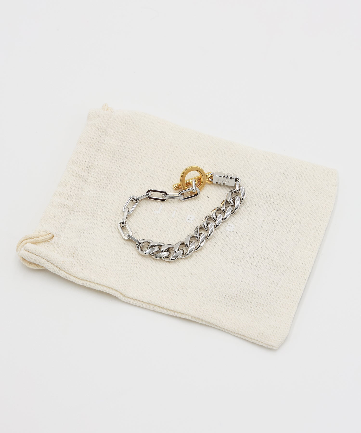 マンテルタイプの留め具を採用したため着脱もしやすく、ブランドロゴのネームパーツを組み込んだブレスレットとなっております。