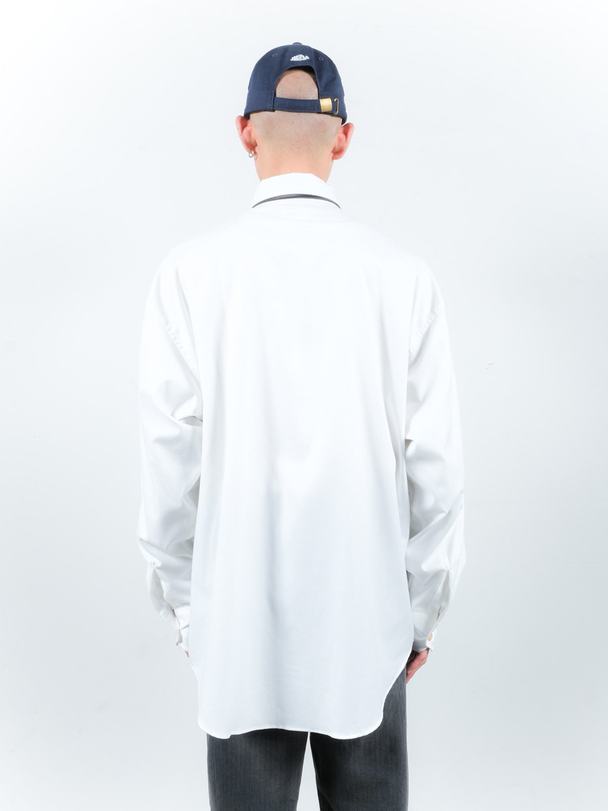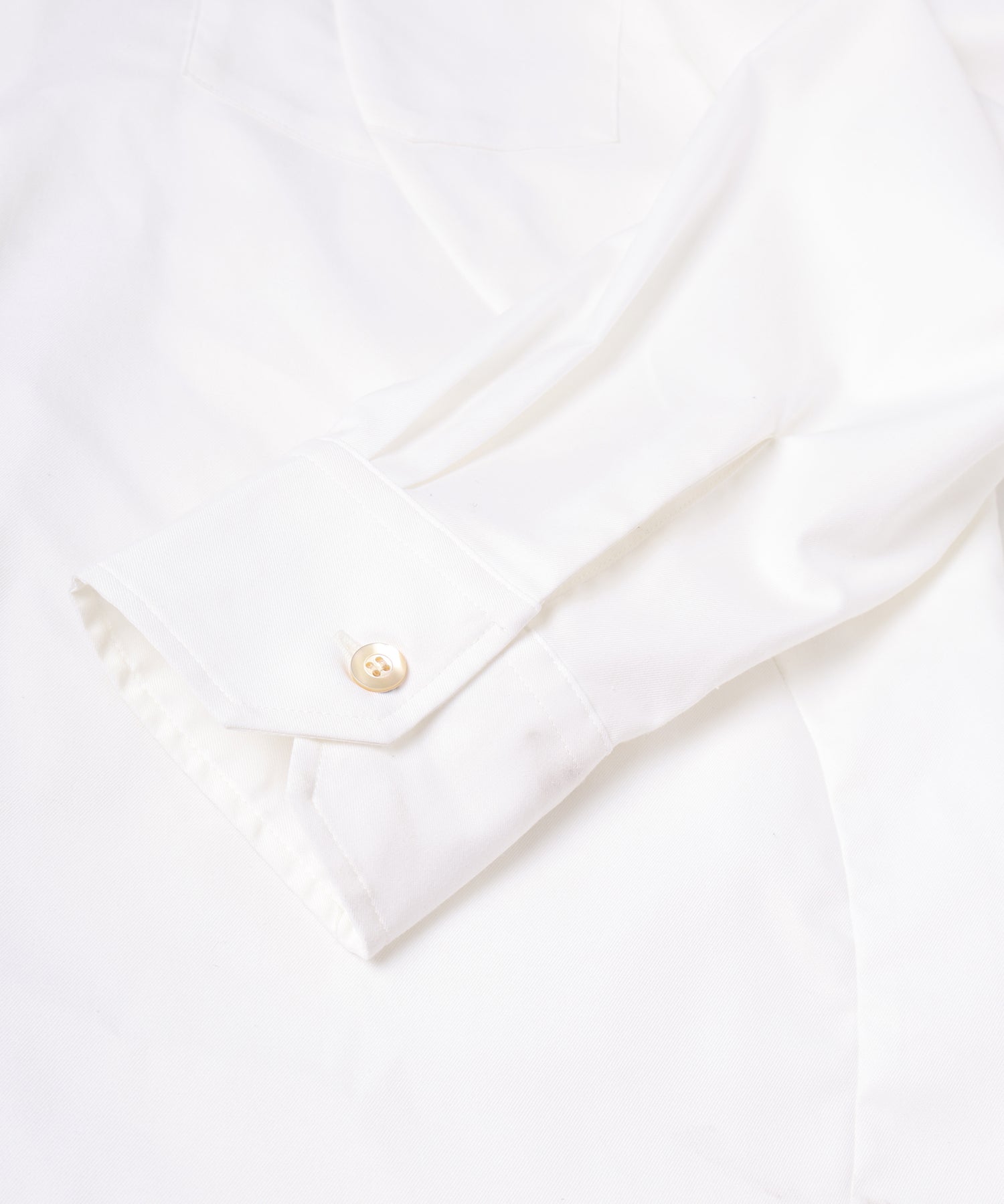 左右で異なるカッティングを施したデザインが特徴的となっており、ボタンダウンの仕様となっております。