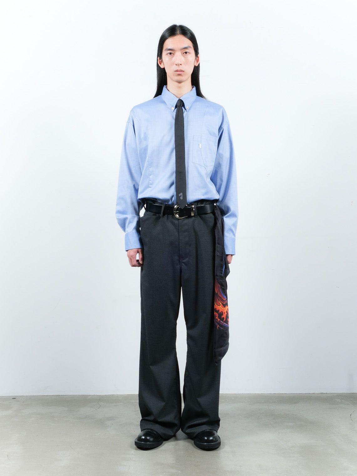 左右で異なるカッティングを施したデザインが特徴的となっており、ボタンダウンの仕様となっております。