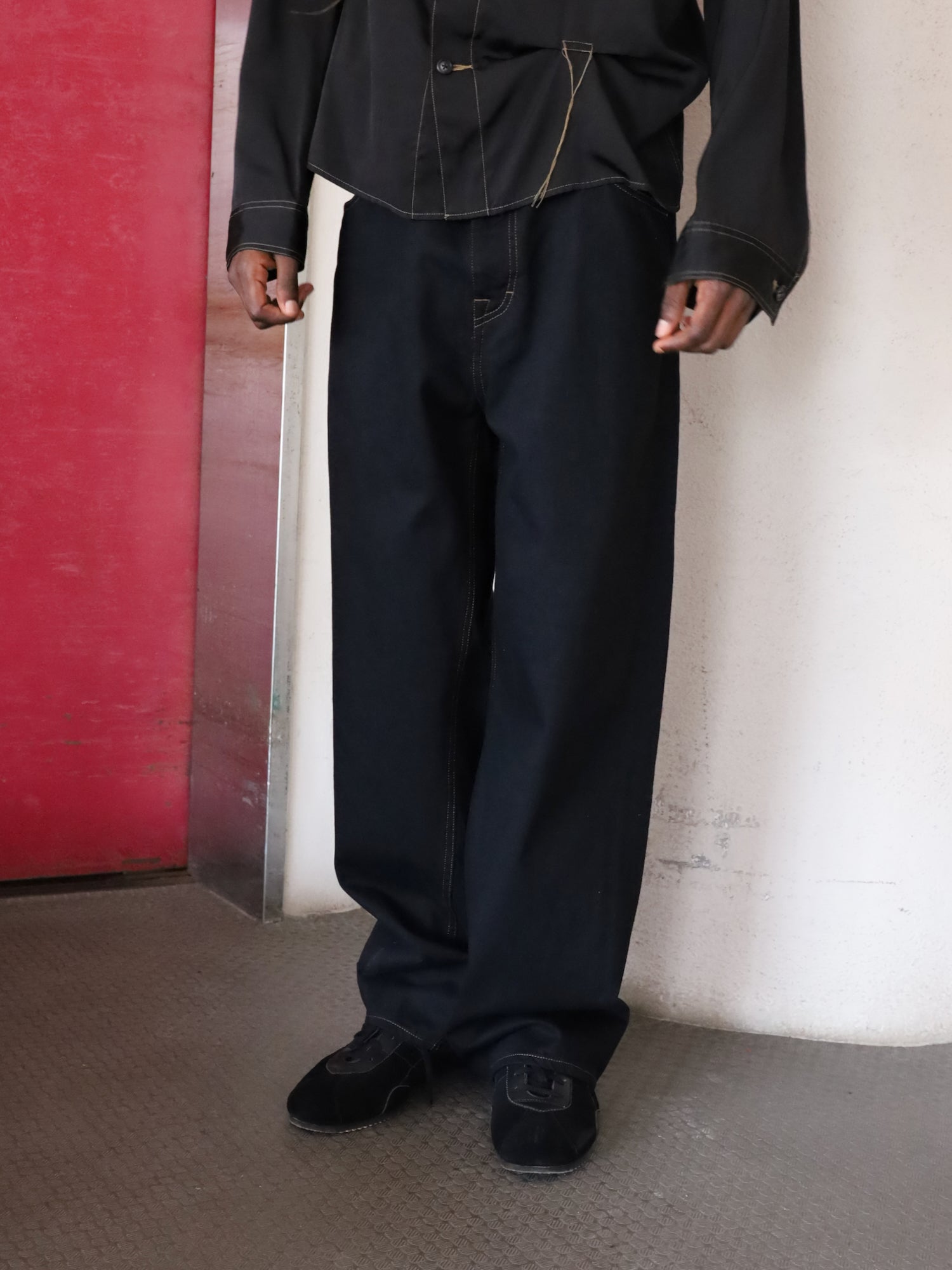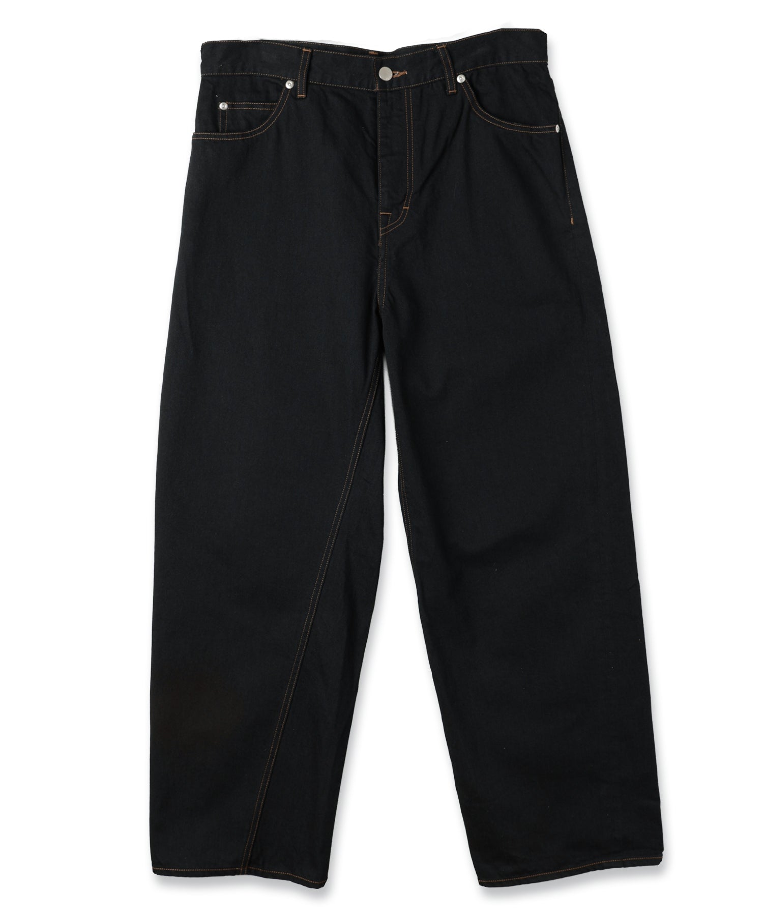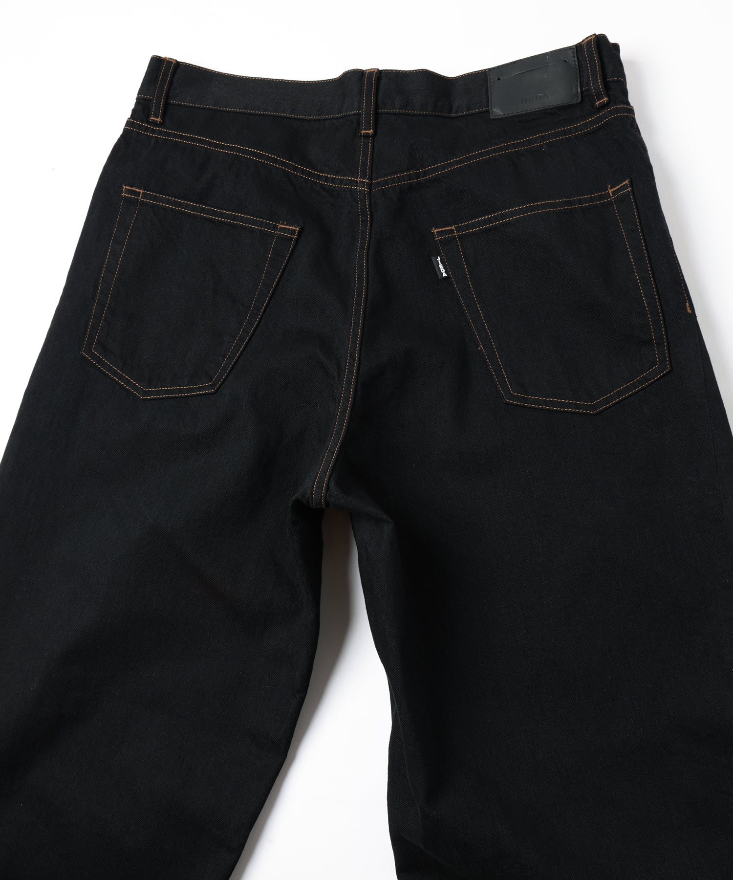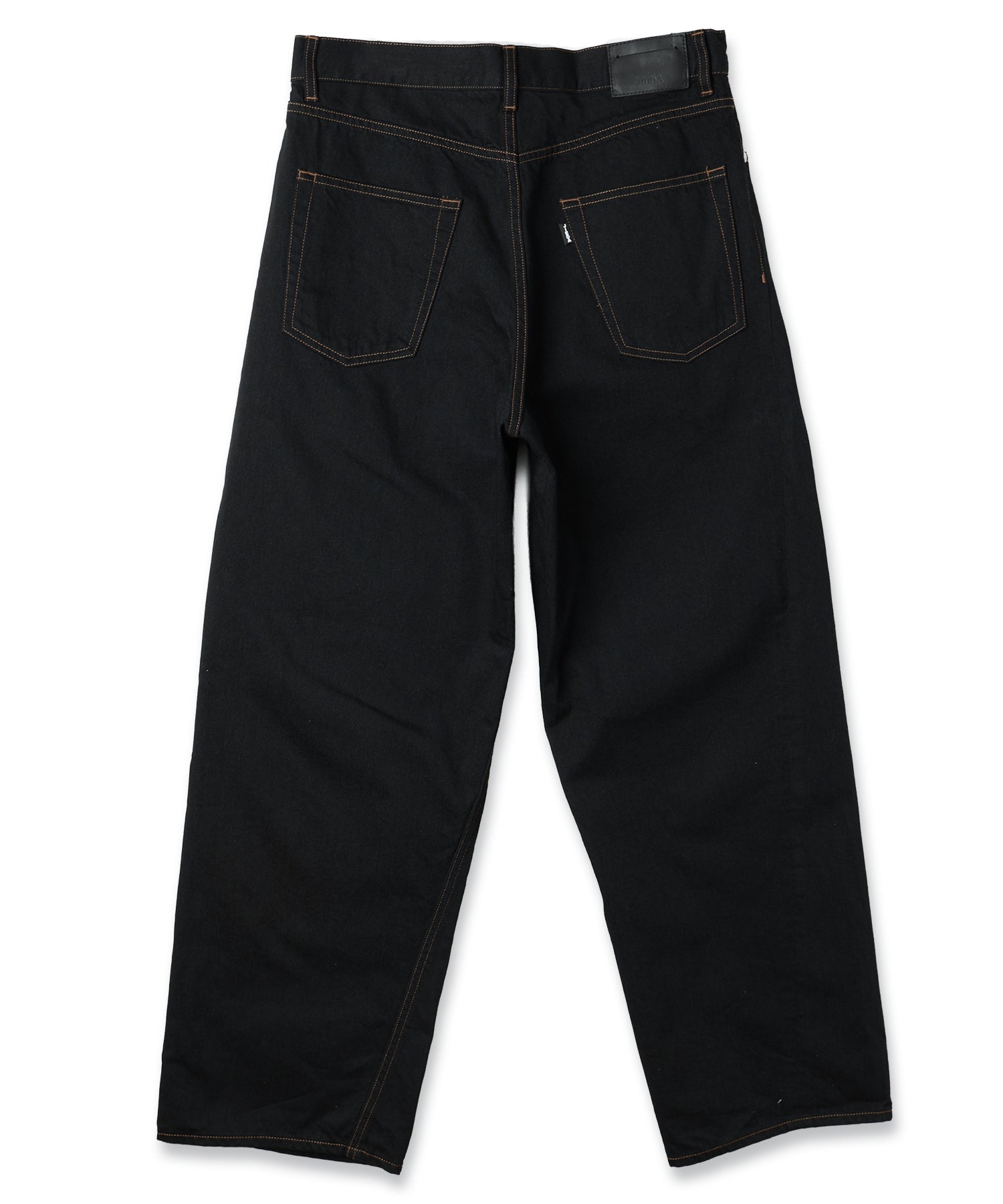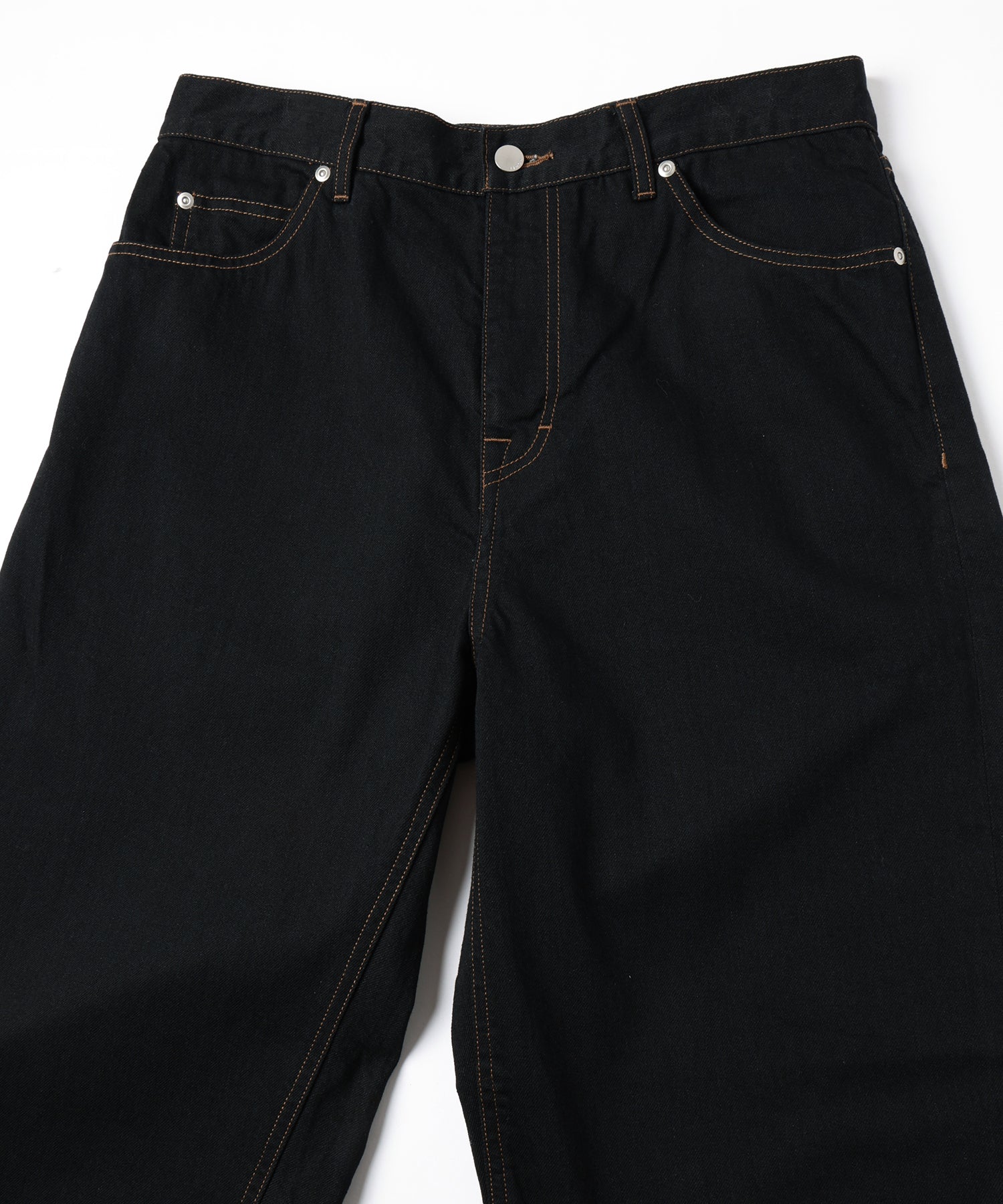 ハイウエストでワイドストレートのリラックスフィットなシルエットとなっており、5ポケットデザインのデニムパンツとなってります。