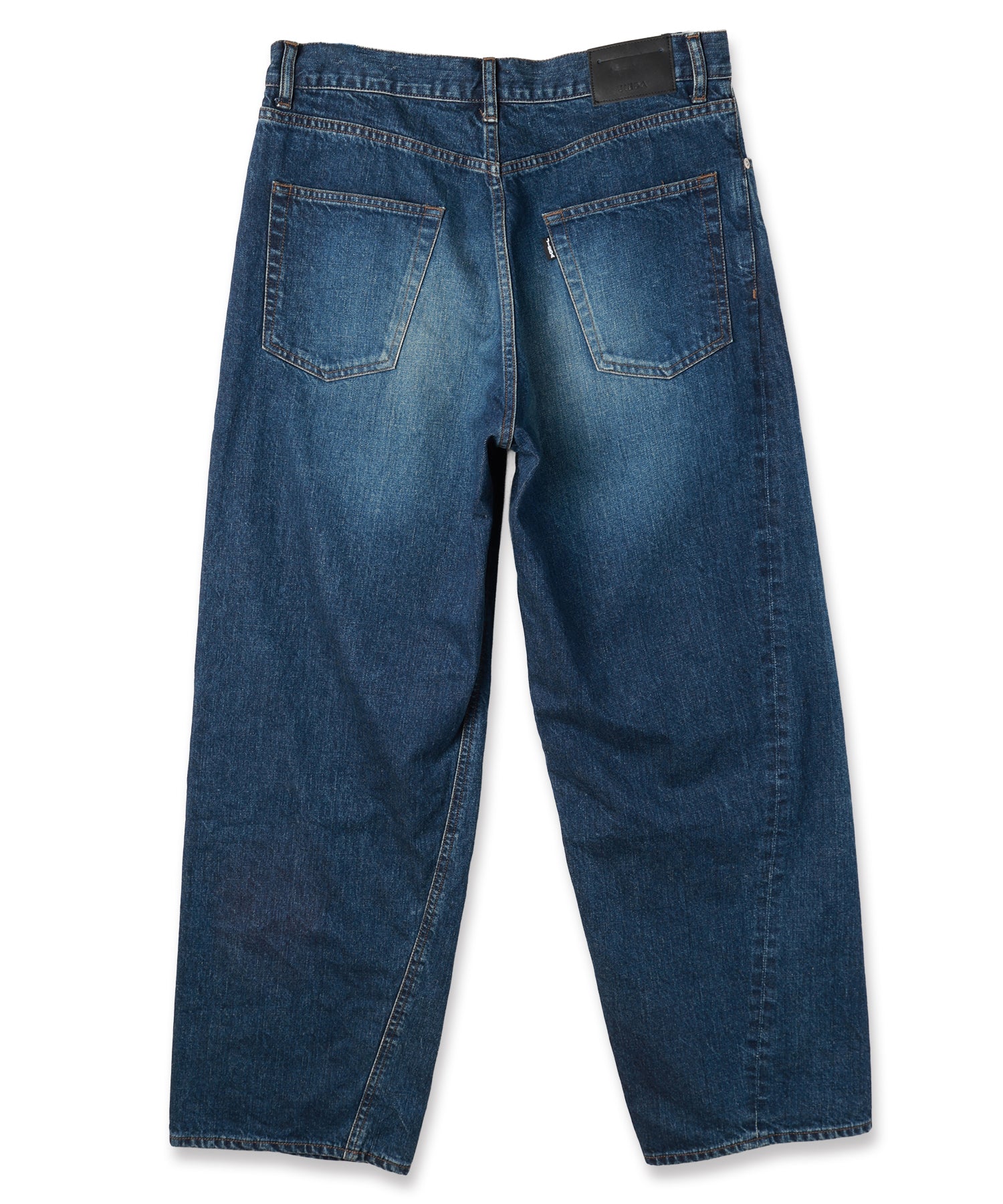 ハイウエストでワイドストレートのリラックスフィットなシルエットとなっており、5ポケットデザインのデニムパンツとなってります。