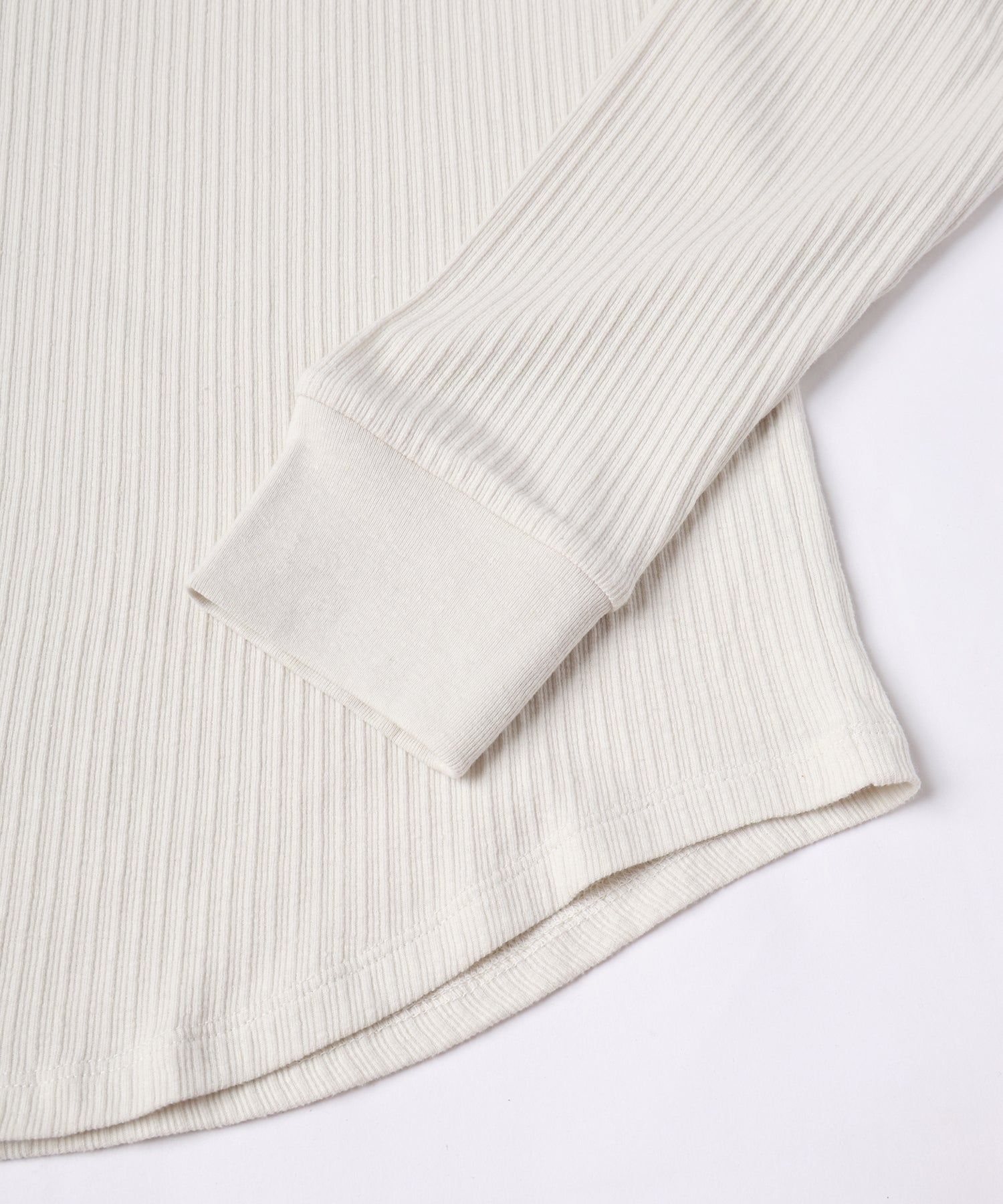 ライトリブ素材を使用したヘンリーネックロングスリーブ。