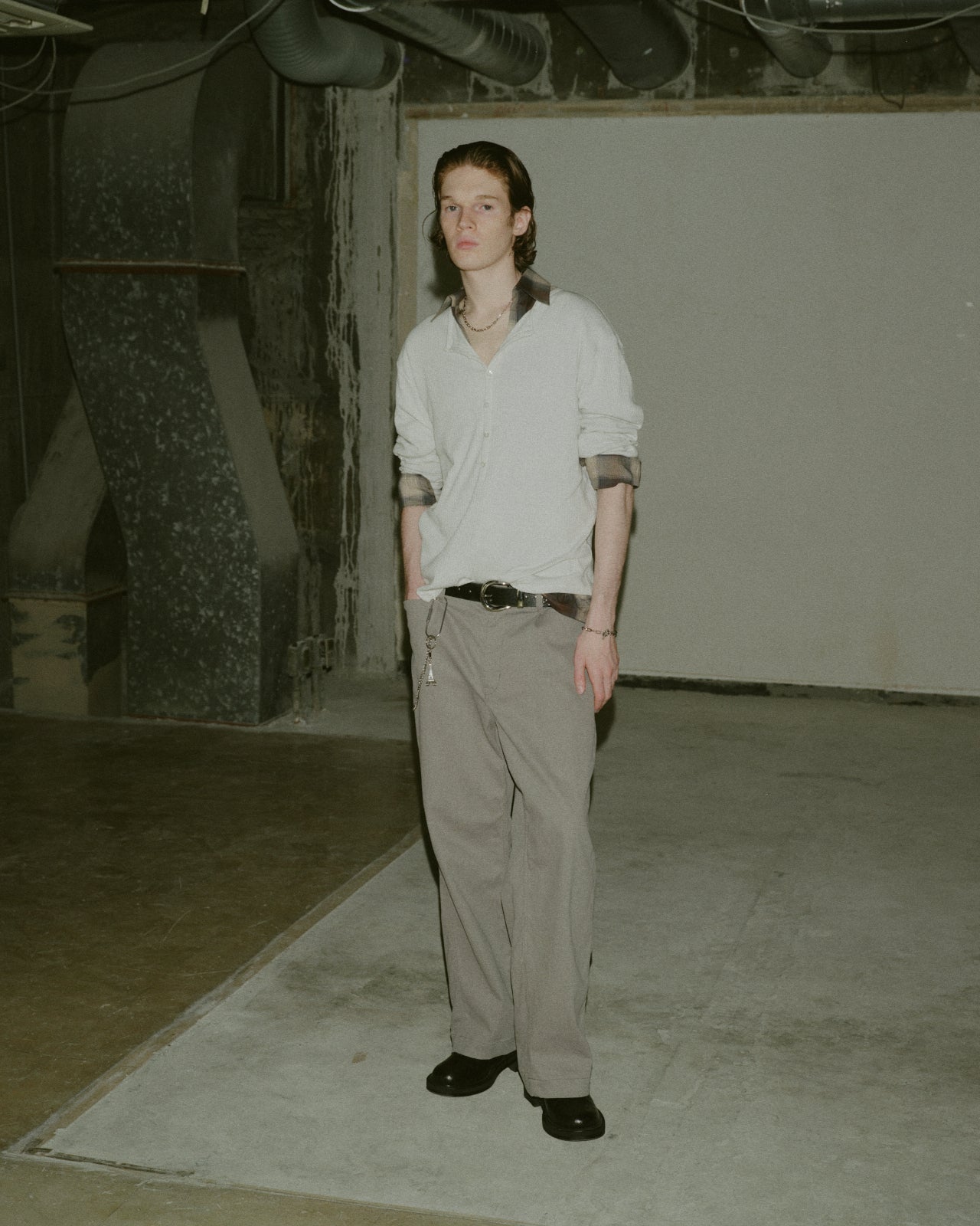 広めのネックに、フロントの前開きも深めに設計されたヘンリーネックタイプのロングスリーブTシャツとなっております。