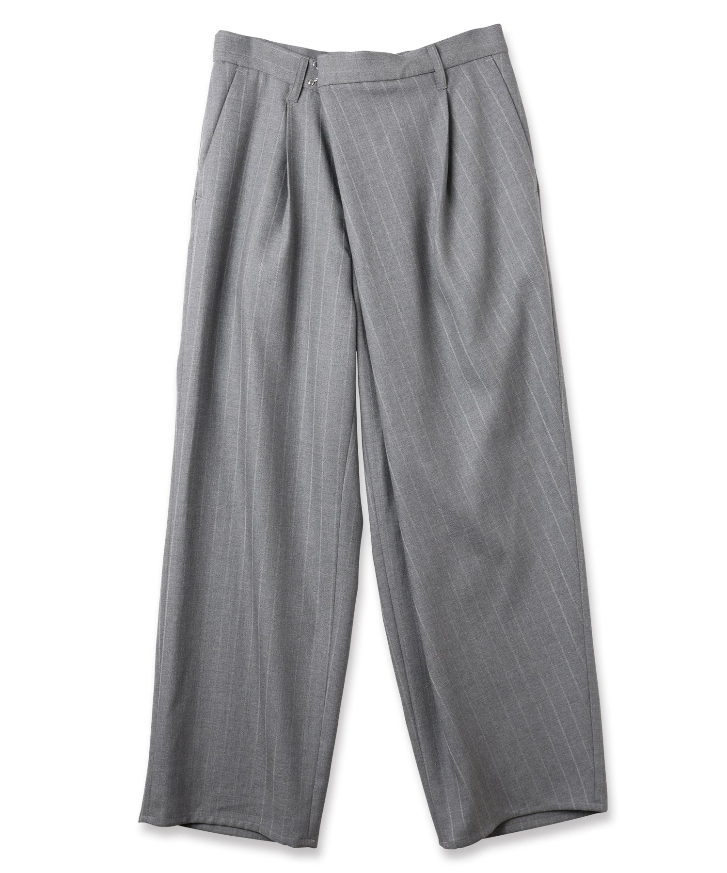 大きいウエストをつまみ腰回りのドレープ感が特徴的なオーバーラップスラックス。