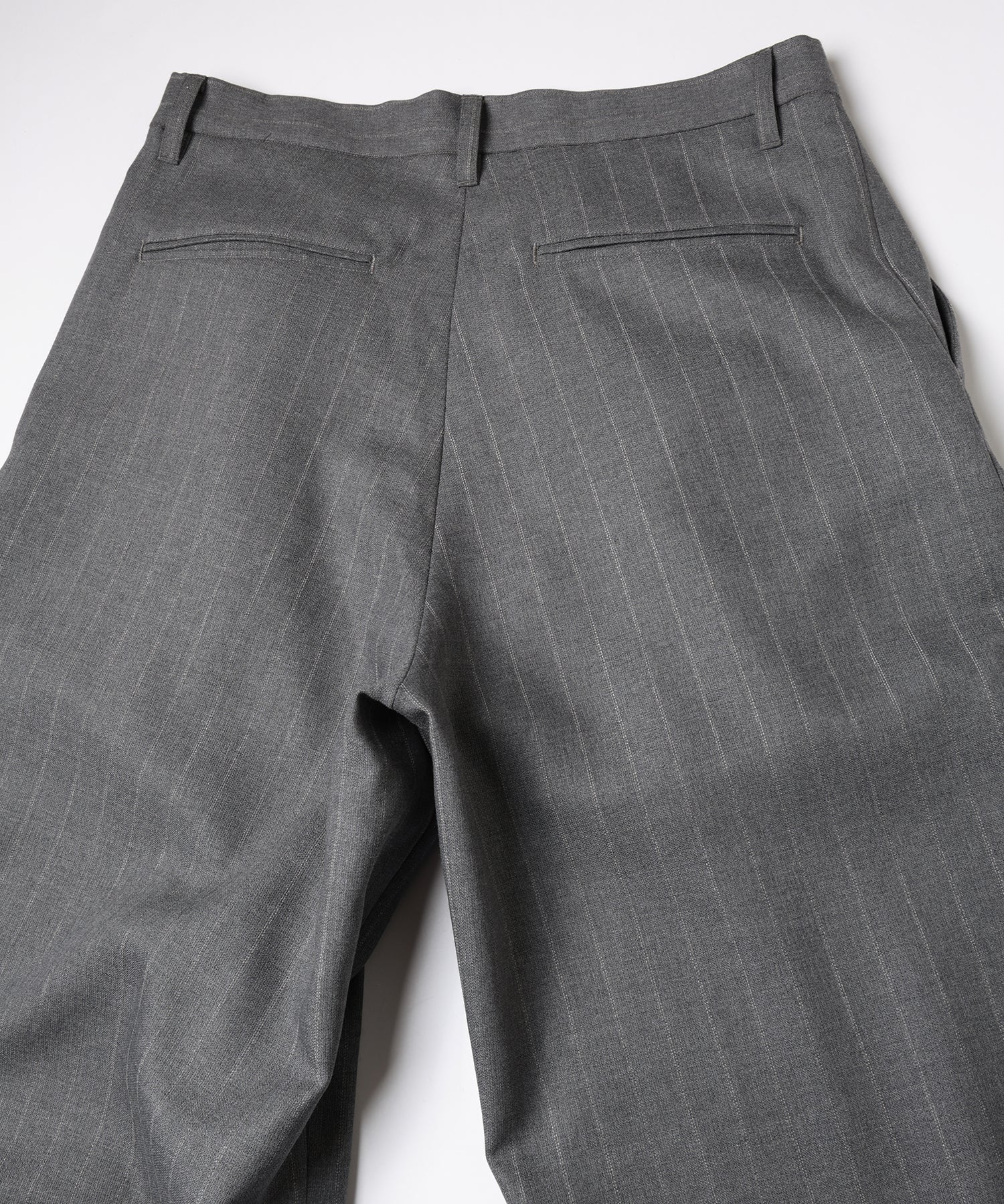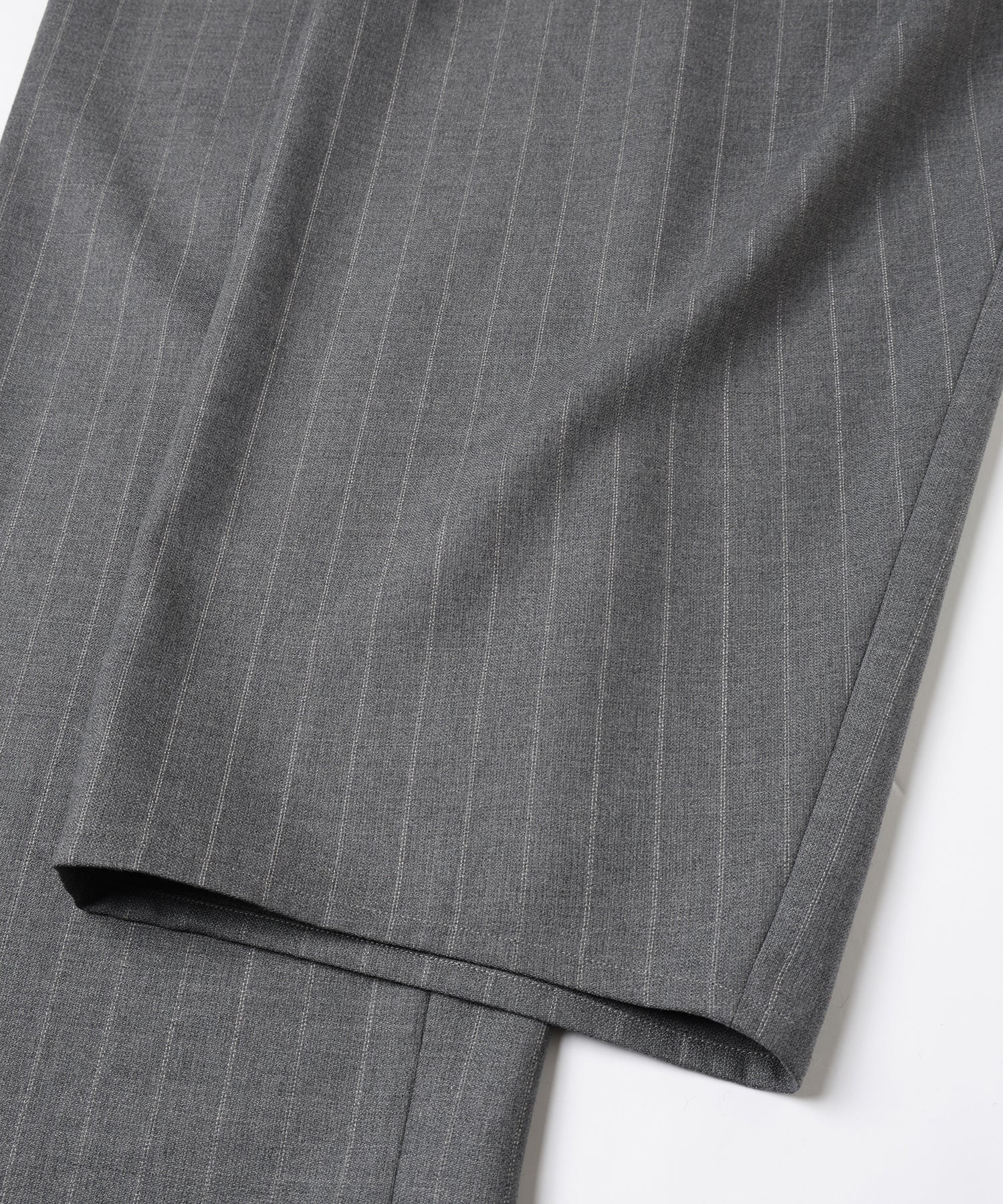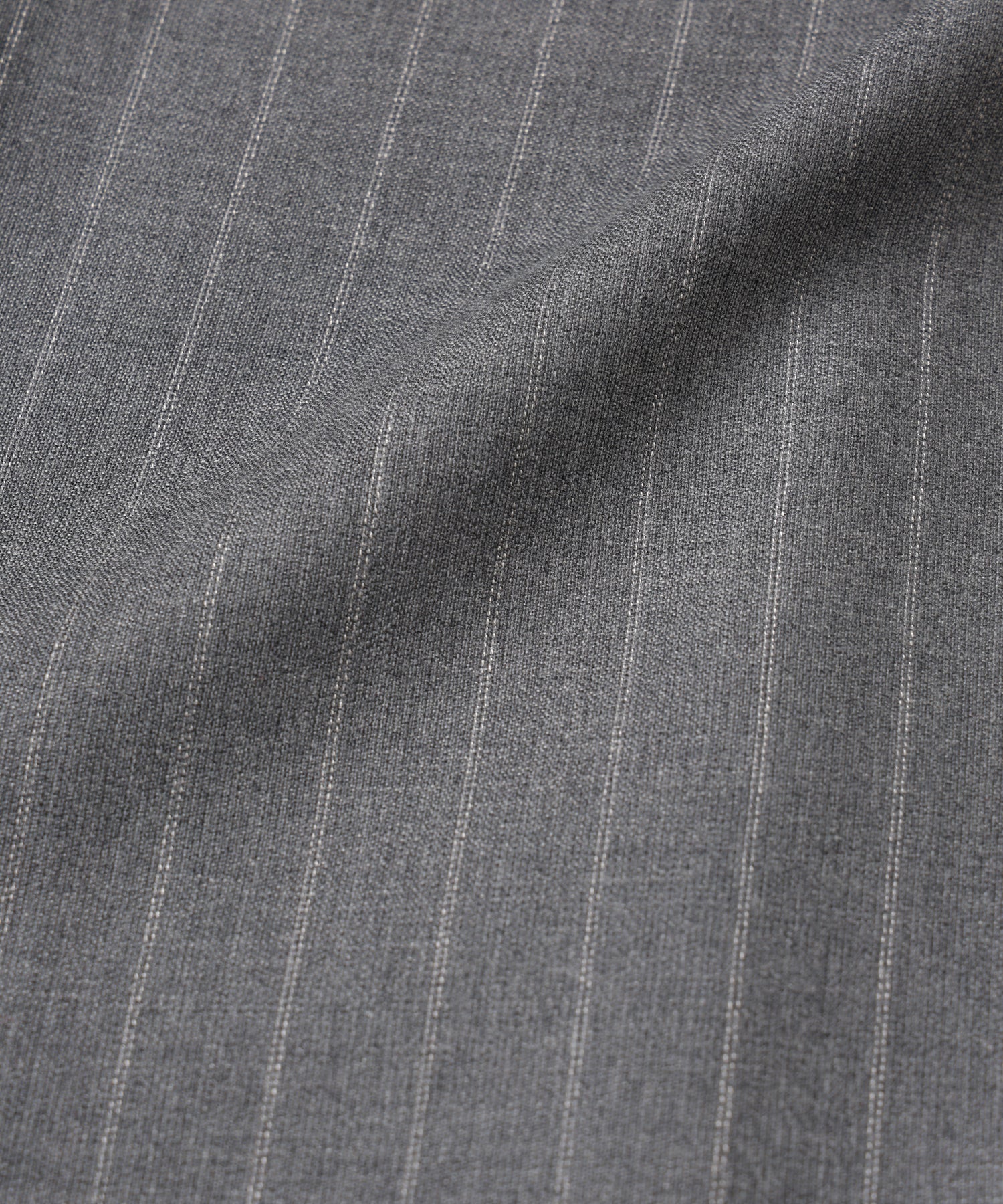 生地にはウール素材を使用。ウール主体のストライプ生地を使用することで、柔らかいドレープ感のある素材感が上品な1着に仕上げております。
