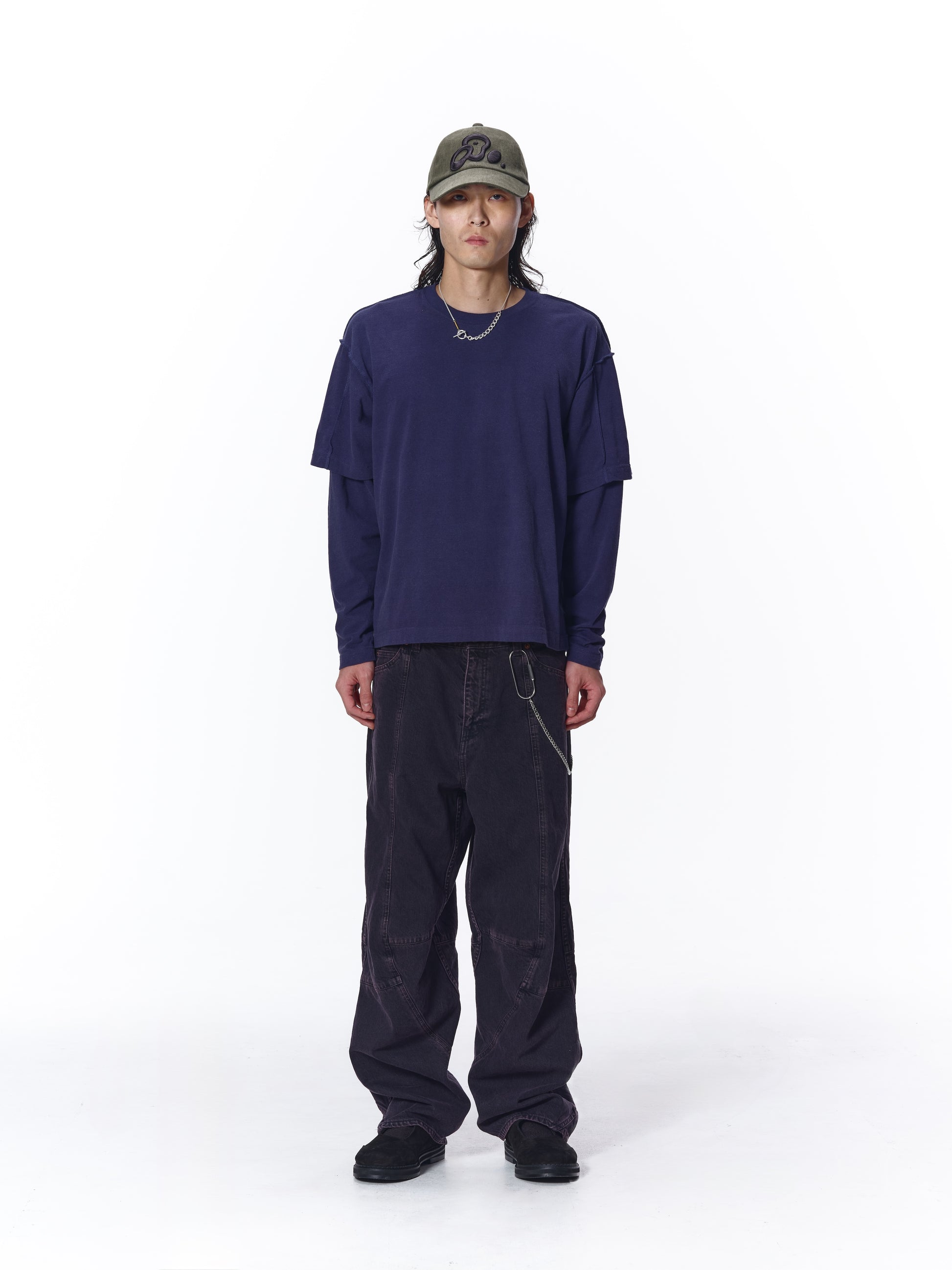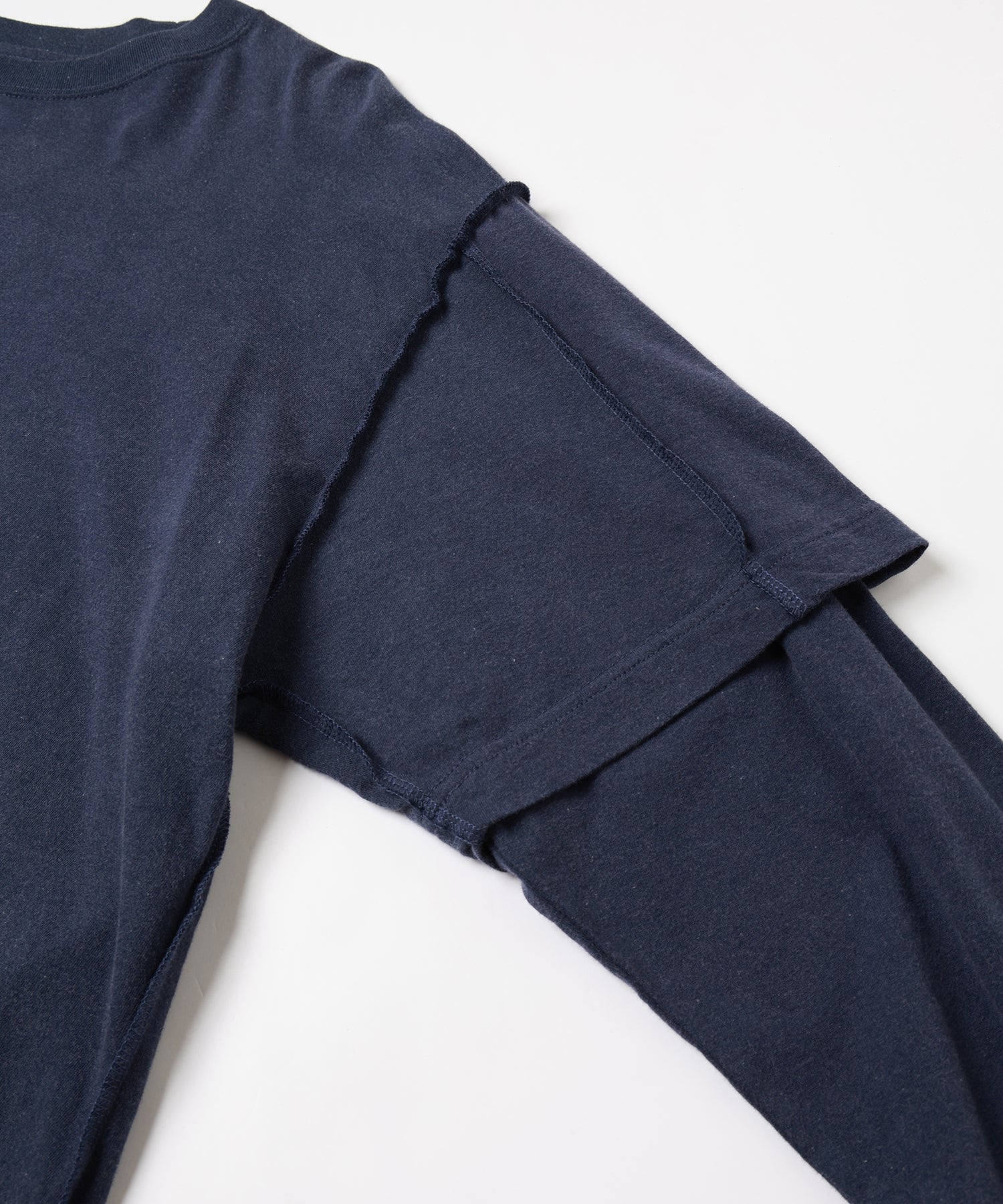 同生地のドッキングデザインや、縫い目をあえて表にすることで表情のある1着に仕上げたアイテム。