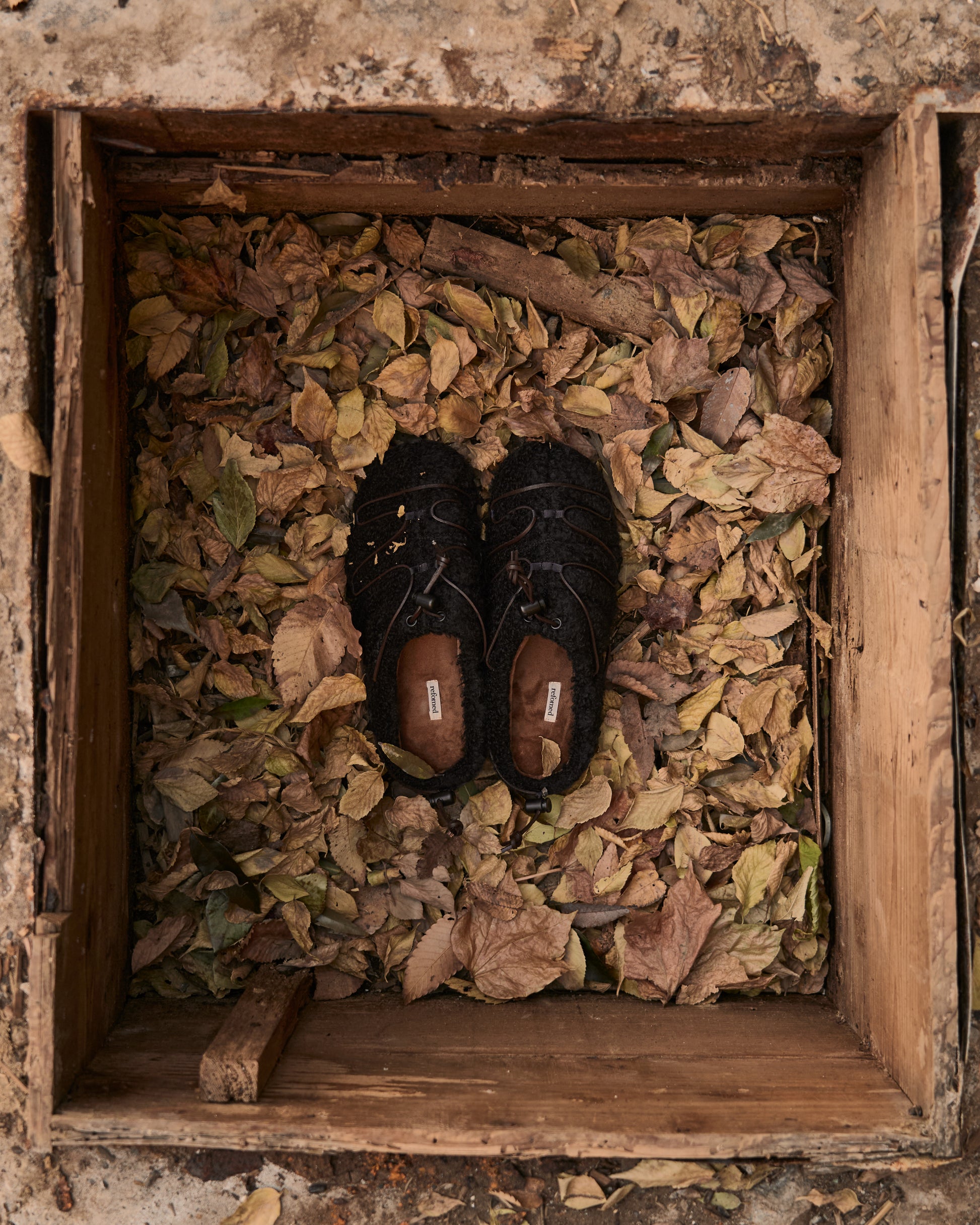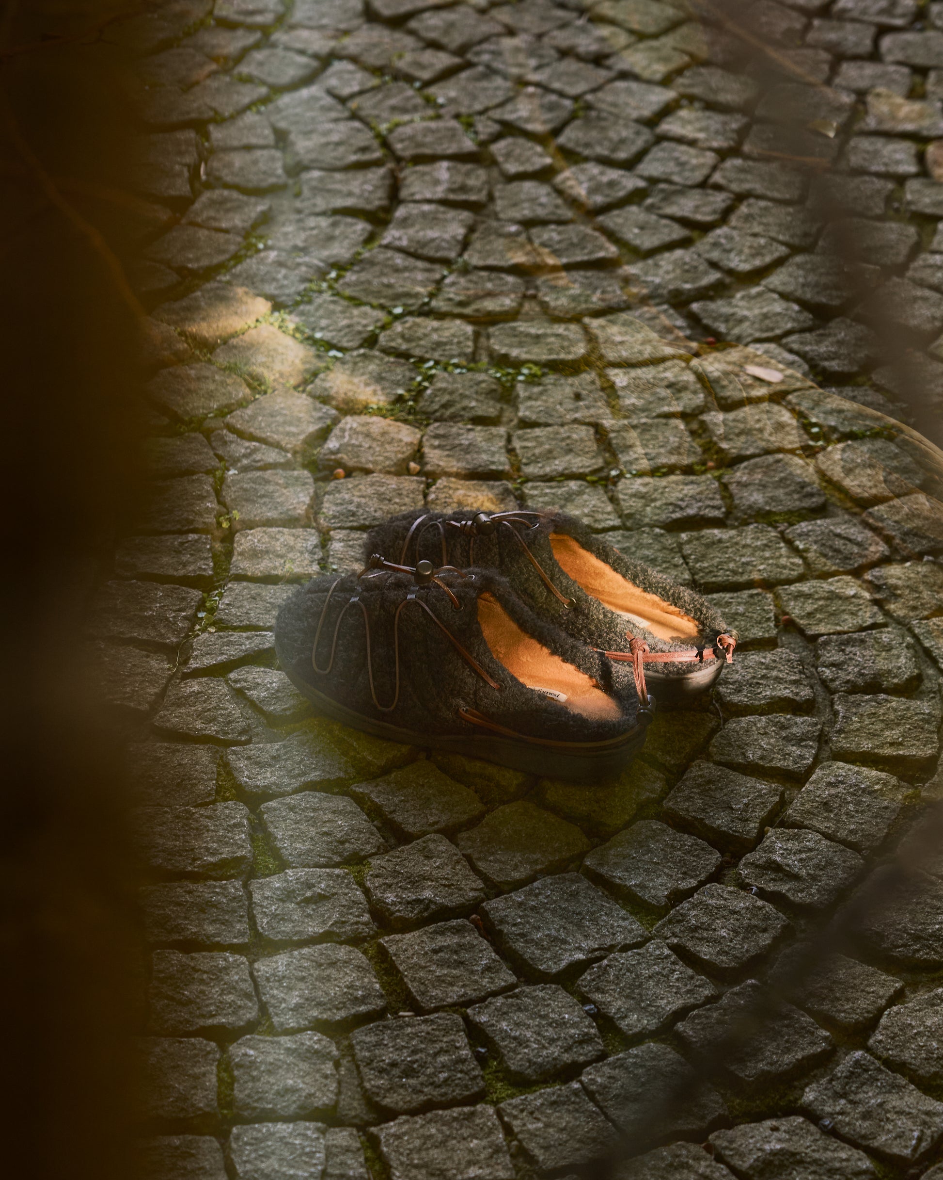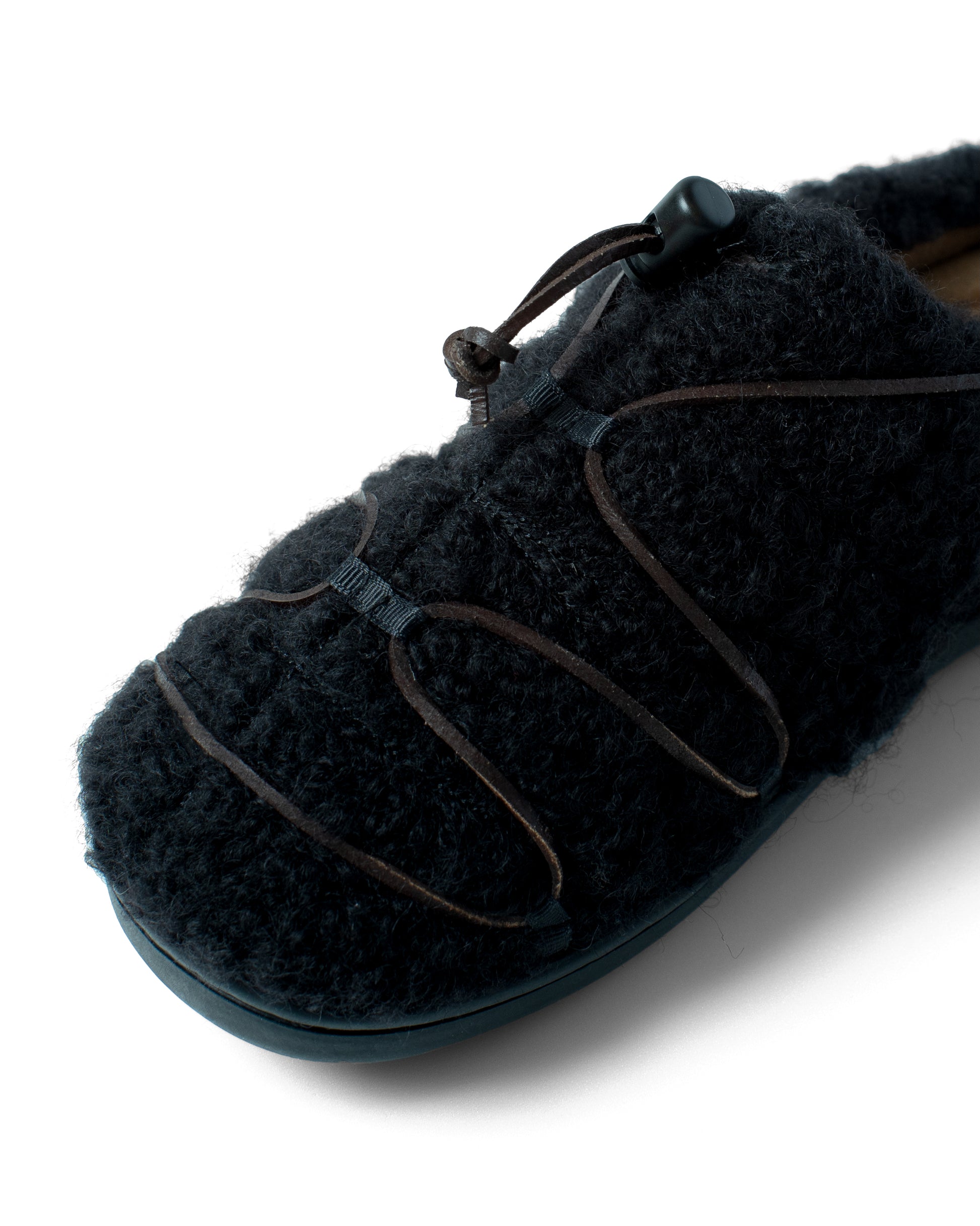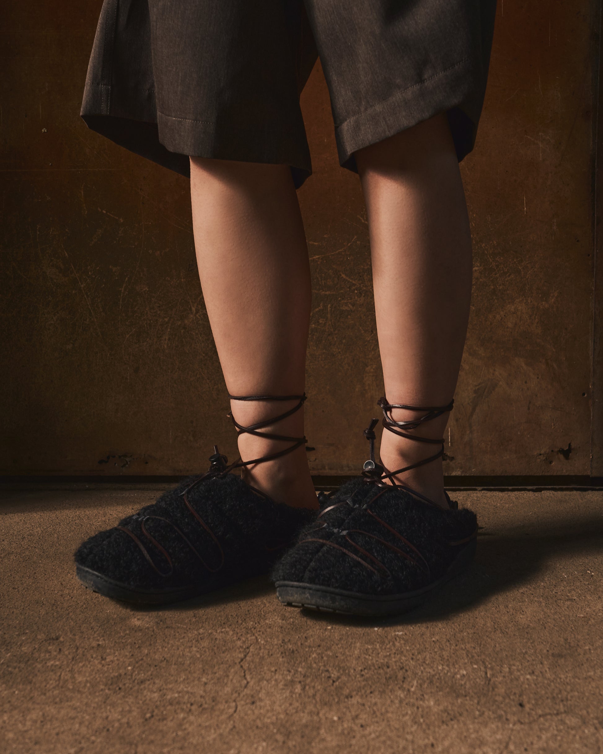 本革のロープを巻き付けたような独自のデザインは、かつて職人たちが、うっ血を防ぎ、長距離を楽に走るために足に巻いた“血止め”から着想。古き知恵を、現代の冬の足元にアクセントとして宿した一足となっています。