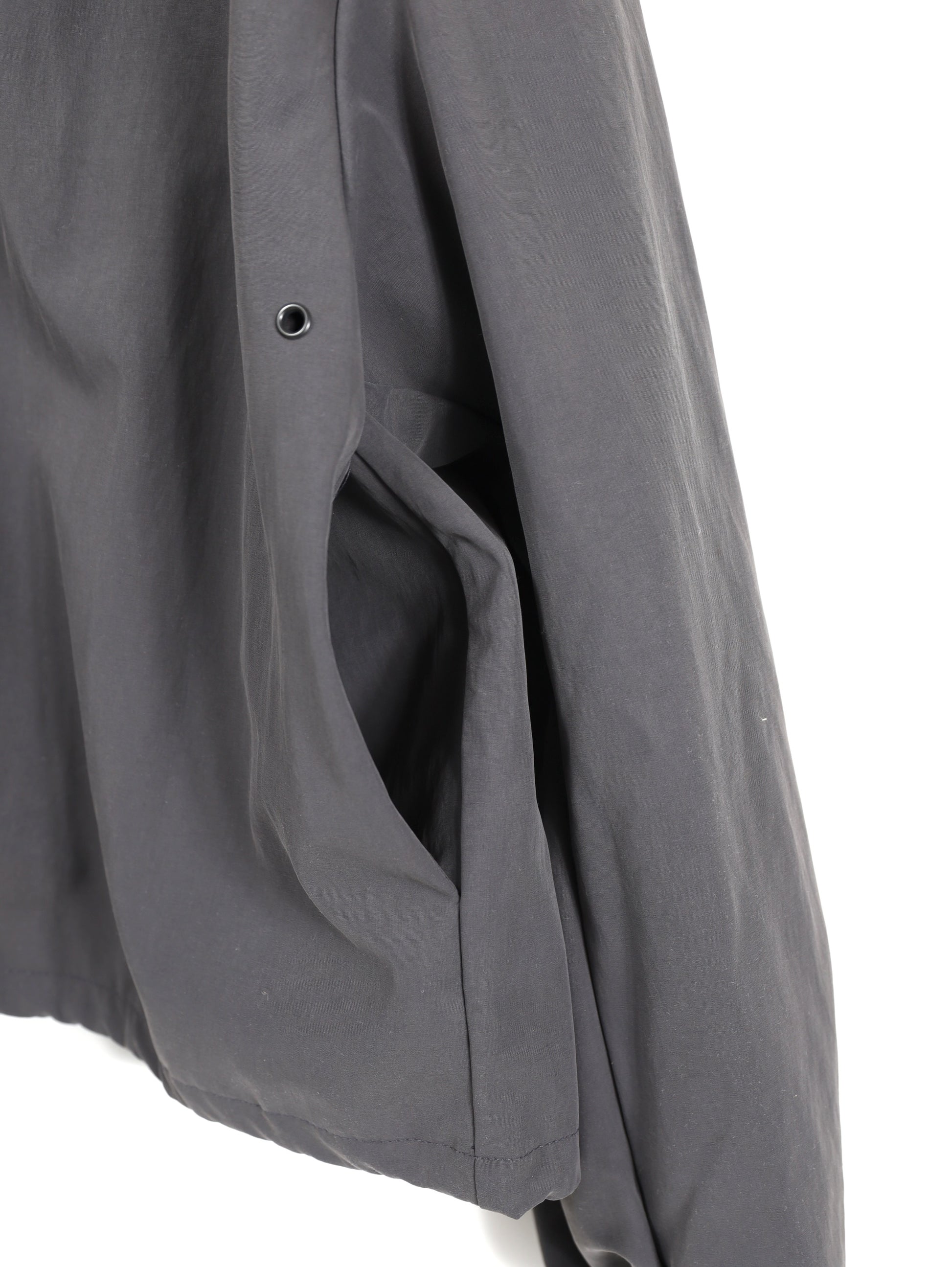 フロントにはシグネチャーのスナップボタンを採用し、内側にはシルエットを調整できるショックコードを備えています。