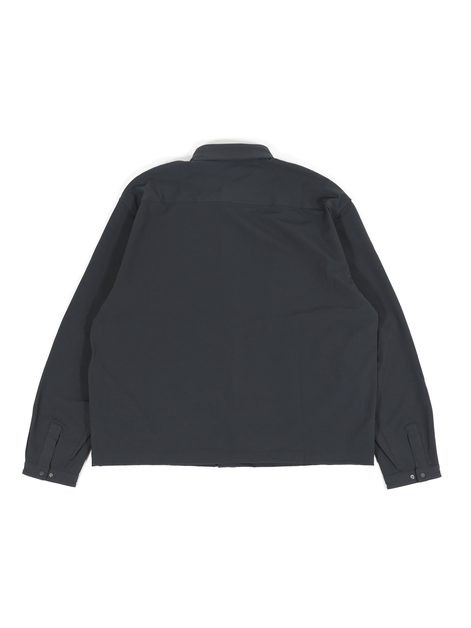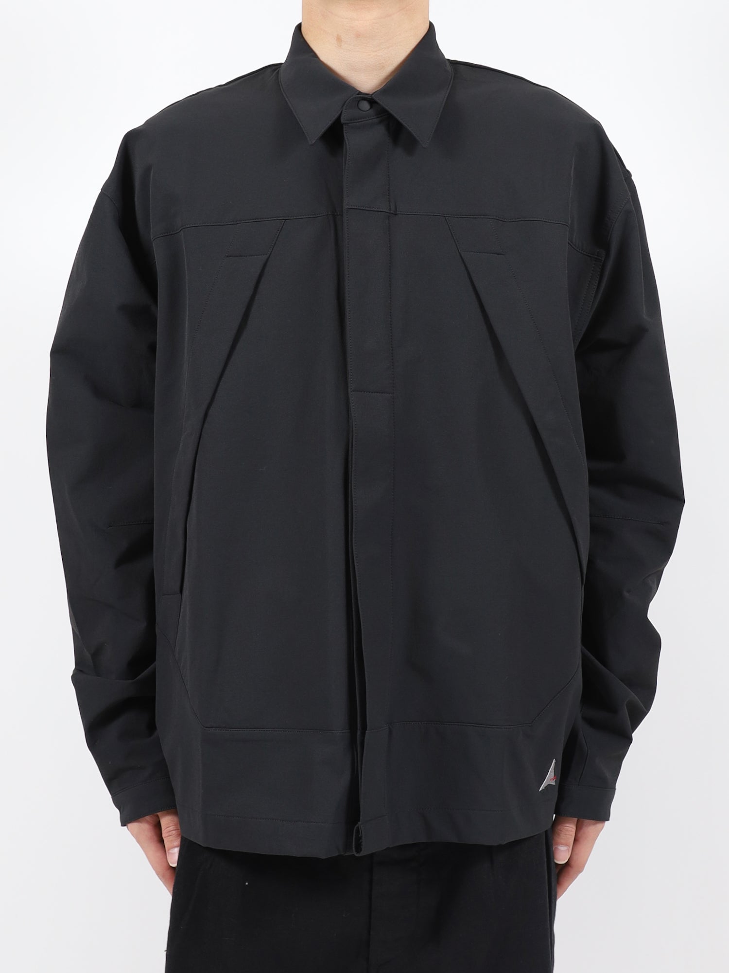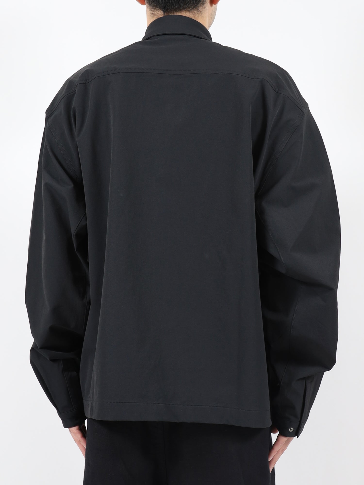 軽量ソフトシェルナイロン生地を使用したブラックのユーティリティオーバーシャツ。