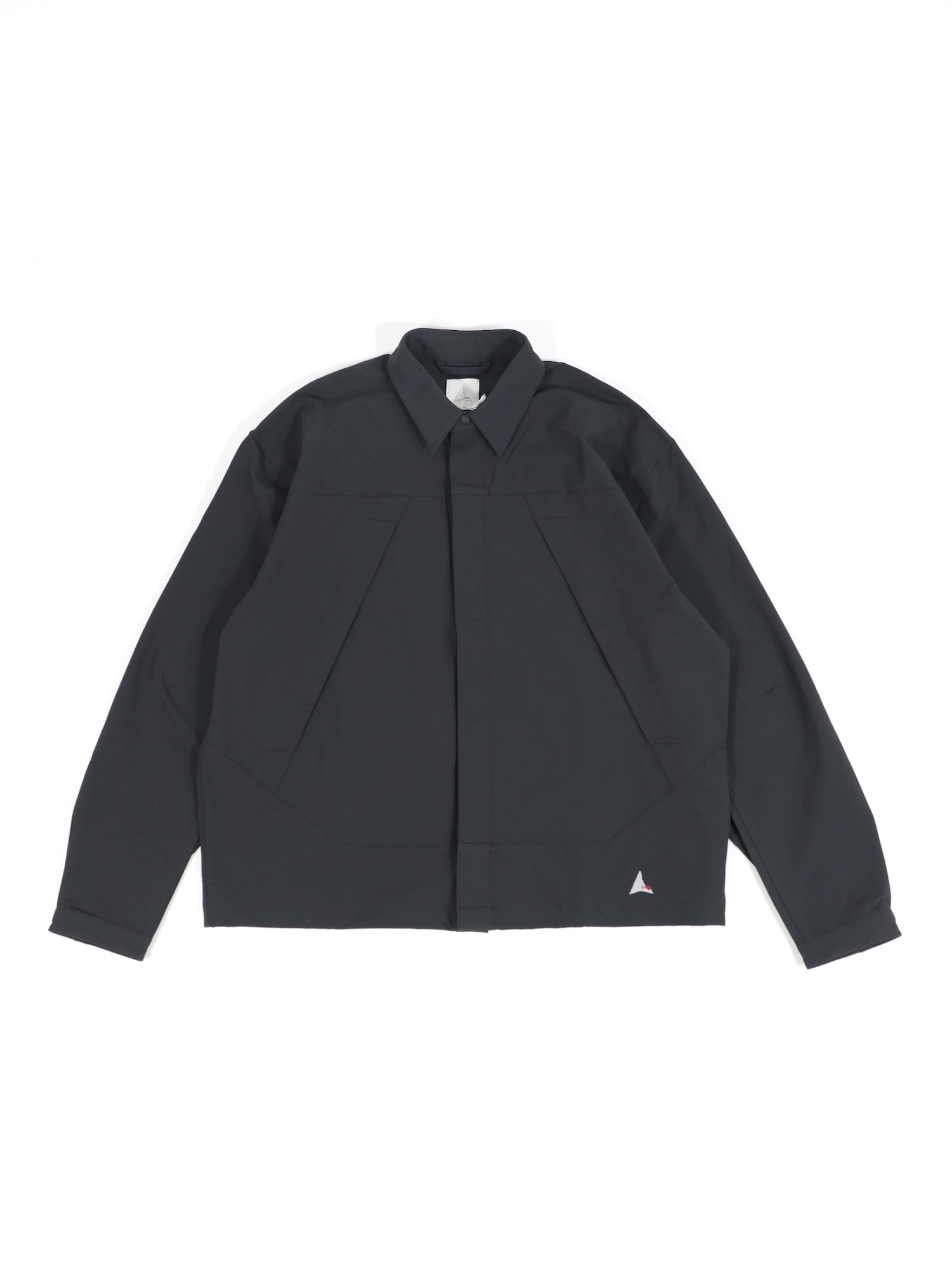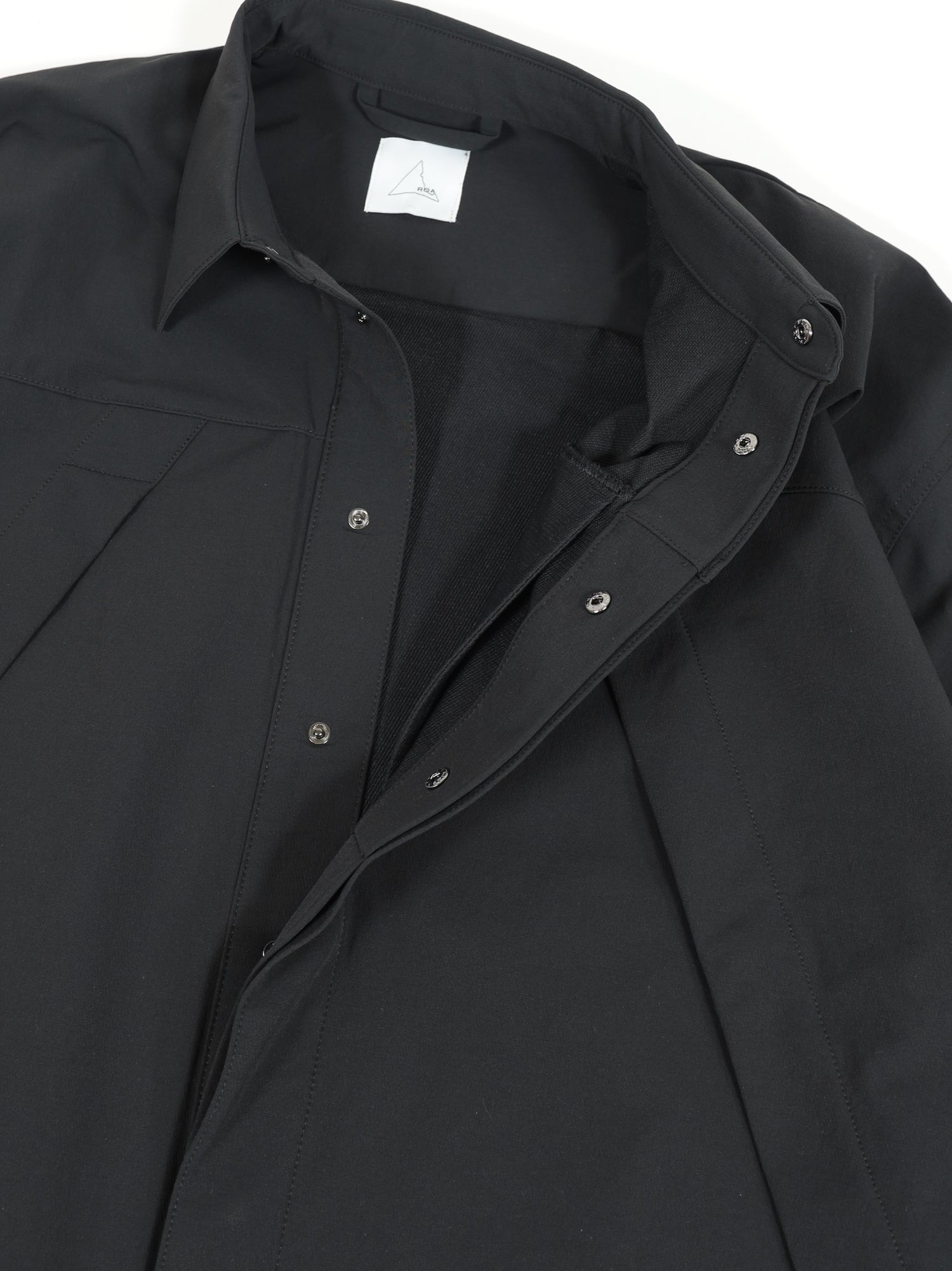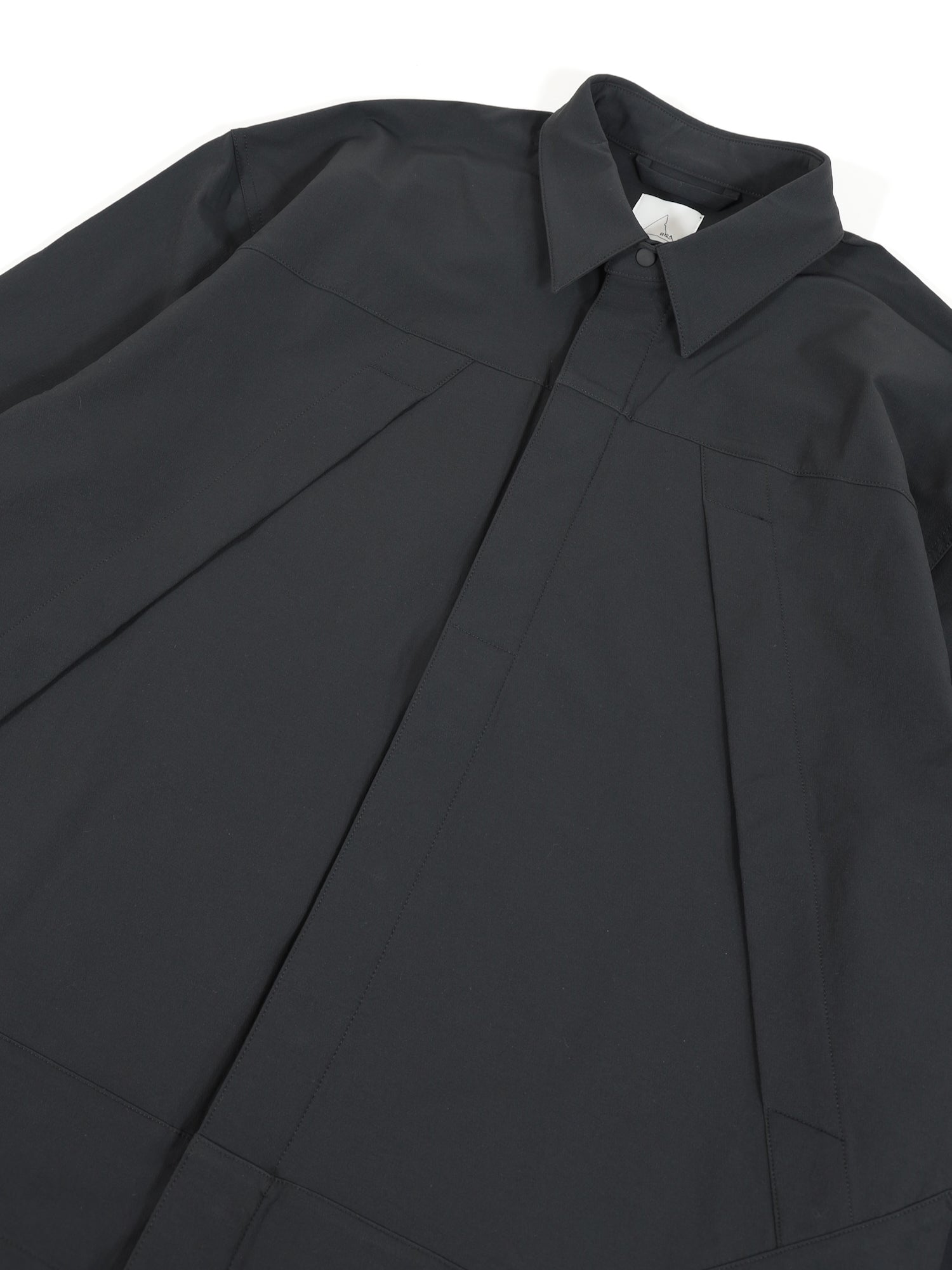 軽量ソフトシェルナイロン生地を使用したブラックのユーティリティオーバーシャツ。