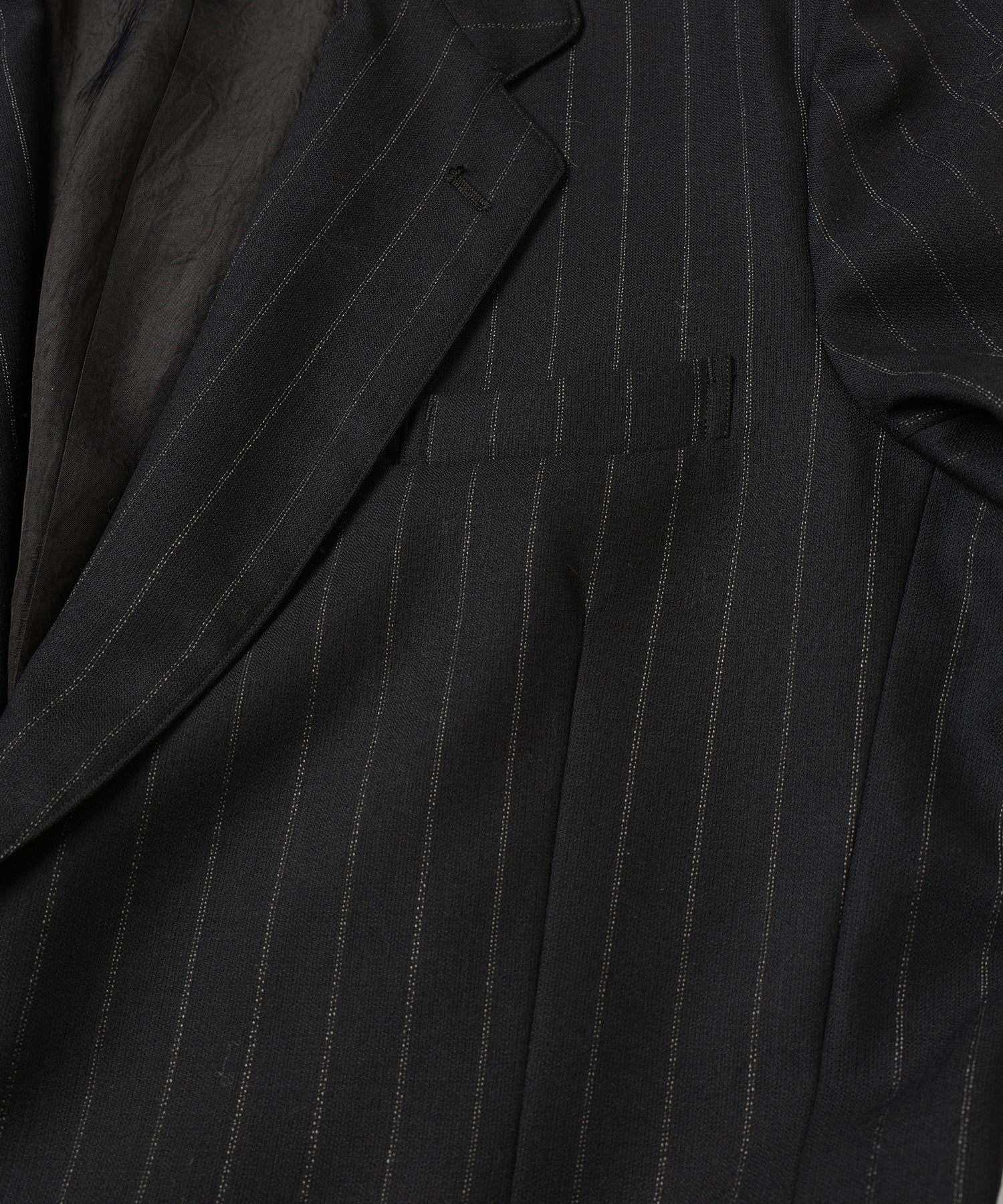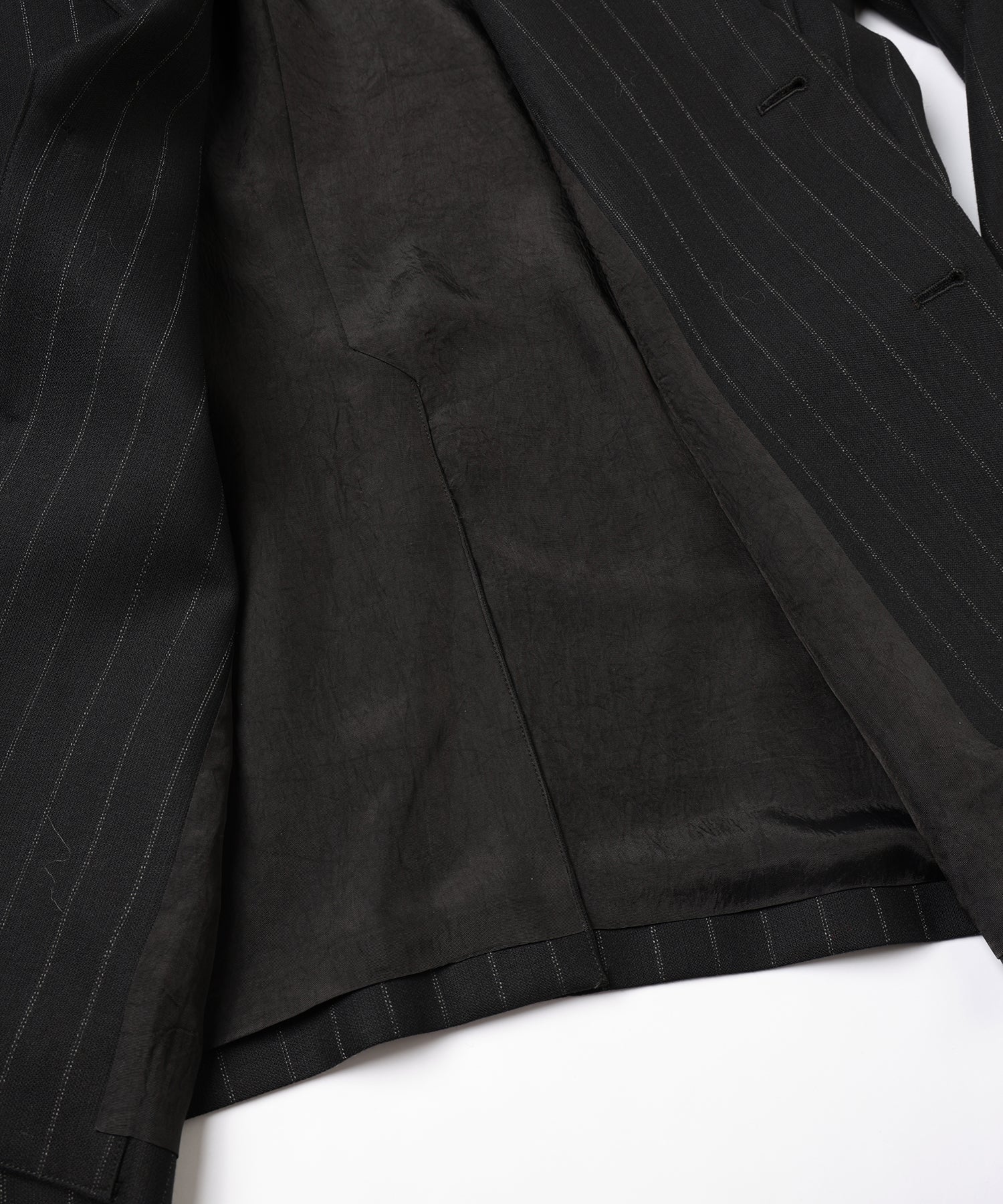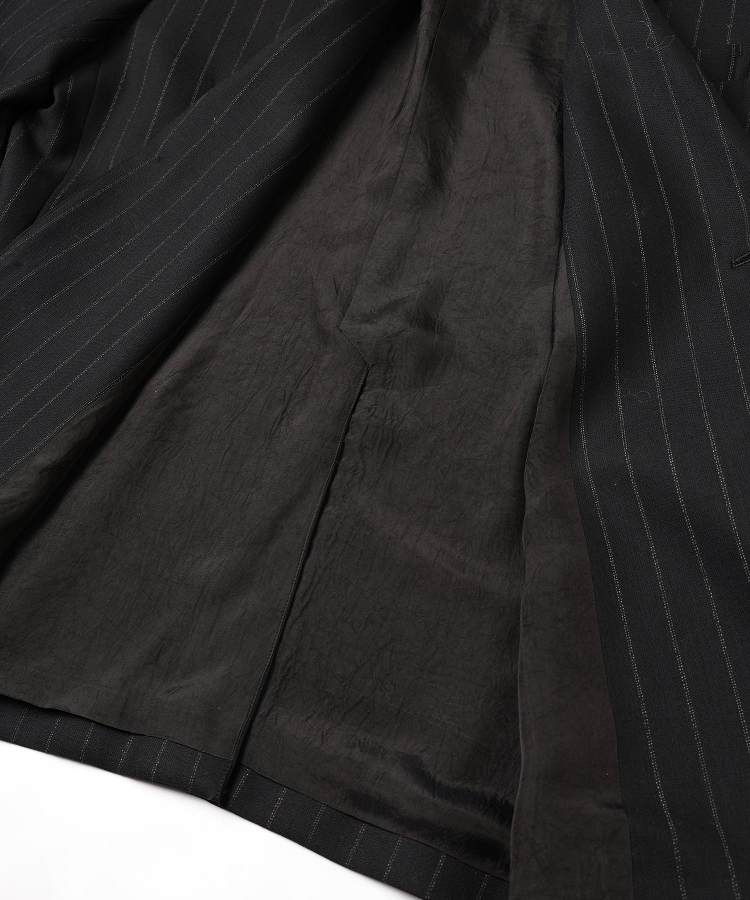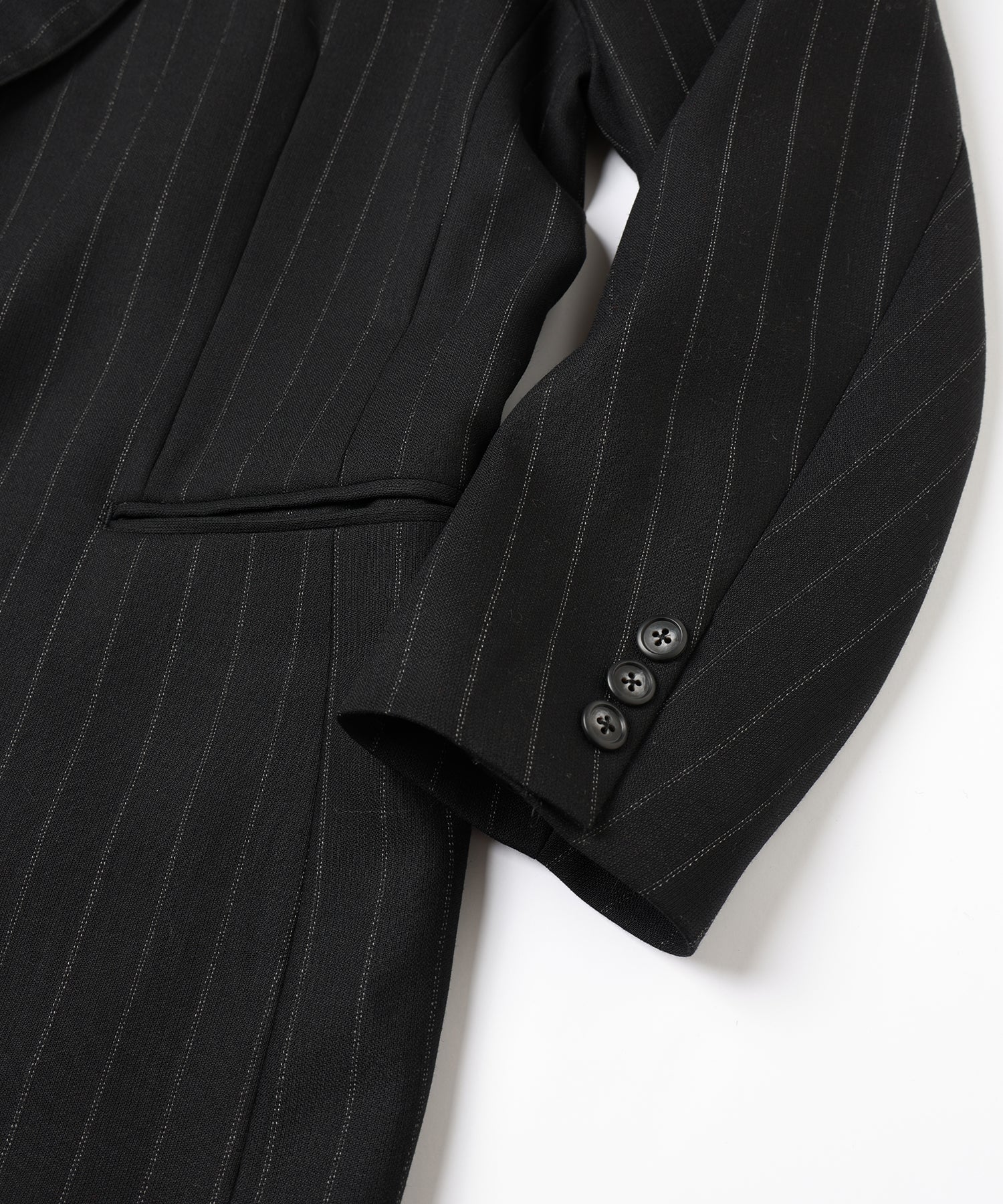 ウール主体のストライプ生地を使用することで、柔らかく落ち感のある上品な1着に仕上げております。