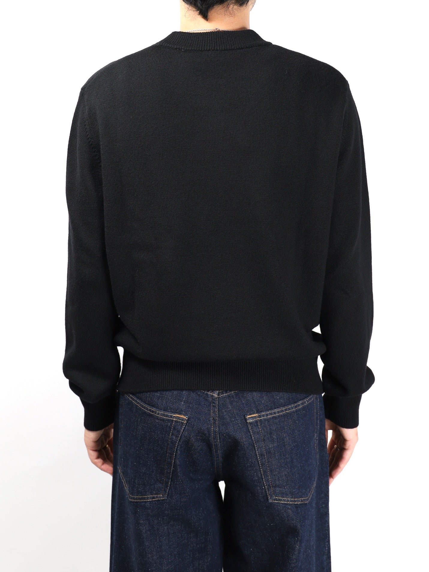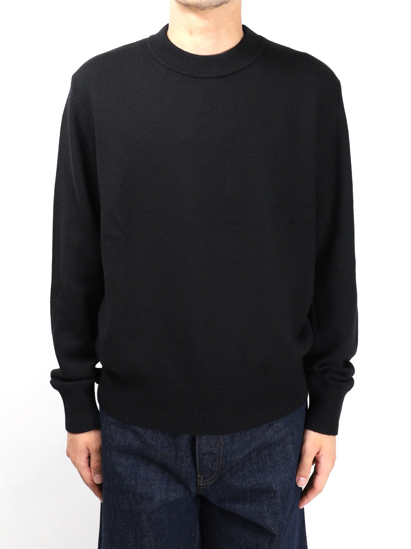 クラシカルなフィット感のクルーネックニットセーター。