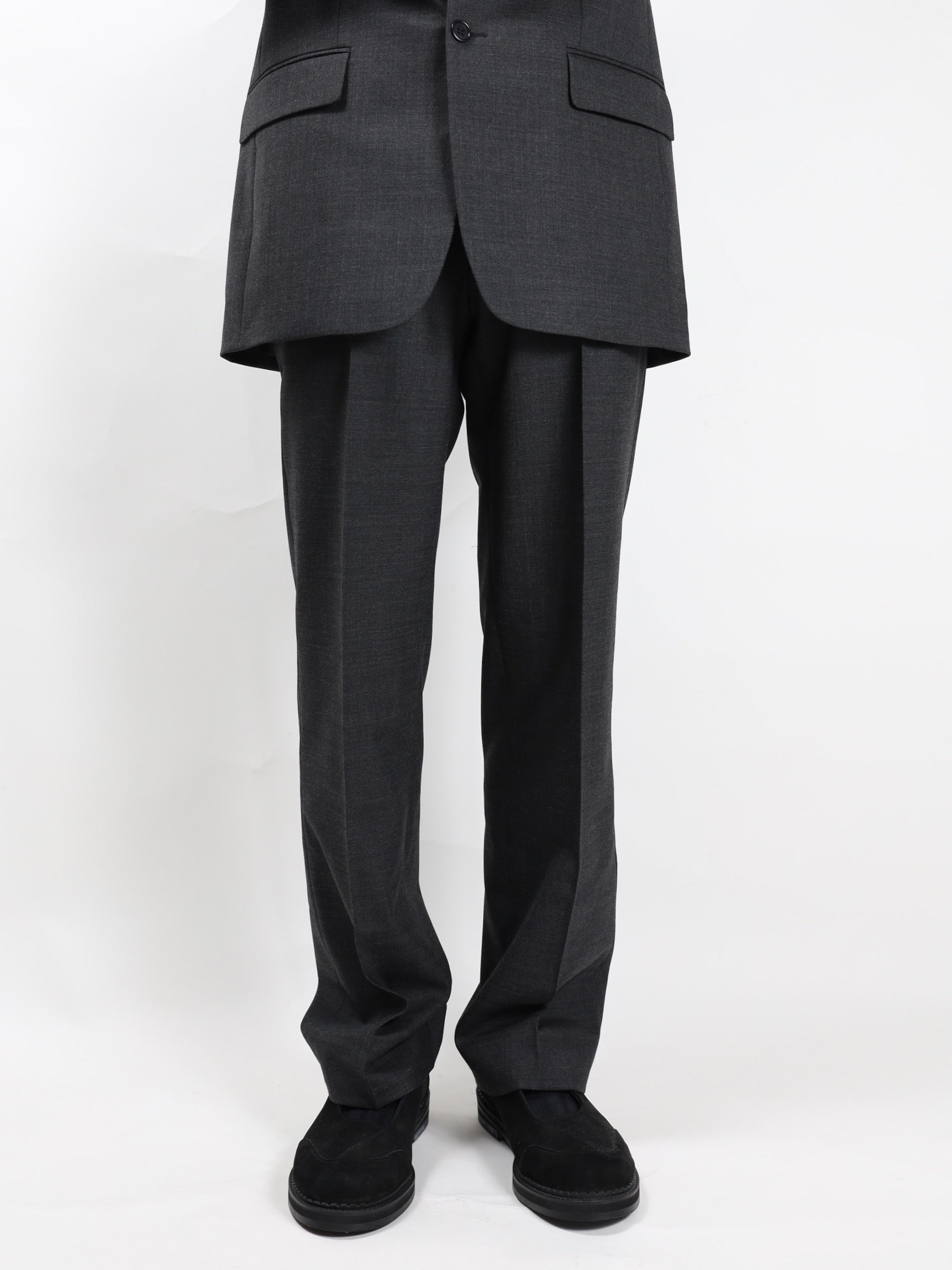 高密度のウールとポリエステル混紡ツイル生地を使用、上品な光沢と落ち感をお楽しみいただけるのも魅力の1つです。