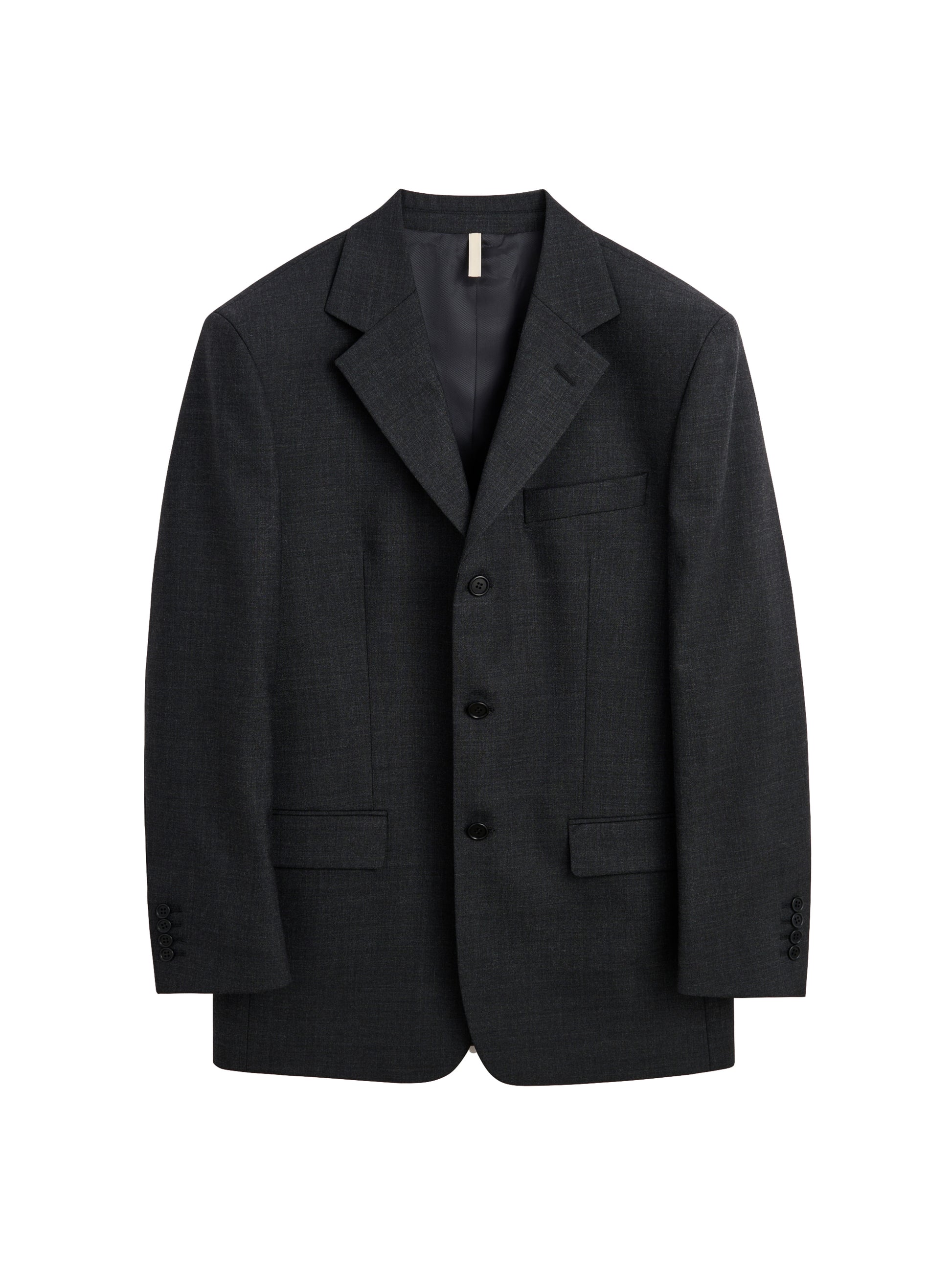 ビスコース裏地を使用したカジュアルフィットのシングルブレストブレザー。