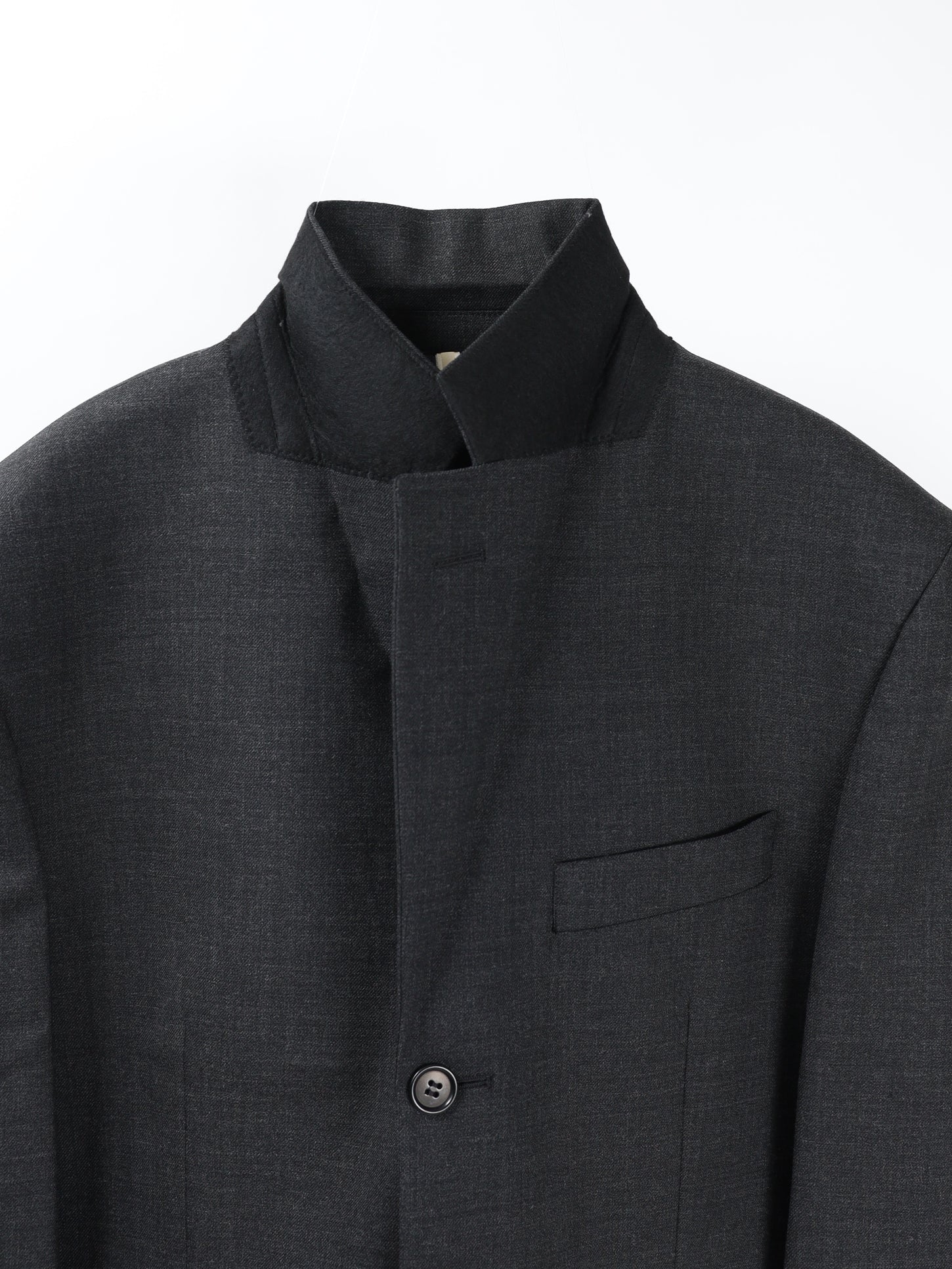 ウールとポリエステルの混紡ツイル素材を使用、上品な光沢が魅力となっております。